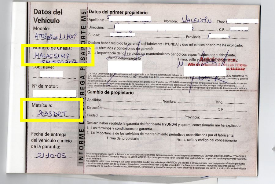 Se Facilita Matricula y Numero de Bastidor para Consultas en la DGT o CARFAX.