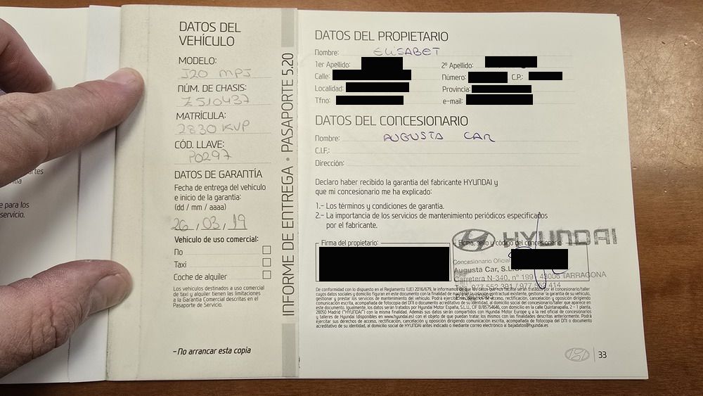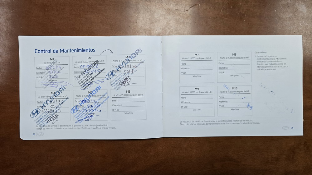 Vehículo de 1 Sola Propietaria con tan solo 52.143 Kms. Los mantenimientos están realizados en el Servicio Oficial Hyundai, mas abajo se pueden ver los sellos en el Libro de Revisiones asi como las Facturas de todos ellos.