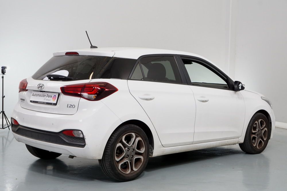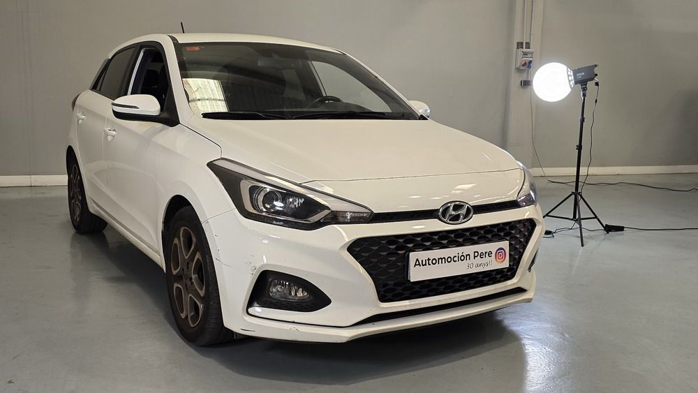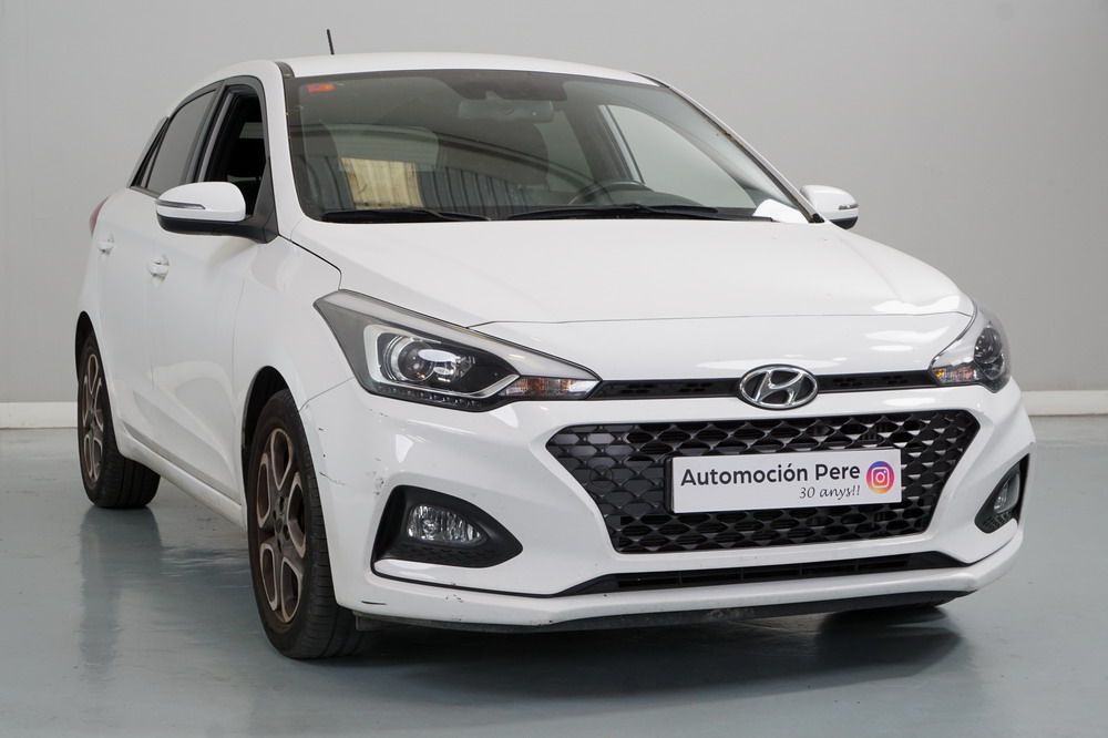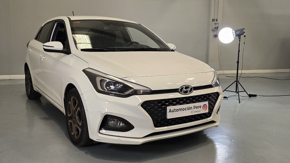 Hyundai i20 1.0 T-GDi 100 CV. Año 26/03/2019. Color Blanco. 5 Puertas. Climatizador, Android Auto y Apple CarPlay, 6 altavoces , Conexión AUX, Conexión Bluetooth para teléfono móvil, Conexión USB, Navegador, Pantalla táctil a color de 17,8 cm (7"), Radio, Kit antipinchazos, Elevalunas eléctricos delanteros y Traseros, Retrovisores Eléctricos y Plegables, Sensor de Luces y de Lluvia, Camara Trasera con Doble Sensor de Parking, Dirección Asistida, Ordenador de Viaje, Control y Limitador de Velocidad "Tempomat", Volante de Cuero regulable Multifuncional, Faros Led Diurnos, Faros Antiniebla, Cierre Centralizado con Mando a Distancia (2 Llaves), Parada y arranque automático del motor Stop & Go, Reposabrazos central delantero con caja portaobjetos, Retrovisores exteriores plegables eléctricamente, Toma de corriente auxiliar, Manetas exteriores color carrocería, Parrilla Dark Grey, Pintura Polar White, Tapicería de tela con costuras en contraste, Volante y pomo de cambio de cuero, Asiento trasero abatible 60/40, Guantera iluminada y Refrigerada, Maletero con iluminación, Portagafas retráctil, Posavasos delanteros, Llantas de aleación 41 cm (195/55 R16), Alarma antirrobo, Lunas traseras sobretintadas, Luz de lectura delantera, Asistente de arranque en cuesta (HAC), Antibloqueo de frenos (ABS), Alerta de cambio involuntario de carril, Airbags laterales delanteros, Airbags de cabeza delanteros y traseros, Airbag frontal pasajero, Airbag frontal conductor, Anclajes Isofix y Top Tether, Aviso de cinturón no colocado, Cierre de seguridad para niños en puertas traseras, Cinturones de seguridad delanteros regulables en altura, Control de crucero. Muy Equipado.
