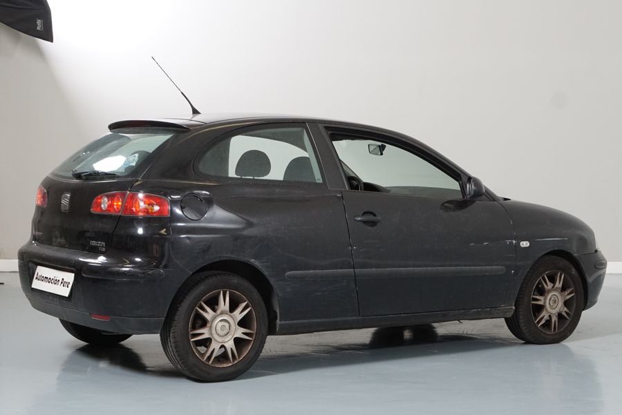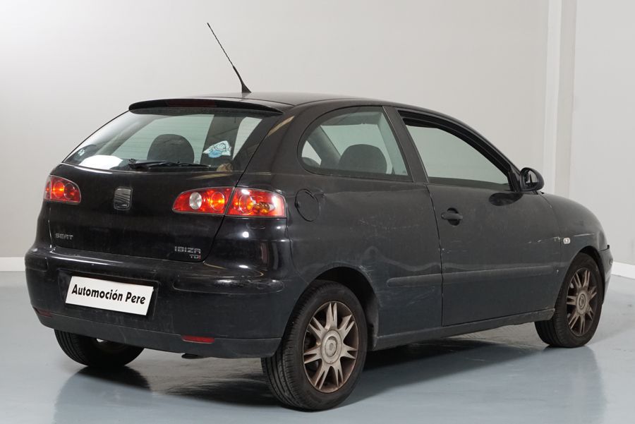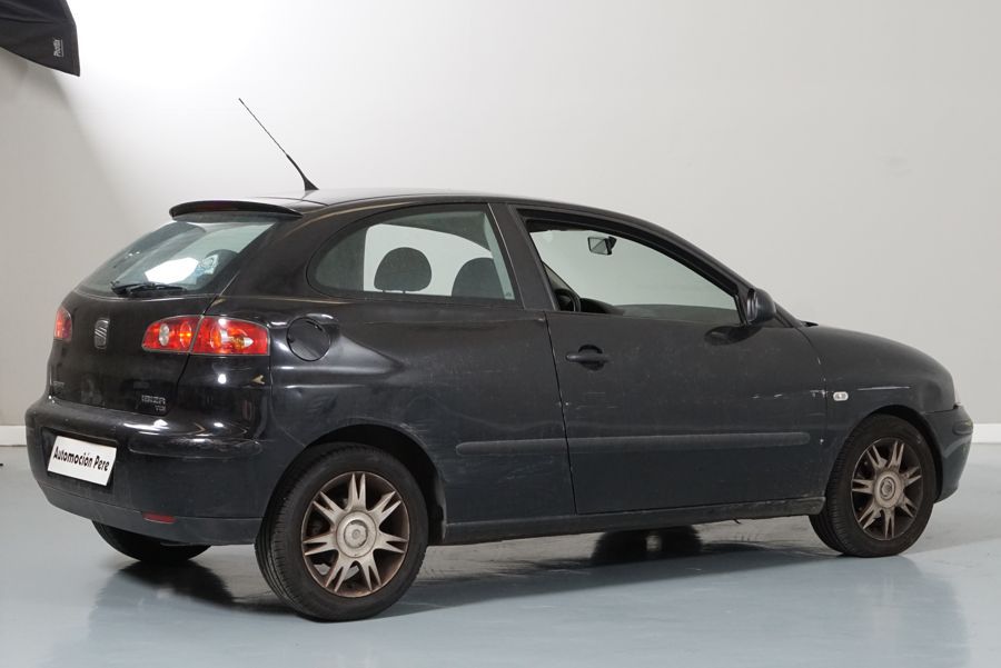 Seat Ibiza 1.9 TDi 100 CV Sport, Negro Metalizado, 3 Puertas. Año 30/07/2003. Climatizador, ABS, 4 Airbags, Elevalunas Eléctricos, Cierre Centralizado con Mando, Dirección Asistida, Volante de Cuero, Llantas, Faros Antiniebla.