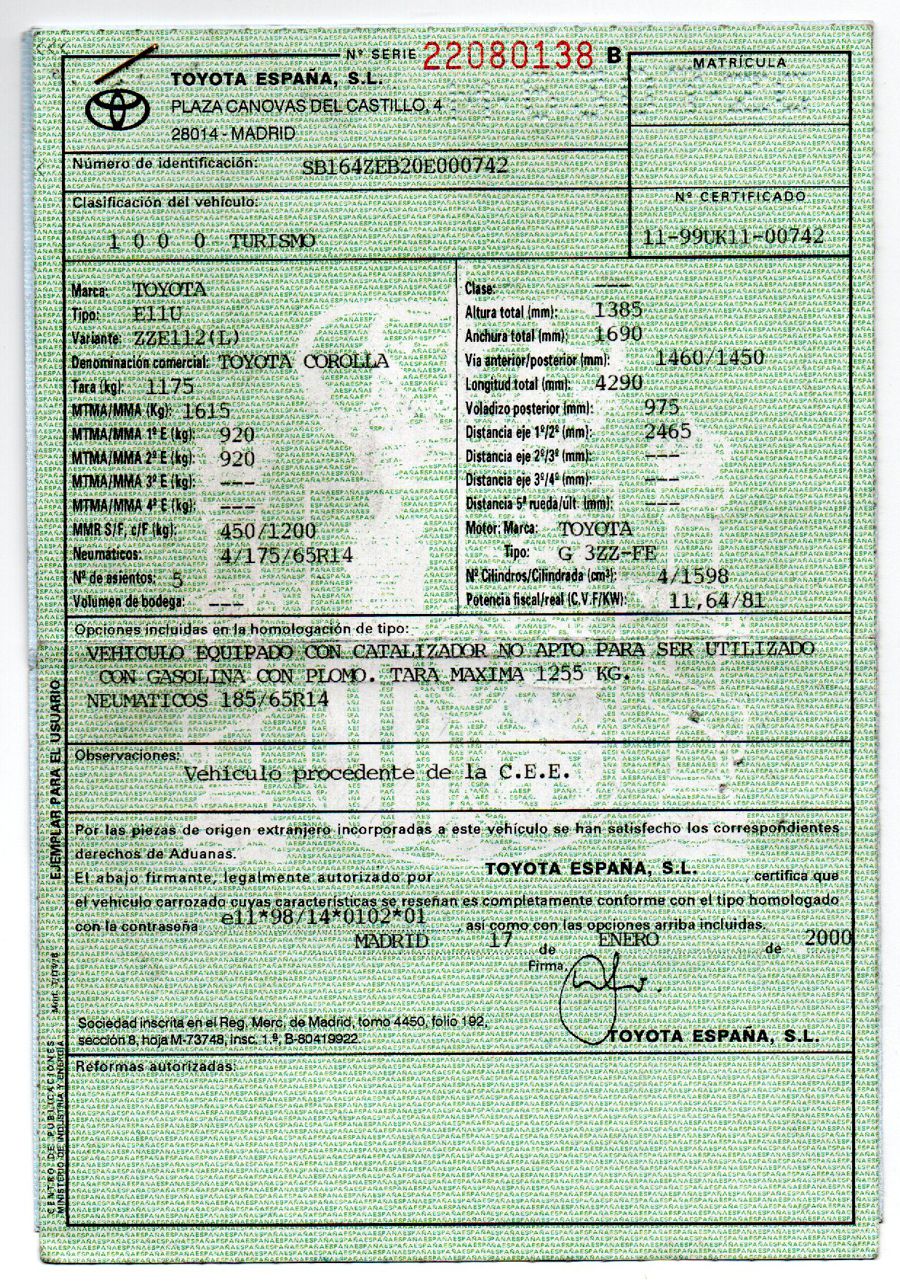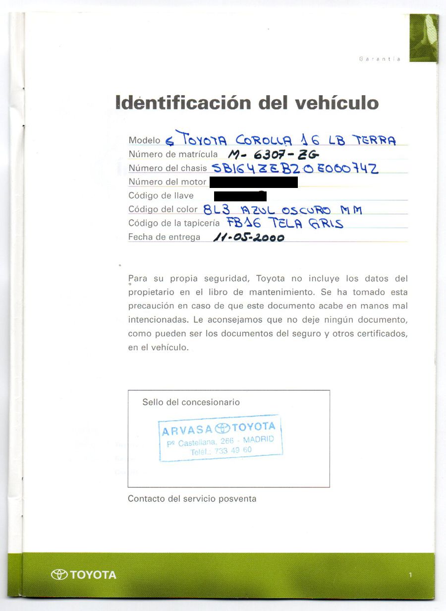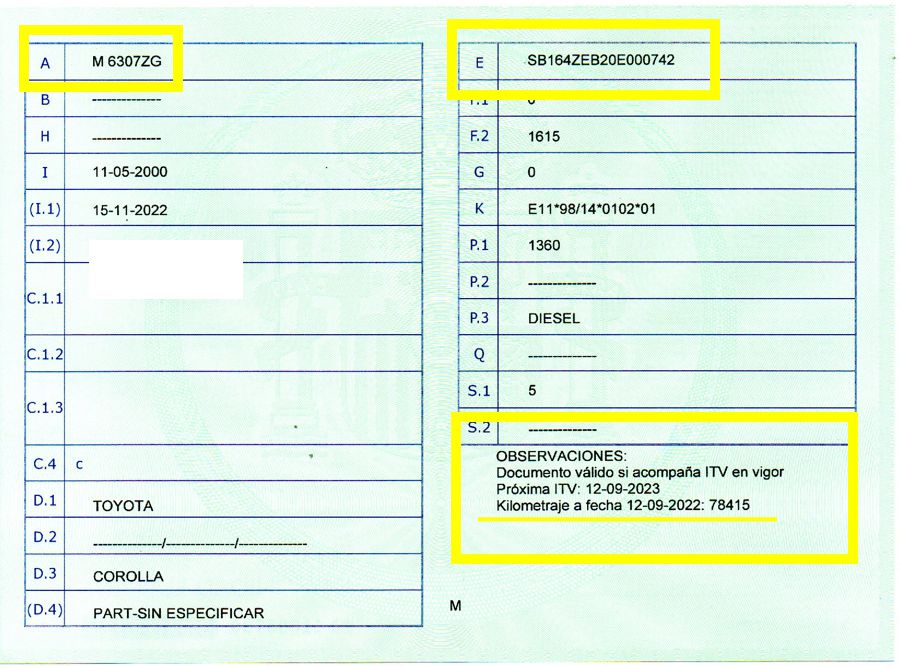Se Facilita Matricula y Numero de Bastidor para Consultas en la DGT o CARFAX.