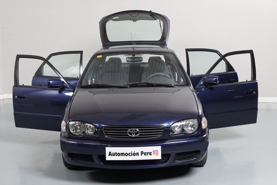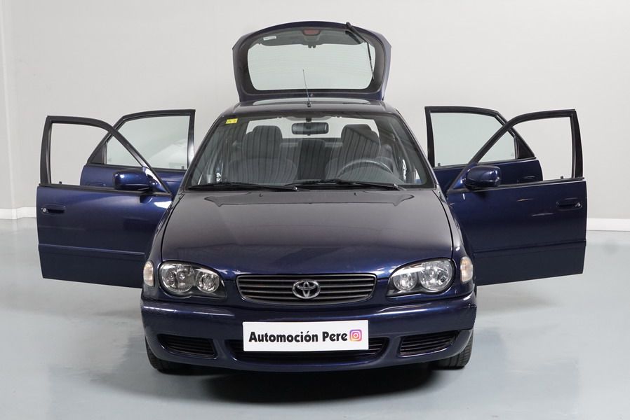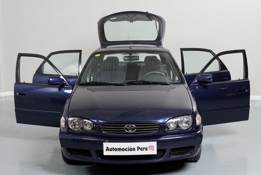 Toyota Corolla 1.6i 110 CV LiftBack Terra 5 Puertas. Año 11/05/2000. Color Azul Metalizado. Aire Acondicionado, ABS, Doble Airbag, Elevalunas Eléctricos Cierre Centralizado con Mando, Radio Original Toyota, Dirección Asistida. Muy Buen Estado, Pocos Kms. Revisiones Selladas.