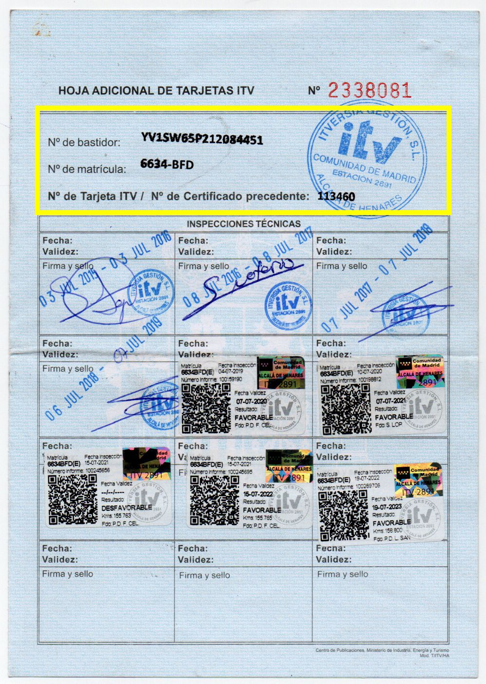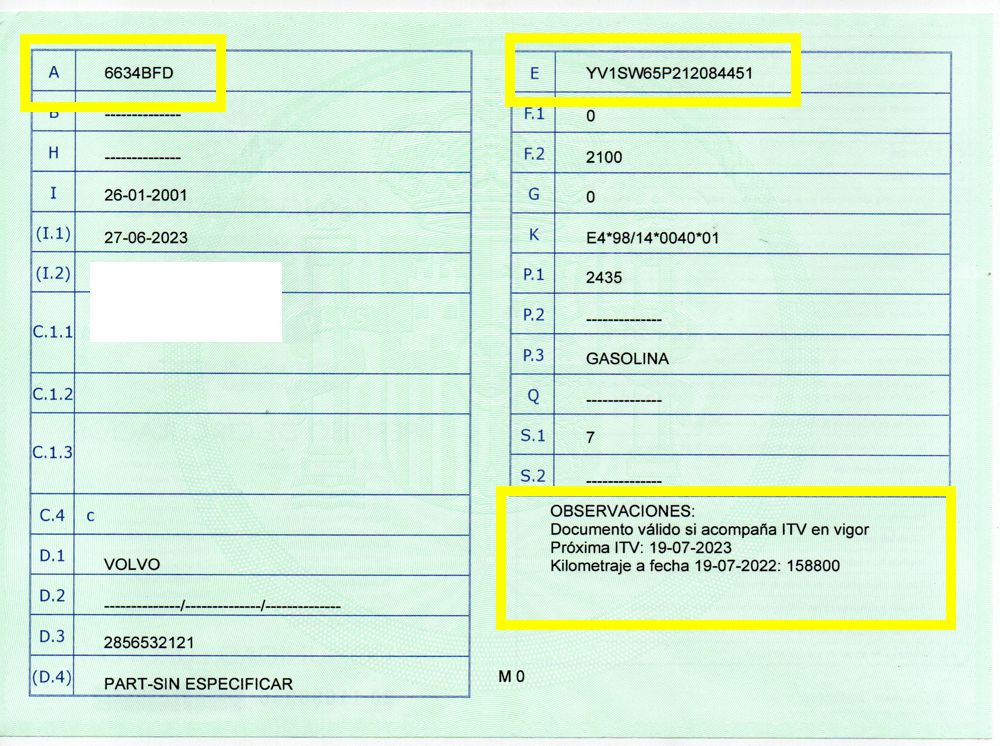 Se Facilita Matricula y Numero de Bastidor para Consultas en la DGT o CARFAX.