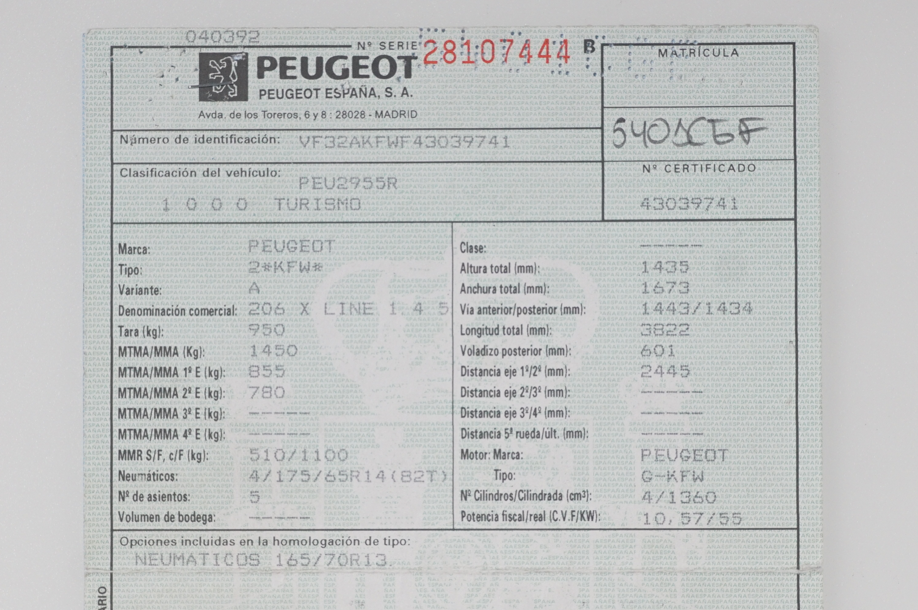 Ficha Técnica del Vehículo. (Total Transparencia)