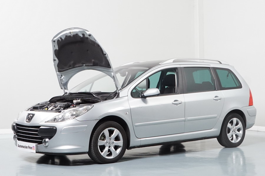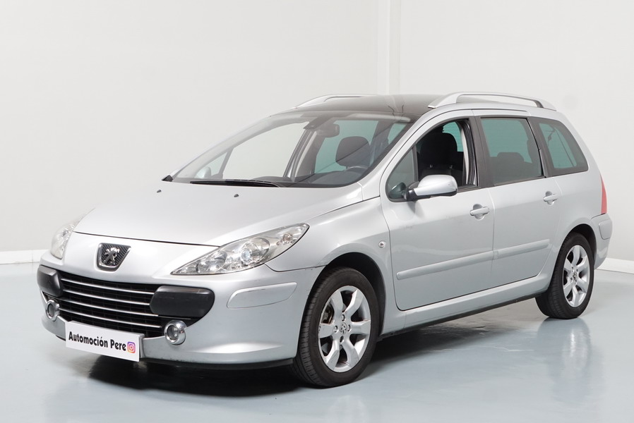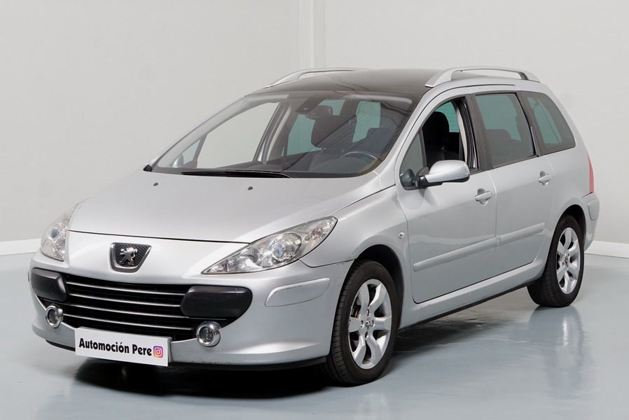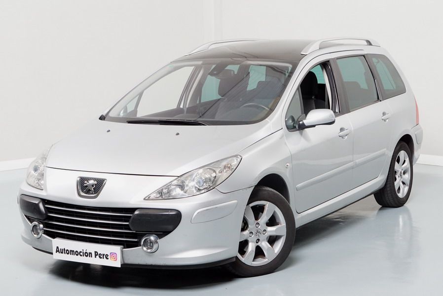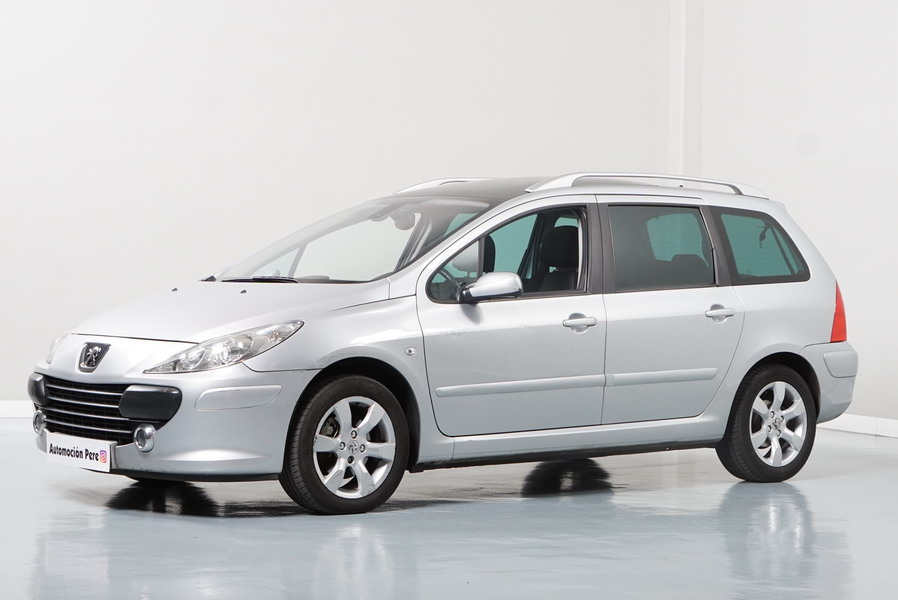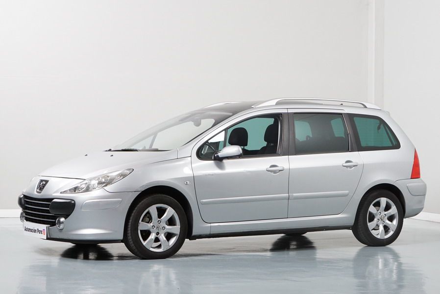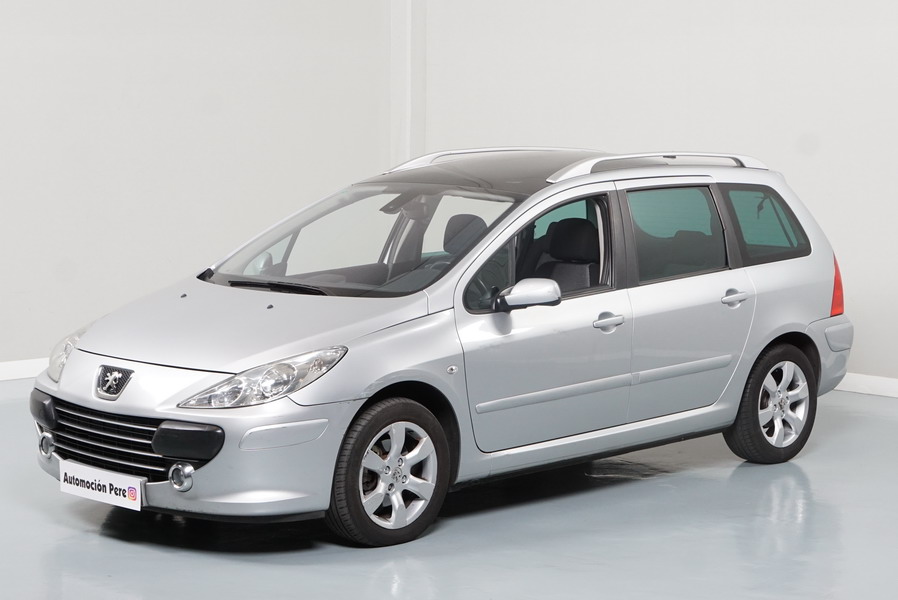 Peugeot 307 1.6 HDi 110 CV 5 Velocidades SW Pack+. Familiar. 5/7 Plazas. Color Gris Plata Metalizado, Climatizador, ABS, 6 Airbags, Techo Solar Panorámico, 4 Elevalunas Eléctricos, Cierre Centralizado con Mando, Retrovisores Eléctricos Retractiles, Radio/CD+MP3 con Mandos en el Volante, Llantas 16", Cristales Tintados Originales Peugeot, Volante de Cuero Regulable, Apoyabrazos Centrales Delanteros, Ordenador de Viaje.