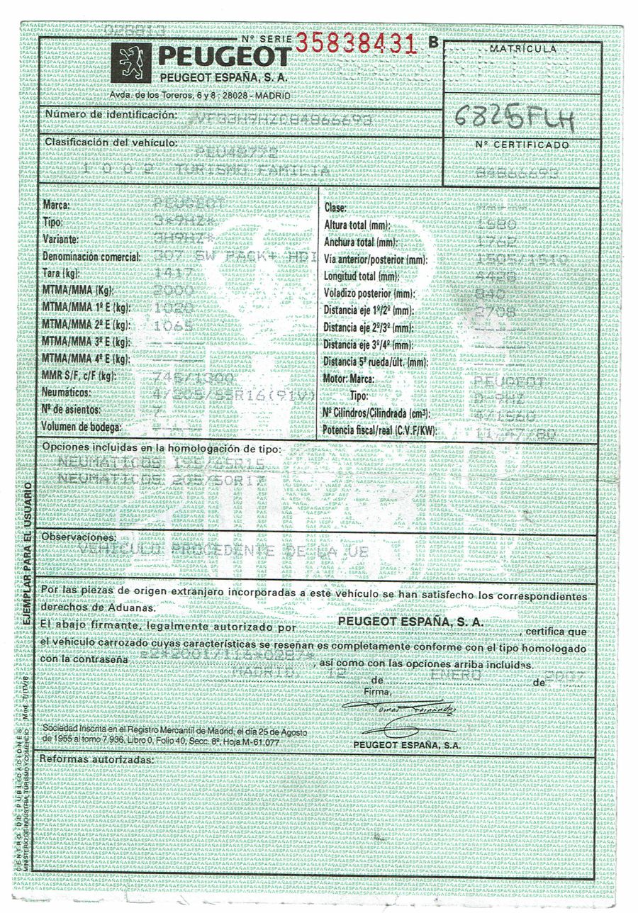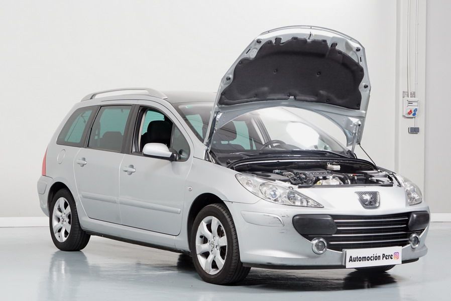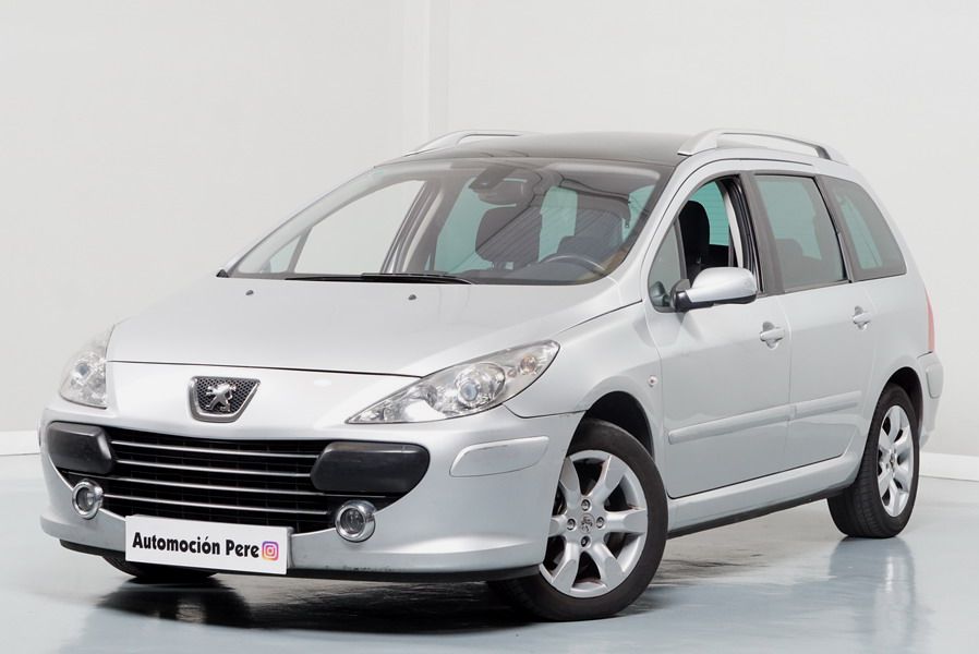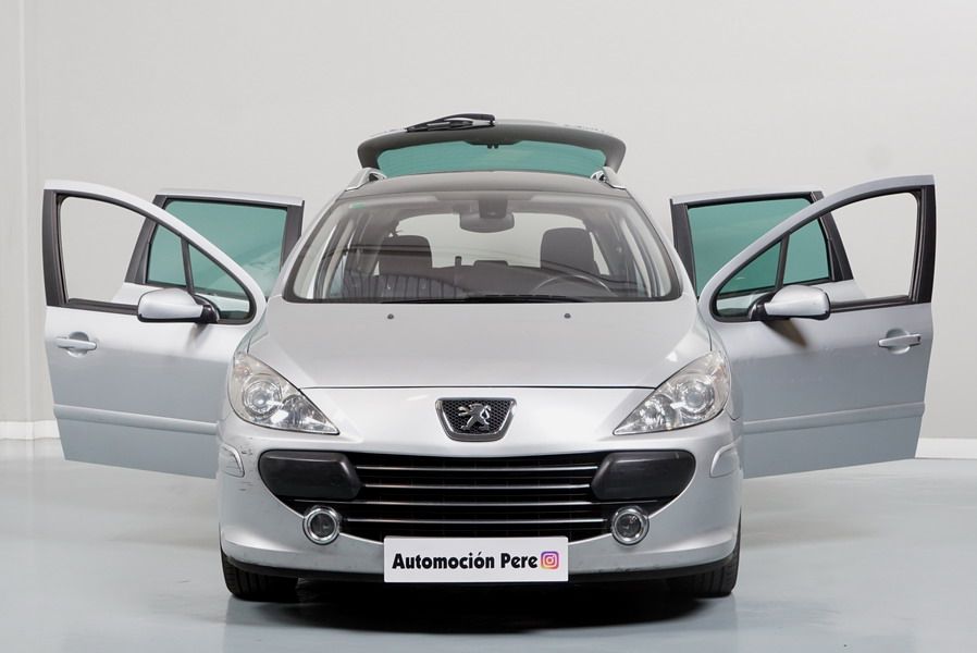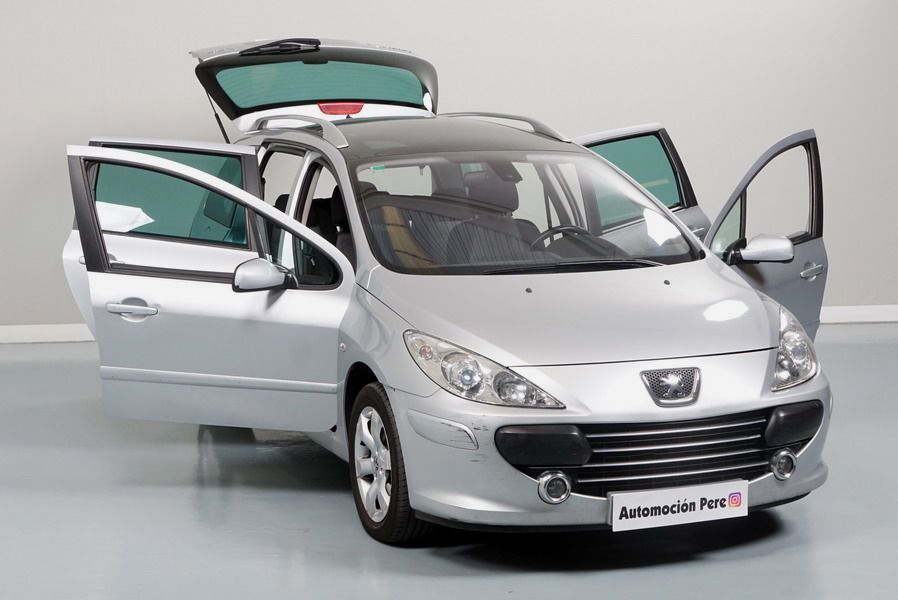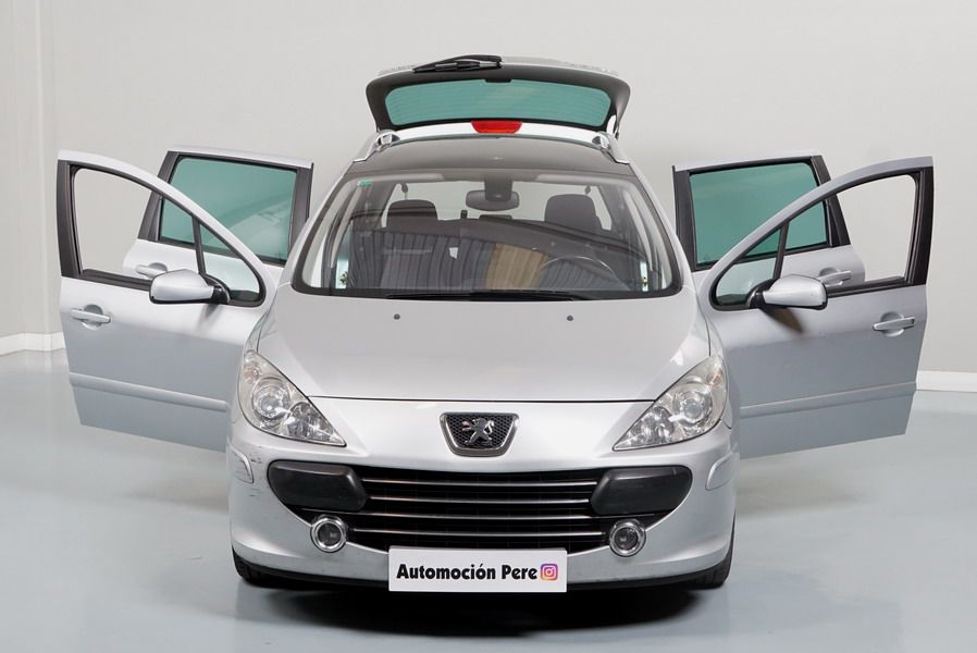 Peugeot 307 1.6 HDi 110 CV 5 Velocidades SW Pack+. Familiar. 5/7 Plazas. Color Gris Plata Metalizado, Climatizador, ABS, 6 Airbags, Techo Solar Panorámico, 4 Elevalunas Eléctricos, Cierre Centralizado con Mando, Retrovisores Eléctricos Retractiles, Radio/CD+MP3 con Mandos en el Volante, Llantas 16", Cristales Tintados Originales Peugeot, Volante de Cuero Regulable, Apoyabrazos Centrales Delanteros, Ordenador de Viaje.