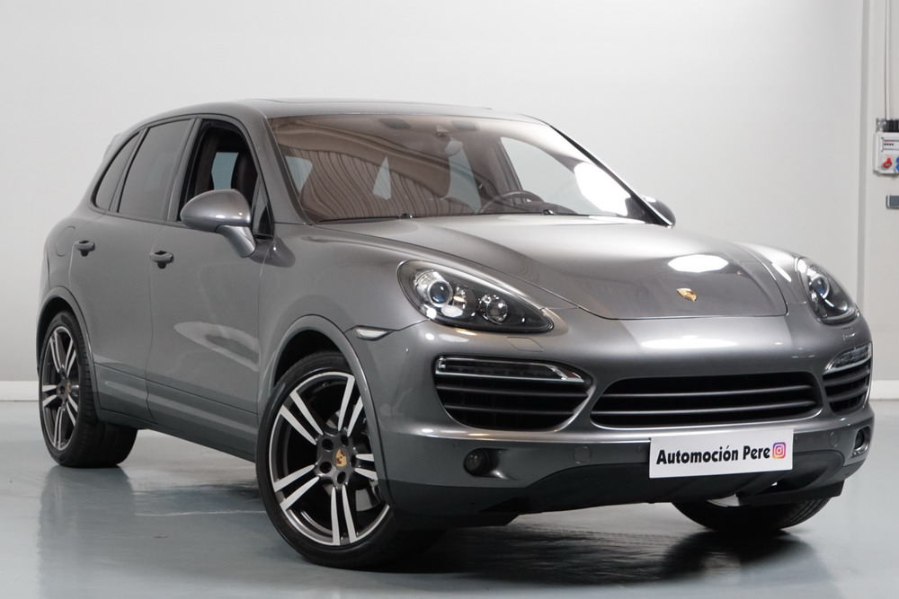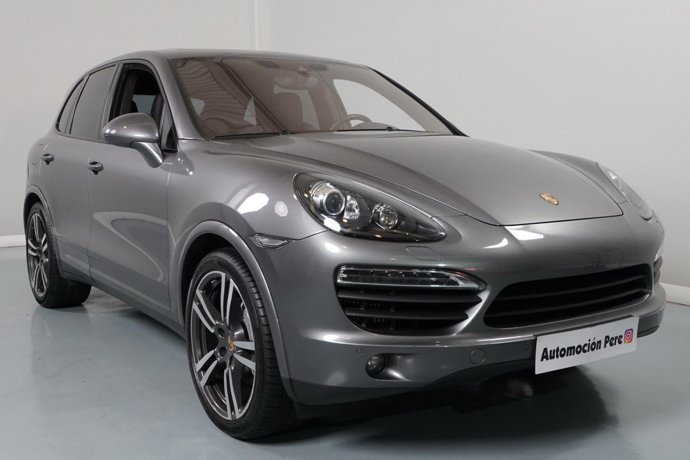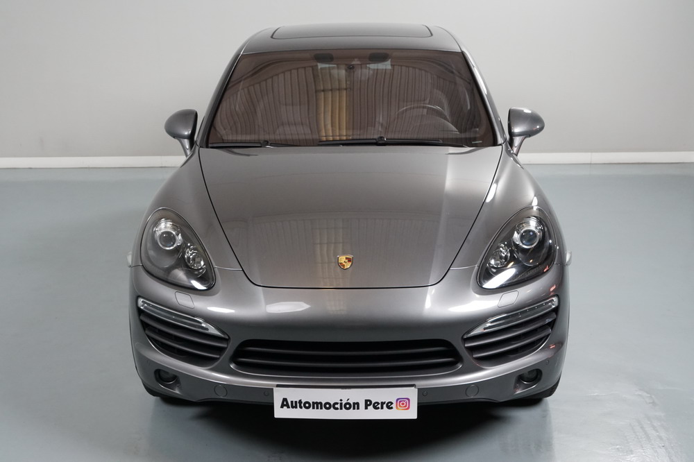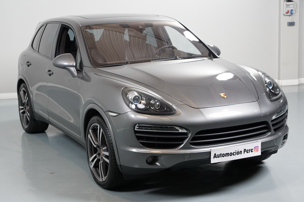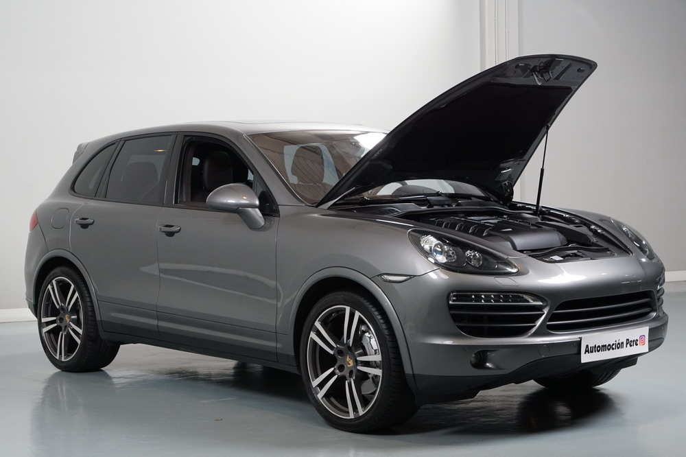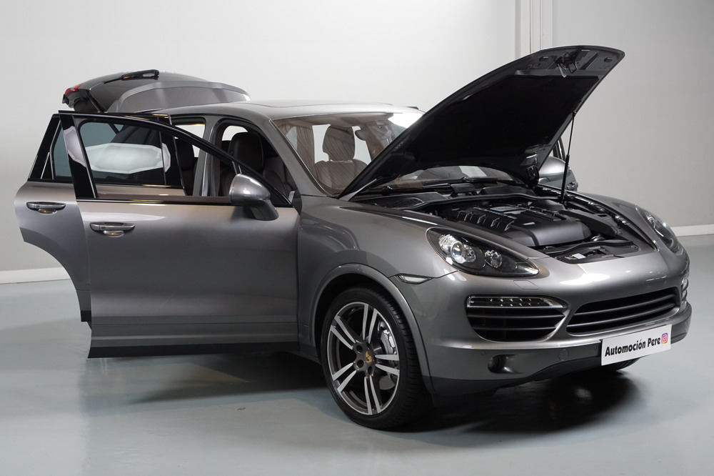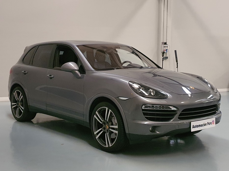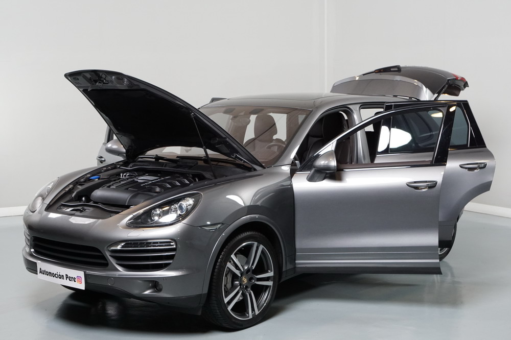 Porsche Cayenne S 4.2 TDi 382 CV V8. Año 28/05/2013. Color Gris Metalizado. Climatizador automático tri-zona, Faros Bi-Xenon incl. Porsche Dynamic Light Sistema (PDLS), Asientos delante regulable eléctricamente, Asistente a la conducción: Asistente de aparcamiento, Dirección asistida Plus (Dependiente de la velocidad), módulo del teléfono para Porsche Communications Management (PCM), Gancho para remolque plegable eléctricamente, Airbag acompañante Desconectable, Airbag conductor/acompañante, Airbag lateral delante ,Sistema de airbag para la cabeza (airbag-cortina), Sistema de Navegación Porsche Communications Management (PCM) con Off-Road - Navegador, Tipo transmisión: Tracción total permanente, Sistema antibloqueo (ABS), Alarma antirrobo, Automático Frenos Diferencial (ABD), Elevalunas eléctric. delante + detrás, Inmovilizador, Ordenador de a bordo, Porsche Stability Management (PSM), Radio CD, Instalación de arranque/parada, Conector-Universal Audio, Ensanchamiento del pasarruedas pintado, Filtro de aire (Filtro de olores), Asientos confort delanteros, Columna de dirección (Volante) regulable, Bujes rueda - Cubiertas Escudo, Porsche de color, Freno de estacionamiento eléctric, Techo Solar Panorámico, interiores totalmente en cuero, Pedales Acero inoxidable, Pinzas del freno "plata" anodizado, Retrovisor exterior esférico derecho/izquierdo, Alfombras Originales Porsche, Depósito combustible: 100 Ltr., Paquete extra luz confor LED, Paquete no fumador, Paquete-exterior, Lavafaros (Equipo lavafaros), Llantas de aleación 10x21 (Cayenne Edición Sport rueda, color carrocería), Retrovisores exteriores plegables eléctricamente y Calefactable, Suspensión neumática electrónico Regulado, Porsche Active Suspension Management (PASM), Suspensión autonivelante, Volante (piel 3 radios) con Multifunción, Pilotos traseros LED, Respaldo del asiento trasero dividido, Encendido automático de luces, Anclajes Isofix para Asiento para niños en Asiento trasero, Caja de cambios automática - Tiptronic (8 velocidades), Cierre centralizado con mando a distancia, Control de crucero (Tempomat), Portón trasero con automático sistema de apertura y cierre, Limpiaparabrisas con Sensor de lluvia, Luces antiniebla, Lunas tintadas, Luz de día LED, Acabado interior: Partes de piel.