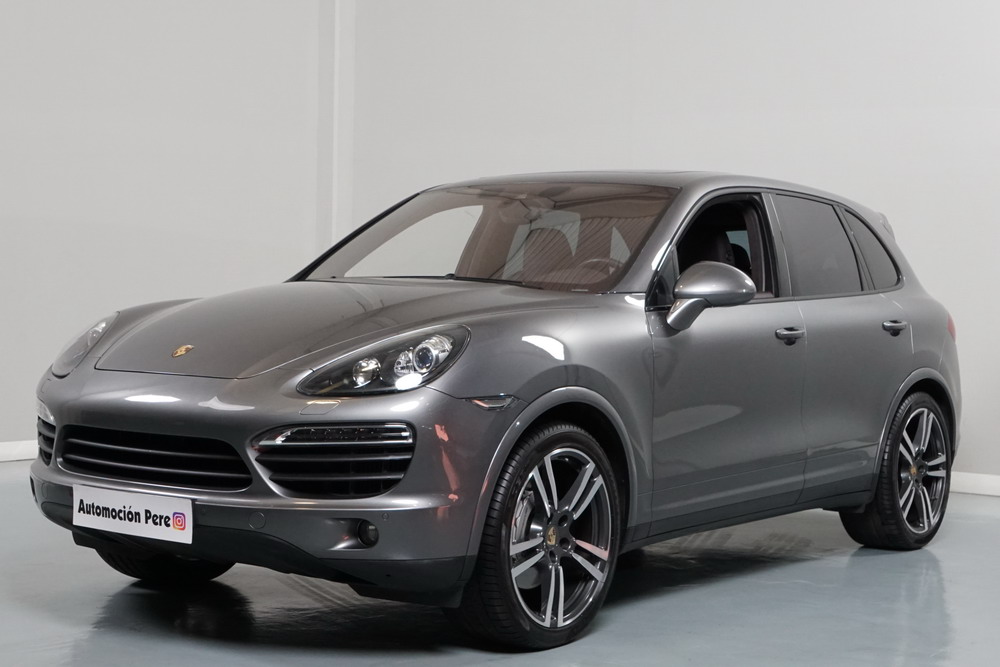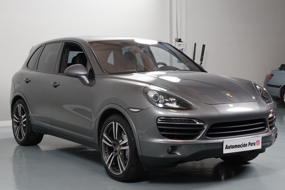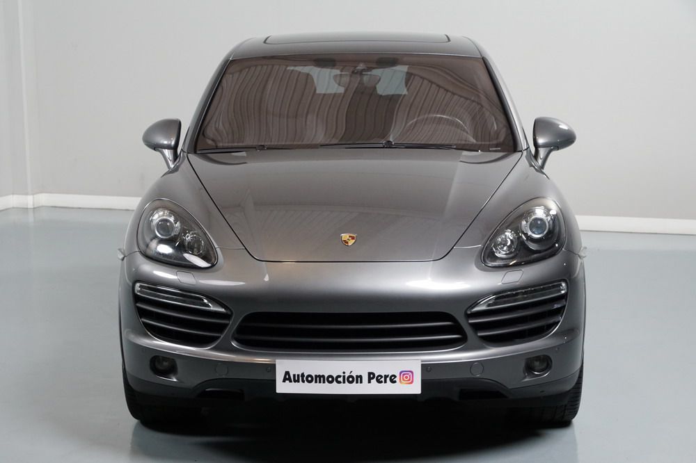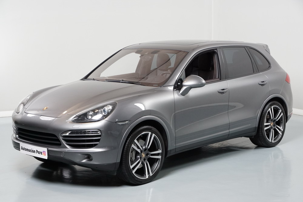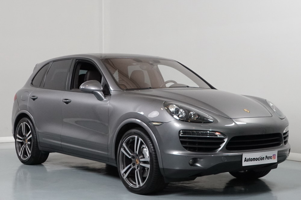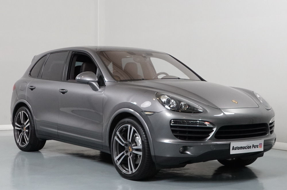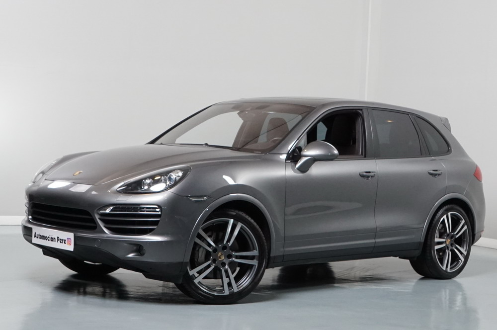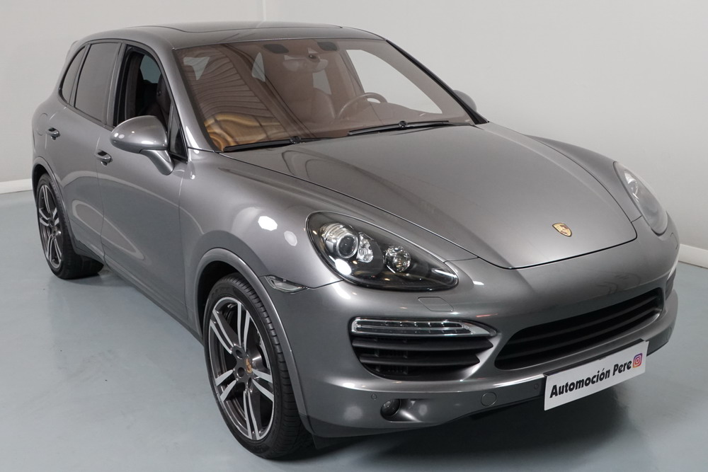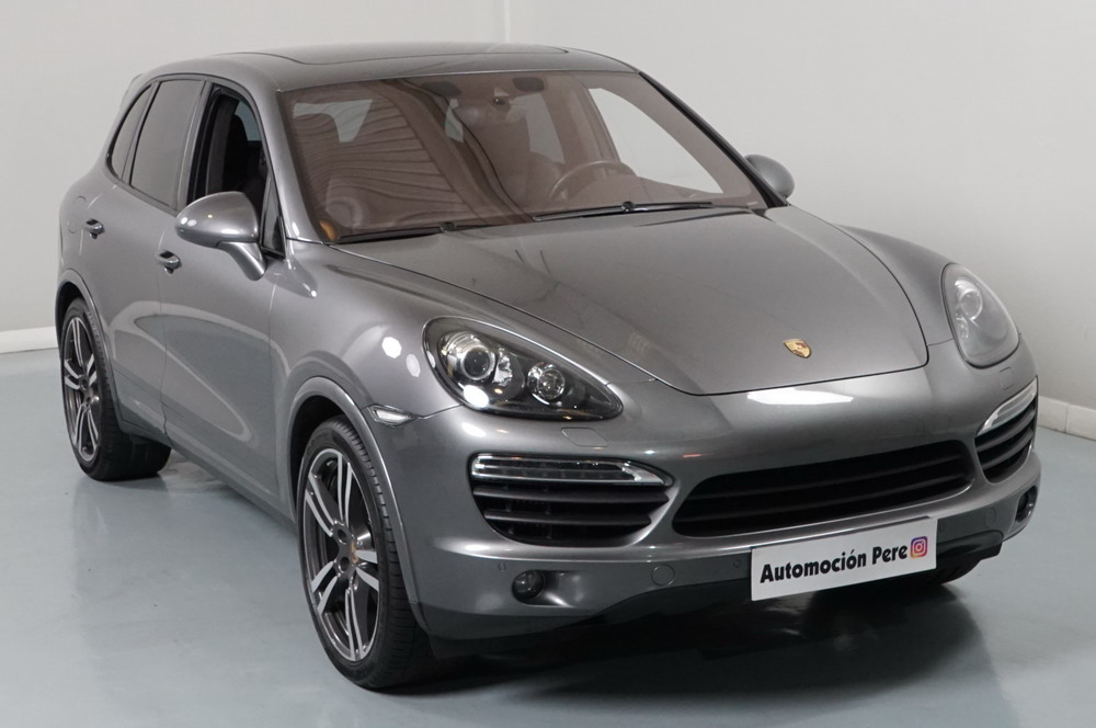 Porsche Cayenne S 4.2 TDi 382 CV V8. Año 28/05/2013. Color Gris Metalizado. Climatizador automático tri-zona, Faros Bi-Xenon incl. Porsche Dynamic Light Sistema (PDLS), Asientos delante regulable eléctricamente, Asistente a la conducción: Asistente de aparcamiento, Dirección asistida Plus (Dependiente de la velocidad), módulo del teléfono para Porsche Communications Management (PCM), Gancho para remolque plegable eléctricamente, Airbag acompañante Desconectable, Airbag conductor/acompañante, Airbag lateral delante ,Sistema de airbag para la cabeza (airbag-cortina), Sistema de Navegación Porsche Communications Management (PCM) con Off-Road - Navegador, Tipo transmisión: Tracción total permanente, Sistema antibloqueo (ABS), Alarma antirrobo, Automático Frenos Diferencial (ABD), Elevalunas eléctric. delante + detrás, Inmovilizador, Ordenador de a bordo, Porsche Stability Management (PSM), Radio CD, Instalación de arranque/parada, Conector-Universal Audio, Ensanchamiento del pasarruedas pintado, Filtro de aire (Filtro de olores), Asientos confort delanteros, Columna de dirección (Volante) regulable, Bujes rueda - Cubiertas Escudo, Porsche de color, Freno de estacionamiento eléctric, Techo Solar Panorámico, interiores totalmente en cuero, Pedales Acero inoxidable, Pinzas del freno "plata" anodizado, Retrovisor exterior esférico derecho/izquierdo, Alfombras Originales Porsche, Depósito combustible: 100 Ltr., Paquete extra luz confor LED, Paquete no fumador, Paquete-exterior, Lavafaros (Equipo lavafaros), Llantas de aleación 10x21 (Cayenne Edición Sport rueda, color carrocería), Retrovisores exteriores plegables eléctricamente y Calefactable, Suspensión neumática electrónico Regulado, Porsche Active Suspension Management (PASM), Suspensión autonivelante, Volante (piel 3 radios) con Multifunción, Pilotos traseros LED, Respaldo del asiento trasero dividido, Encendido automático de luces, Anclajes Isofix para Asiento para niños en Asiento trasero, Caja de cambios automática - Tiptronic (8 velocidades), Cierre centralizado con mando a distancia, Control de crucero (Tempomat), Portón trasero con automático sistema de apertura y cierre, Limpiaparabrisas con Sensor de lluvia, Luces antiniebla, Lunas tintadas, Luz de día LED, Acabado interior: Partes de piel.