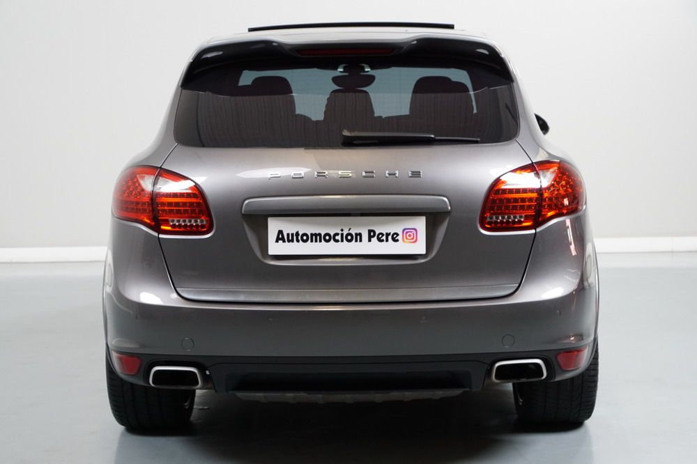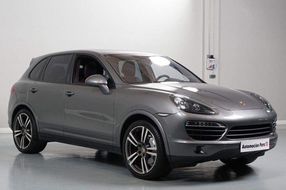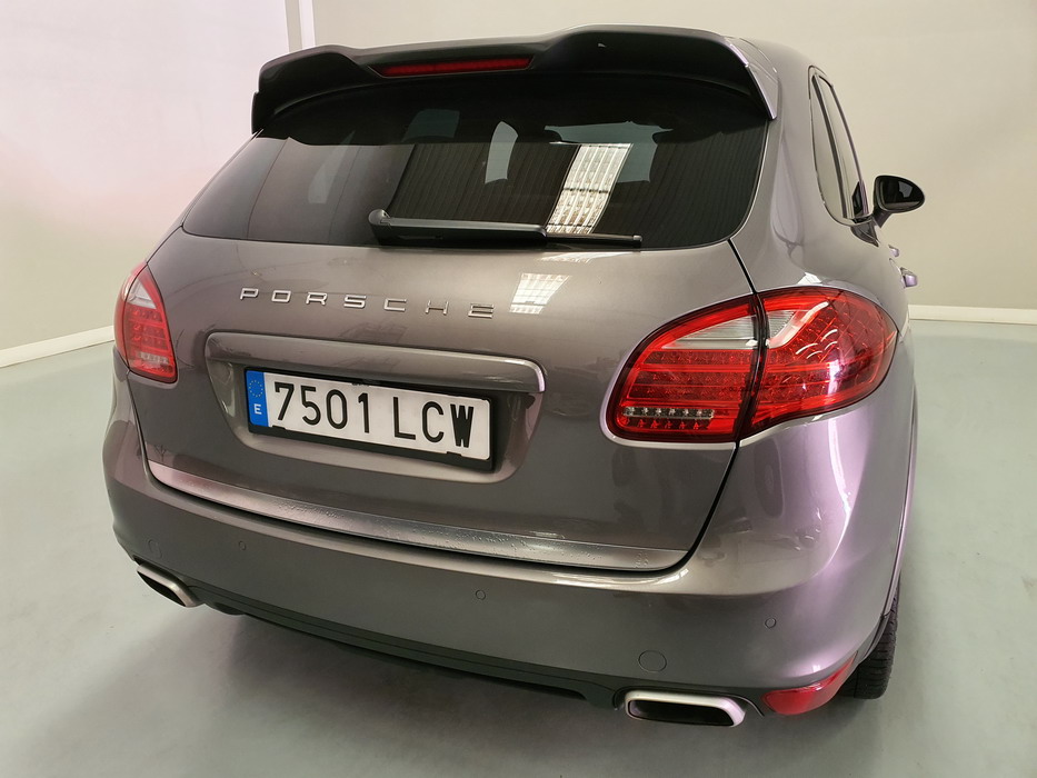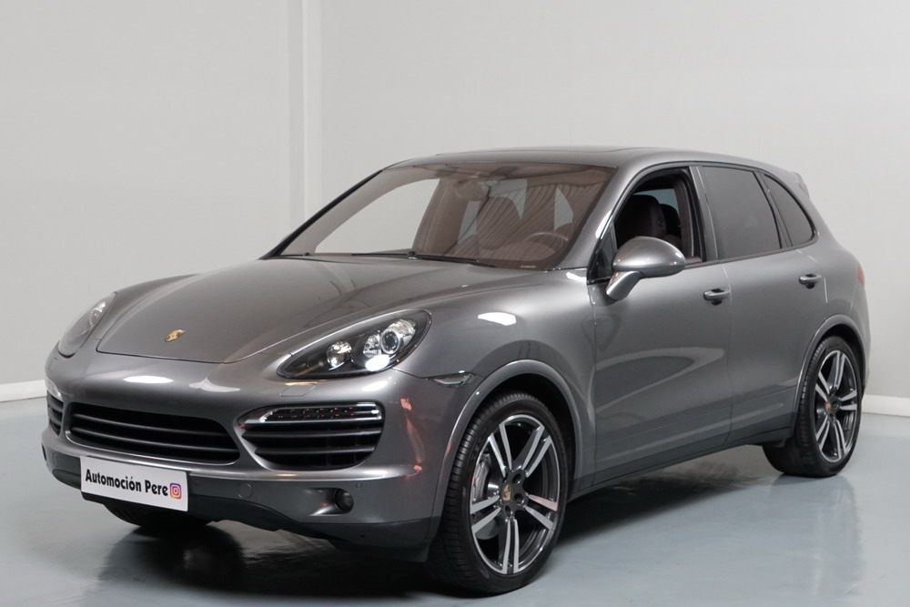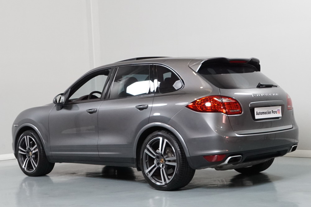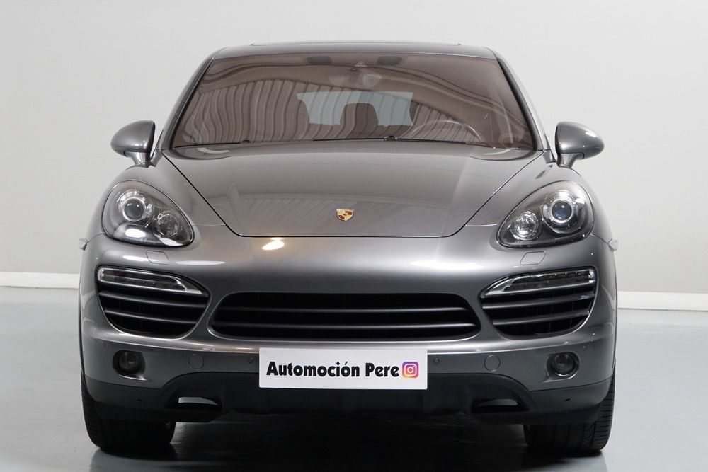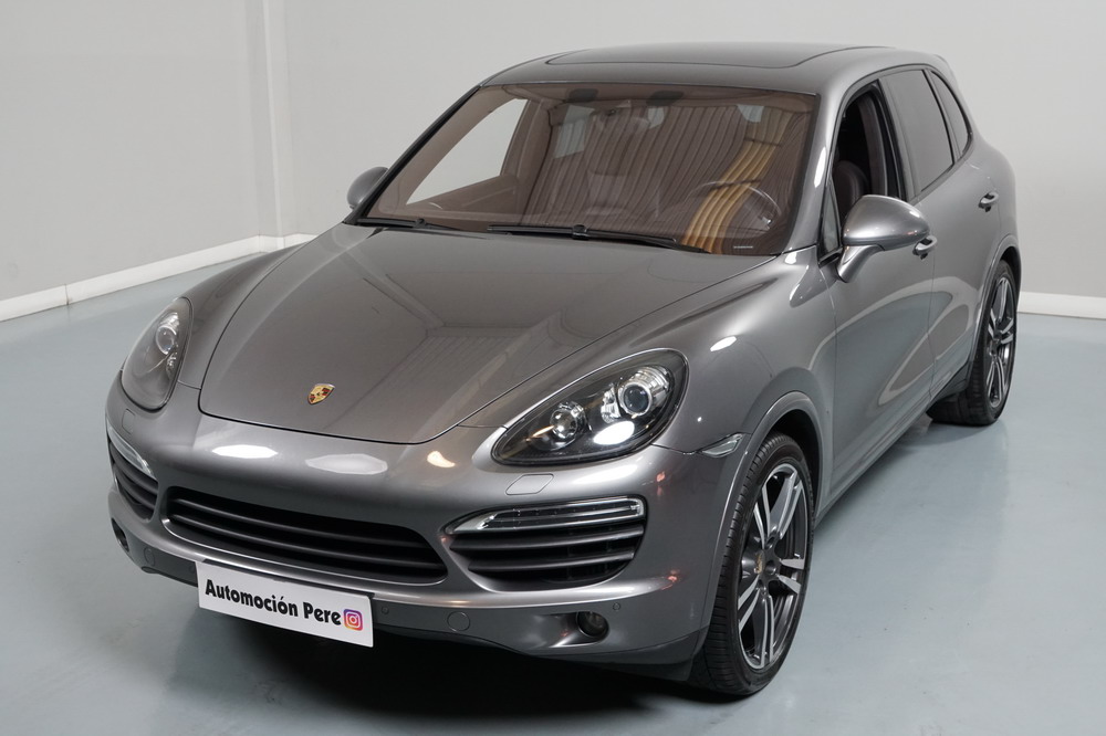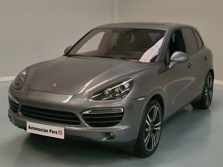 Porsche Cayenne S 4.2 TDi 382 CV V8. Año 28/05/2013. Color Gris Metalizado. Climatizador automático tri-zona, Faros Bi-Xenon incl. Porsche Dynamic Light Sistema (PDLS), Asientos delante regulable eléctricamente, Asistente a la conducción: Asistente de aparcamiento, Dirección asistida Plus (Dependiente de la velocidad), módulo del teléfono para Porsche Communications Management (PCM), Gancho para remolque plegable eléctricamente, Airbag acompañante Desconectable, Airbag conductor/acompañante, Airbag lateral delante ,Sistema de airbag para la cabeza (airbag-cortina), Sistema de Navegación Porsche Communications Management (PCM) con Off-Road - Navegador, Tipo transmisión: Tracción total permanente, Sistema antibloqueo (ABS), Alarma antirrobo, Automático Frenos Diferencial (ABD), Elevalunas eléctric. delante + detrás, Inmovilizador, Ordenador de a bordo, Porsche Stability Management (PSM), Radio CD, Instalación de arranque/parada, Conector-Universal Audio, Ensanchamiento del pasarruedas pintado, Filtro de aire (Filtro de olores), Asientos confort delanteros, Columna de dirección (Volante) regulable, Bujes rueda - Cubiertas Escudo, Porsche de color, Freno de estacionamiento eléctric, Techo Solar Panorámico, interiores totalmente en cuero, Pedales Acero inoxidable, Pinzas del freno "plata" anodizado, Retrovisor exterior esférico derecho/izquierdo, Alfombras Originales Porsche, Depósito combustible: 100 Ltr., Paquete extra luz confor LED, Paquete no fumador, Paquete-exterior, Lavafaros (Equipo lavafaros), Llantas de aleación 10x21 (Cayenne Edición Sport rueda, color carrocería), Retrovisores exteriores plegables eléctricamente y Calefactable, Suspensión neumática electrónico Regulado, Porsche Active Suspension Management (PASM), Suspensión autonivelante, Volante (piel 3 radios) con Multifunción, Pilotos traseros LED, Respaldo del asiento trasero dividido, Encendido automático de luces, Anclajes Isofix para Asiento para niños en Asiento trasero, Caja de cambios automática - Tiptronic (8 velocidades), Cierre centralizado con mando a distancia, Control de crucero (Tempomat), Portón trasero con automático sistema de apertura y cierre, Limpiaparabrisas con Sensor de lluvia, Luces antiniebla, Lunas tintadas, Luz de día LED, Acabado interior: Partes de piel.