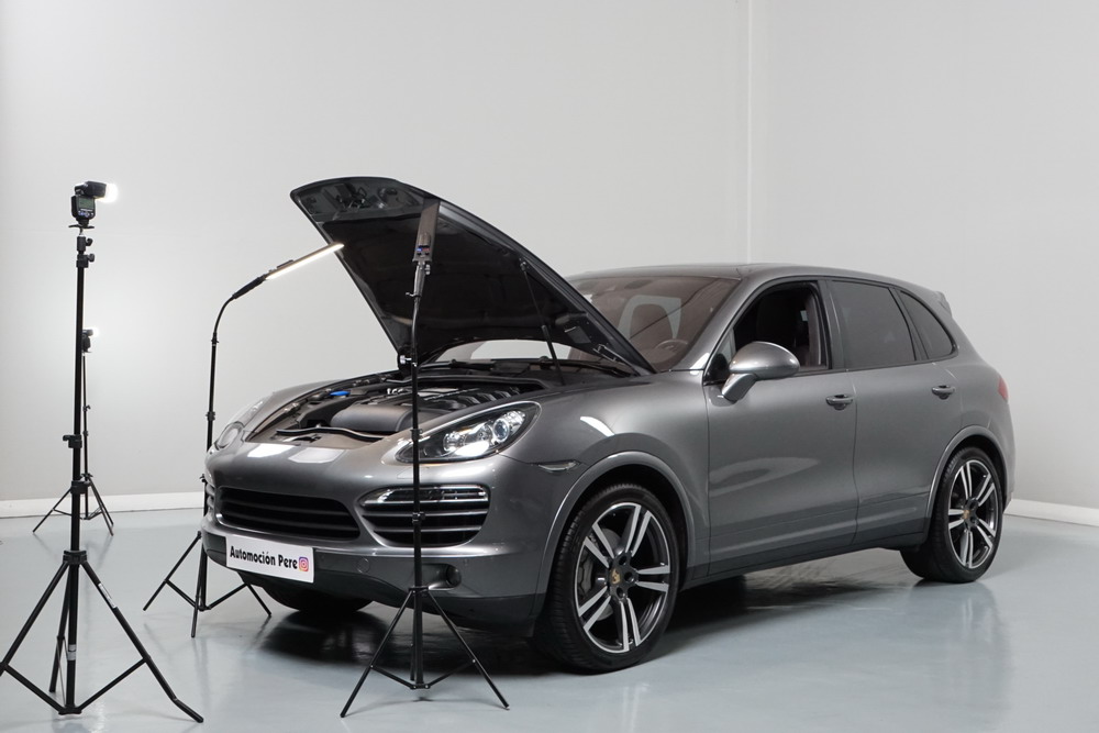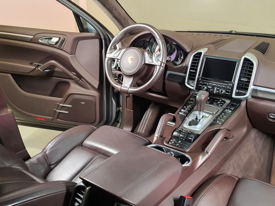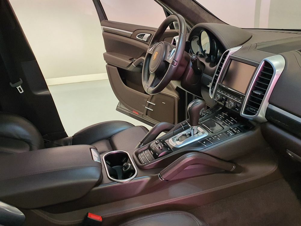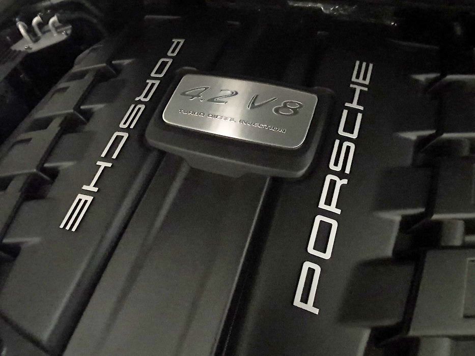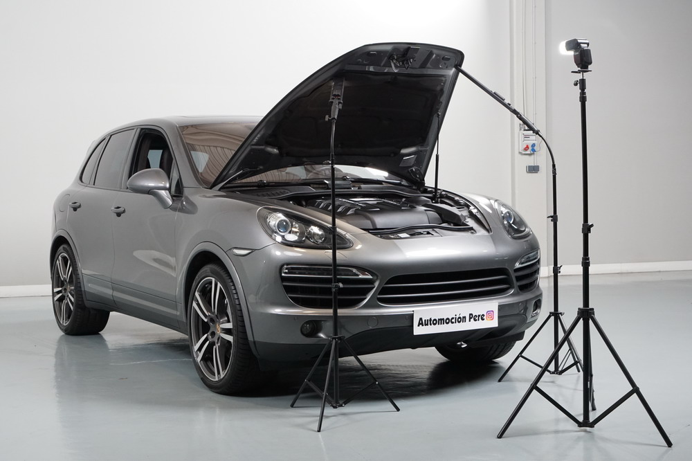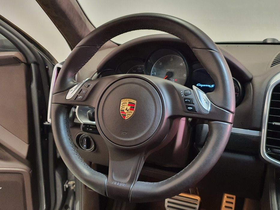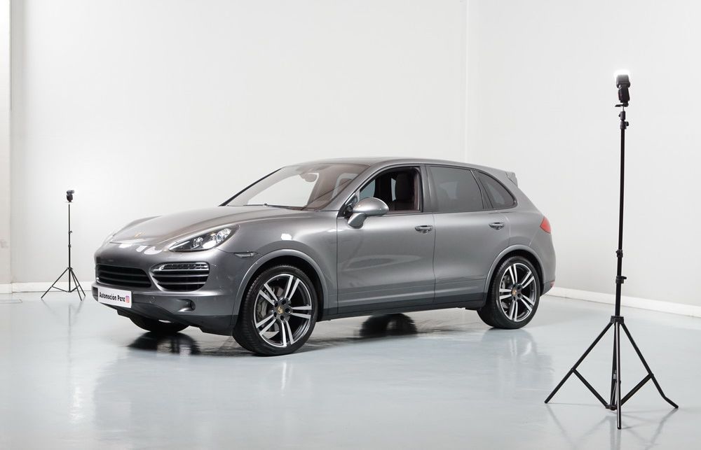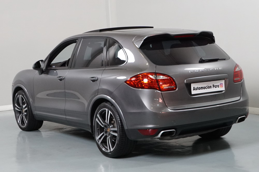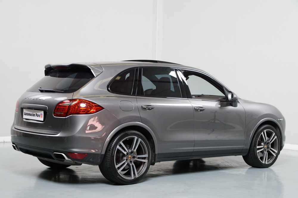 Porsche Cayenne S 4.2 TDi 382 CV V8. Año 28/05/2013. Color Gris Metalizado. Climatizador automático tri-zona, Faros Bi-Xenon incl. Porsche Dynamic Light Sistema (PDLS), Asientos delante regulable eléctricamente, Asistente a la conducción: Asistente de aparcamiento, Dirección asistida Plus (Dependiente de la velocidad), módulo del teléfono para Porsche Communications Management (PCM), Gancho para remolque plegable eléctricamente, Airbag acompañante Desconectable, Airbag conductor/acompañante, Airbag lateral delante ,Sistema de airbag para la cabeza (airbag-cortina), Sistema de Navegación Porsche Communications Management (PCM) con Off-Road - Navegador, Tipo transmisión: Tracción total permanente, Sistema antibloqueo (ABS), Alarma antirrobo, Automático Frenos Diferencial (ABD), Elevalunas eléctric. delante + detrás, Inmovilizador, Ordenador de a bordo, Porsche Stability Management (PSM), Radio CD, Instalación de arranque/parada, Conector-Universal Audio, Ensanchamiento del pasarruedas pintado, Filtro de aire (Filtro de olores), Asientos confort delanteros, Columna de dirección (Volante) regulable, Bujes rueda - Cubiertas Escudo, Porsche de color, Freno de estacionamiento eléctric, Techo Solar Panorámico, interiores totalmente en cuero, Pedales Acero inoxidable, Pinzas del freno "plata" anodizado, Retrovisor exterior esférico derecho/izquierdo, Alfombras Originales Porsche, Depósito combustible: 100 Ltr., Paquete extra luz confor LED, Paquete no fumador, Paquete-exterior, Lavafaros (Equipo lavafaros), Llantas de aleación 10x21 (Cayenne Edición Sport rueda, color carrocería), Retrovisores exteriores plegables eléctricamente y Calefactable, Suspensión neumática electrónico Regulado, Porsche Active Suspension Management (PASM), Suspensión autonivelante, Volante (piel 3 radios) con Multifunción, Pilotos traseros LED, Respaldo del asiento trasero dividido, Encendido automático de luces, Anclajes Isofix para Asiento para niños en Asiento trasero, Caja de cambios automática - Tiptronic (8 velocidades), Cierre centralizado con mando a distancia, Control de crucero (Tempomat), Portón trasero con automático sistema de apertura y cierre, Limpiaparabrisas con Sensor de lluvia, Luces antiniebla, Lunas tintadas, Luz de día LED, Acabado interior: Partes de piel.