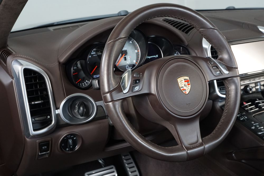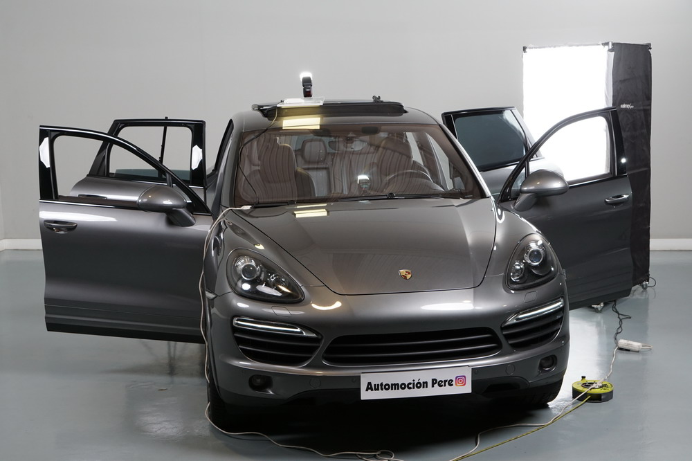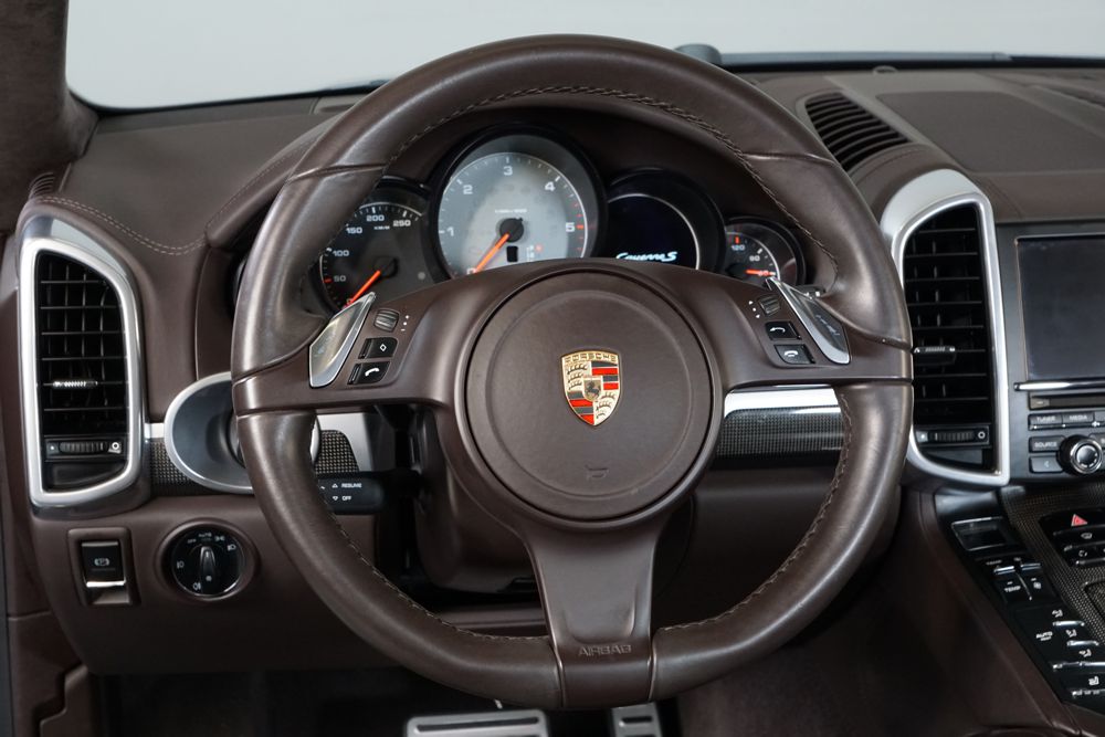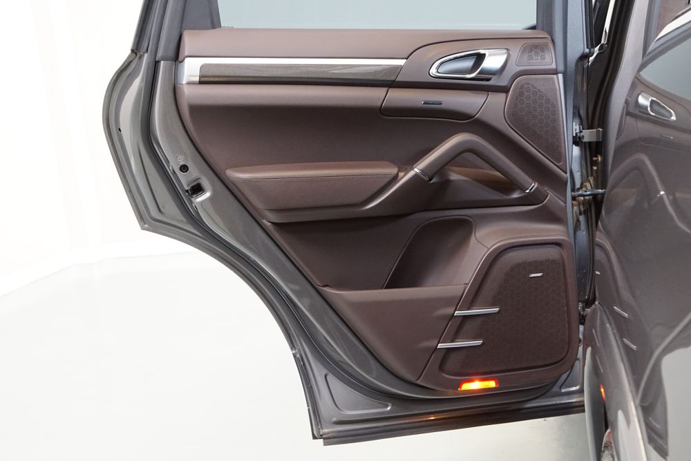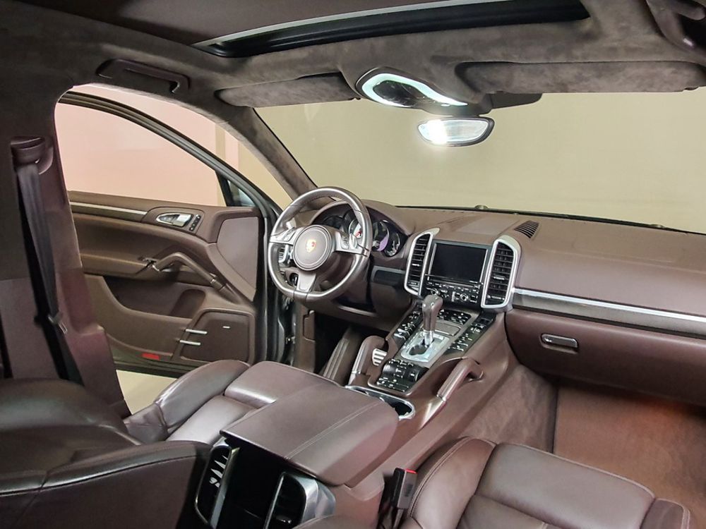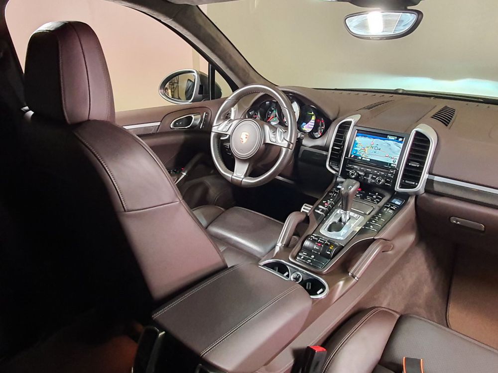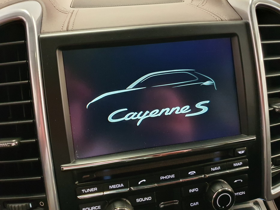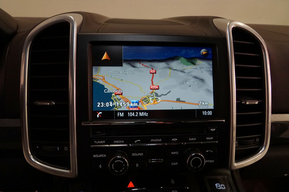 Porsche Cayenne S 4.2 TDi 382 CV V8. Año 28/05/2013. Color Gris Metalizado. Climatizador automático tri-zona, Faros Bi-Xenon incl. Porsche Dynamic Light Sistema (PDLS), Asientos delante regulable eléctricamente, Asistente a la conducción: Asistente de aparcamiento, Dirección asistida Plus (Dependiente de la velocidad), módulo del teléfono para Porsche Communications Management (PCM), Gancho para remolque plegable eléctricamente, Airbag acompañante Desconectable, Airbag conductor/acompañante, Airbag lateral delante ,Sistema de airbag para la cabeza (airbag-cortina), Sistema de Navegación Porsche Communications Management (PCM) con Off-Road - Navegador, Tipo transmisión: Tracción total permanente, Sistema antibloqueo (ABS), Alarma antirrobo, Automático Frenos Diferencial (ABD), Elevalunas eléctric. delante + detrás, Inmovilizador, Ordenador de a bordo, Porsche Stability Management (PSM), Radio CD, Instalación de arranque/parada, Conector-Universal Audio, Ensanchamiento del pasarruedas pintado, Filtro de aire (Filtro de olores), Asientos confort delanteros, Columna de dirección (Volante) regulable, Bujes rueda - Cubiertas Escudo, Porsche de color, Freno de estacionamiento eléctric, Techo Solar Panorámico, interiores totalmente en cuero, Pedales Acero inoxidable, Pinzas del freno "plata" anodizado, Retrovisor exterior esférico derecho/izquierdo, Alfombras Originales Porsche, Depósito combustible: 100 Ltr., Paquete extra luz confor LED, Paquete no fumador, Paquete-exterior, Lavafaros (Equipo lavafaros), Llantas de aleación 10x21 (Cayenne Edición Sport rueda, color carrocería), Retrovisores exteriores plegables eléctricamente y Calefactable, Suspensión neumática electrónico Regulado, Porsche Active Suspension Management (PASM), Suspensión autonivelante, Volante (piel 3 radios) con Multifunción, Pilotos traseros LED, Respaldo del asiento trasero dividido, Encendido automático de luces, Anclajes Isofix para Asiento para niños en Asiento trasero, Caja de cambios automática - Tiptronic (8 velocidades), Cierre centralizado con mando a distancia, Control de crucero (Tempomat), Portón trasero con automático sistema de apertura y cierre, Limpiaparabrisas con Sensor de lluvia, Luces antiniebla, Lunas tintadas, Luz de día LED, Acabado interior: Partes de piel.
