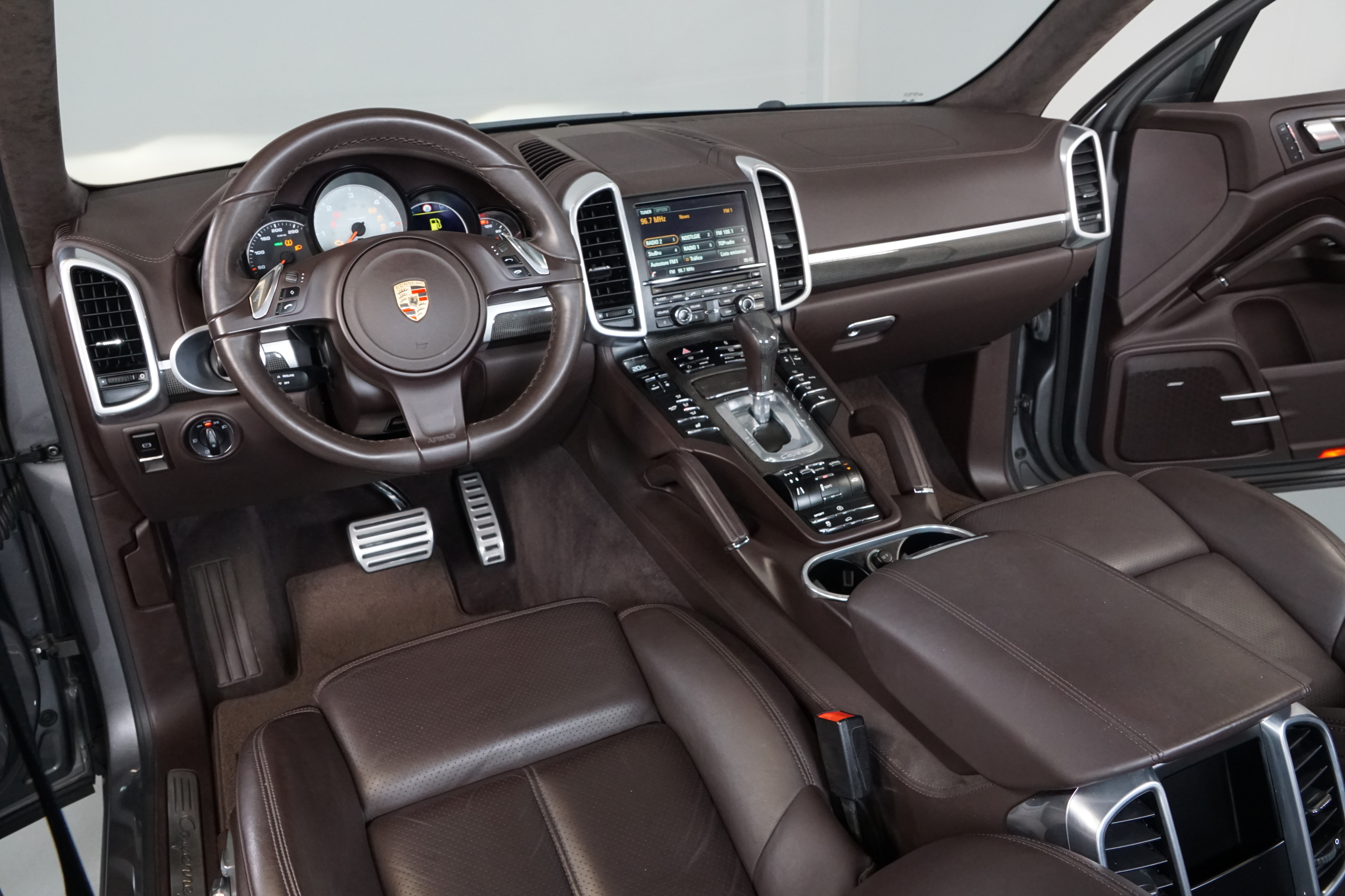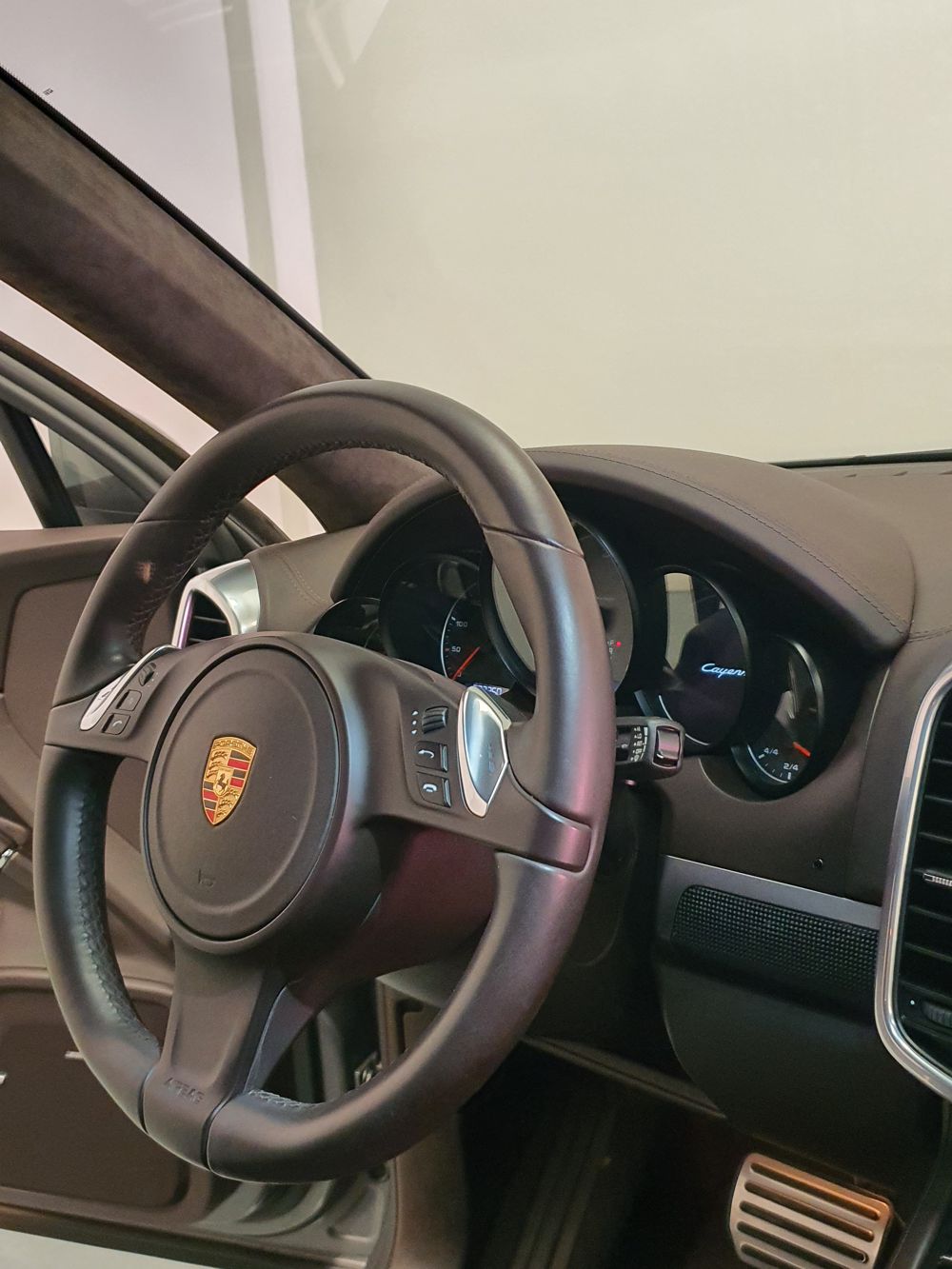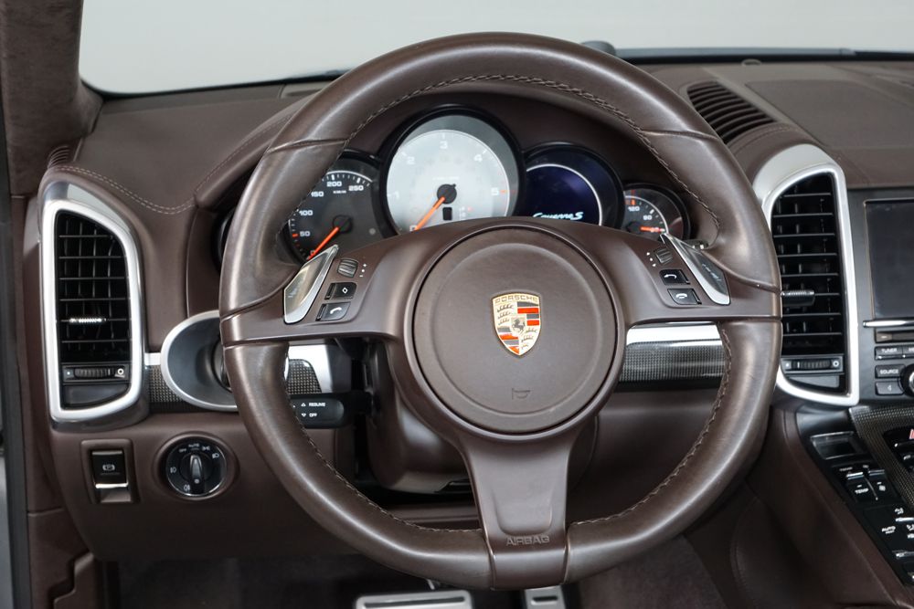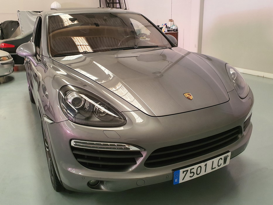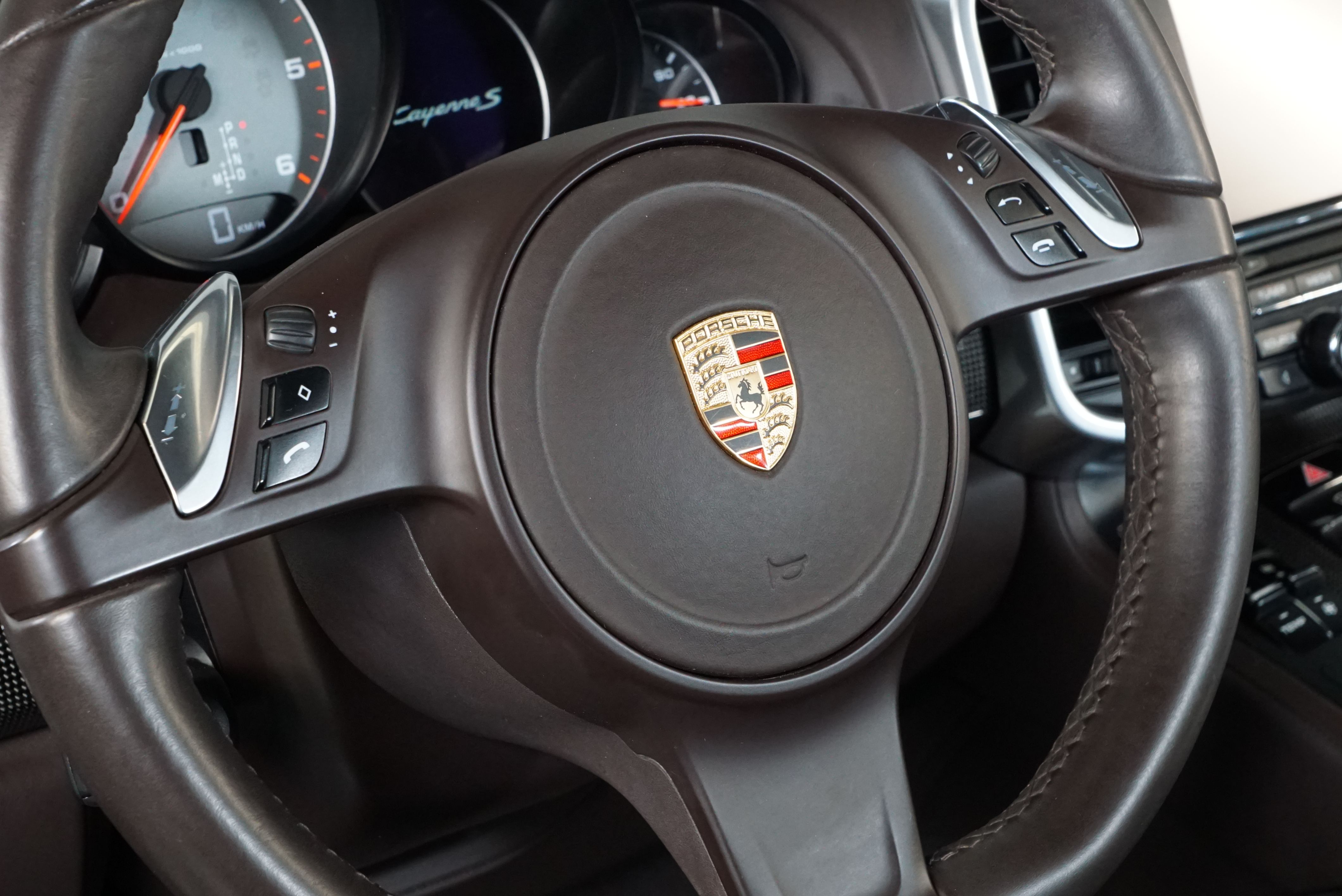 Porsche Cayenne S 4.2 TDi 382 CV V8. Año 28/05/2013. Color Gris Metalizado. Climatizador automático tri-zona, Faros Bi-Xenon incl. Porsche Dynamic Light Sistema (PDLS), Asientos delante regulable eléctricamente, Asistente a la conducción: Asistente de aparcamiento, Dirección asistida Plus (Dependiente de la velocidad), módulo del teléfono para Porsche Communications Management (PCM), Gancho para remolque plegable eléctricamente, Airbag acompañante Desconectable, Airbag conductor/acompañante, Airbag lateral delante ,Sistema de airbag para la cabeza (airbag-cortina), Sistema de Navegación Porsche Communications Management (PCM) con Off-Road - Navegador, Tipo transmisión: Tracción total permanente, Sistema antibloqueo (ABS), Alarma antirrobo, Automático Frenos Diferencial (ABD), Elevalunas eléctric. delante + detrás, Inmovilizador, Ordenador de a bordo, Porsche Stability Management (PSM), Radio CD, Instalación de arranque/parada, Conector-Universal Audio, Ensanchamiento del pasarruedas pintado, Filtro de aire (Filtro de olores), Asientos confort delanteros, Columna de dirección (Volante) regulable, Bujes rueda - Cubiertas Escudo, Porsche de color, Freno de estacionamiento eléctric, Techo Solar Panorámico, interiores totalmente en cuero, Pedales Acero inoxidable, Pinzas del freno "plata" anodizado, Retrovisor exterior esférico derecho/izquierdo, Alfombras Originales Porsche, Depósito combustible: 100 Ltr., Paquete extra luz confor LED, Paquete no fumador, Paquete-exterior, Lavafaros (Equipo lavafaros), Llantas de aleación 10x21 (Cayenne Edición Sport rueda, color carrocería), Retrovisores exteriores plegables eléctricamente y Calefactable, Suspensión neumática electrónico Regulado, Porsche Active Suspension Management (PASM), Suspensión autonivelante, Volante (piel 3 radios) con Multifunción, Pilotos traseros LED, Respaldo del asiento trasero dividido, Encendido automático de luces, Anclajes Isofix para Asiento para niños en Asiento trasero, Caja de cambios automática - Tiptronic (8 velocidades), Cierre centralizado con mando a distancia, Control de crucero (Tempomat), Portón trasero con automático sistema de apertura y cierre, Limpiaparabrisas con Sensor de lluvia, Luces antiniebla, Lunas tintadas, Luz de día LED, Acabado interior: Partes de piel.