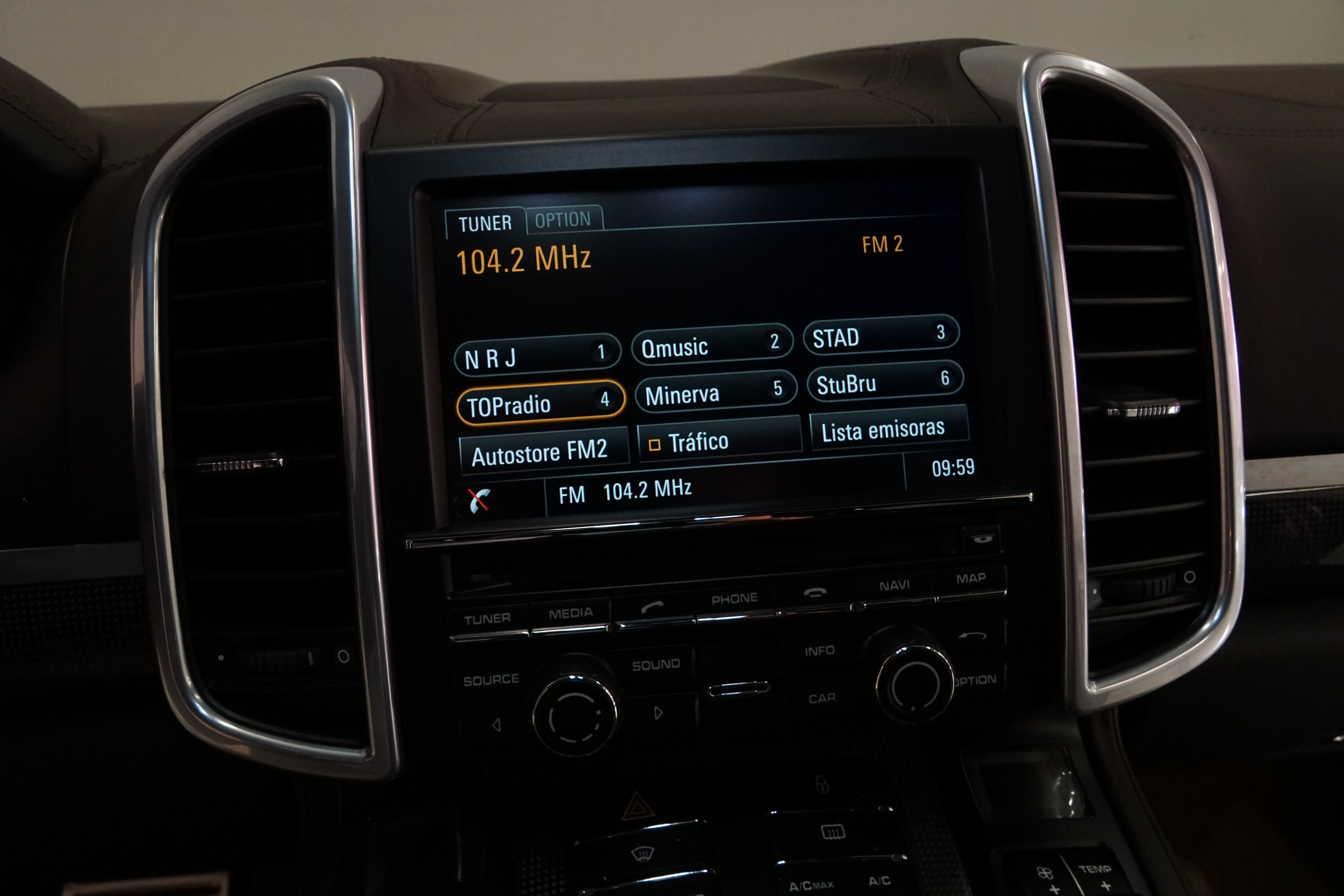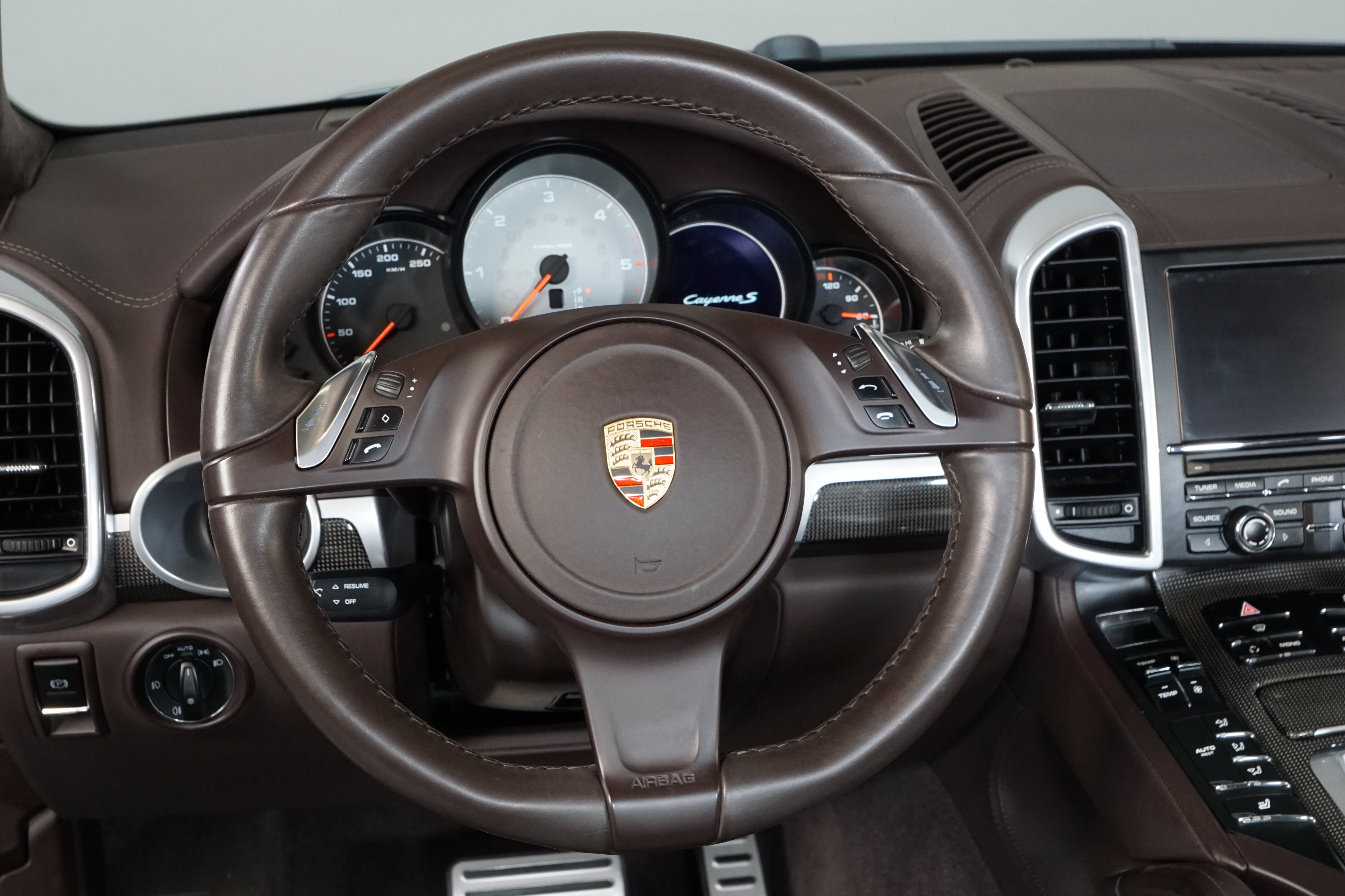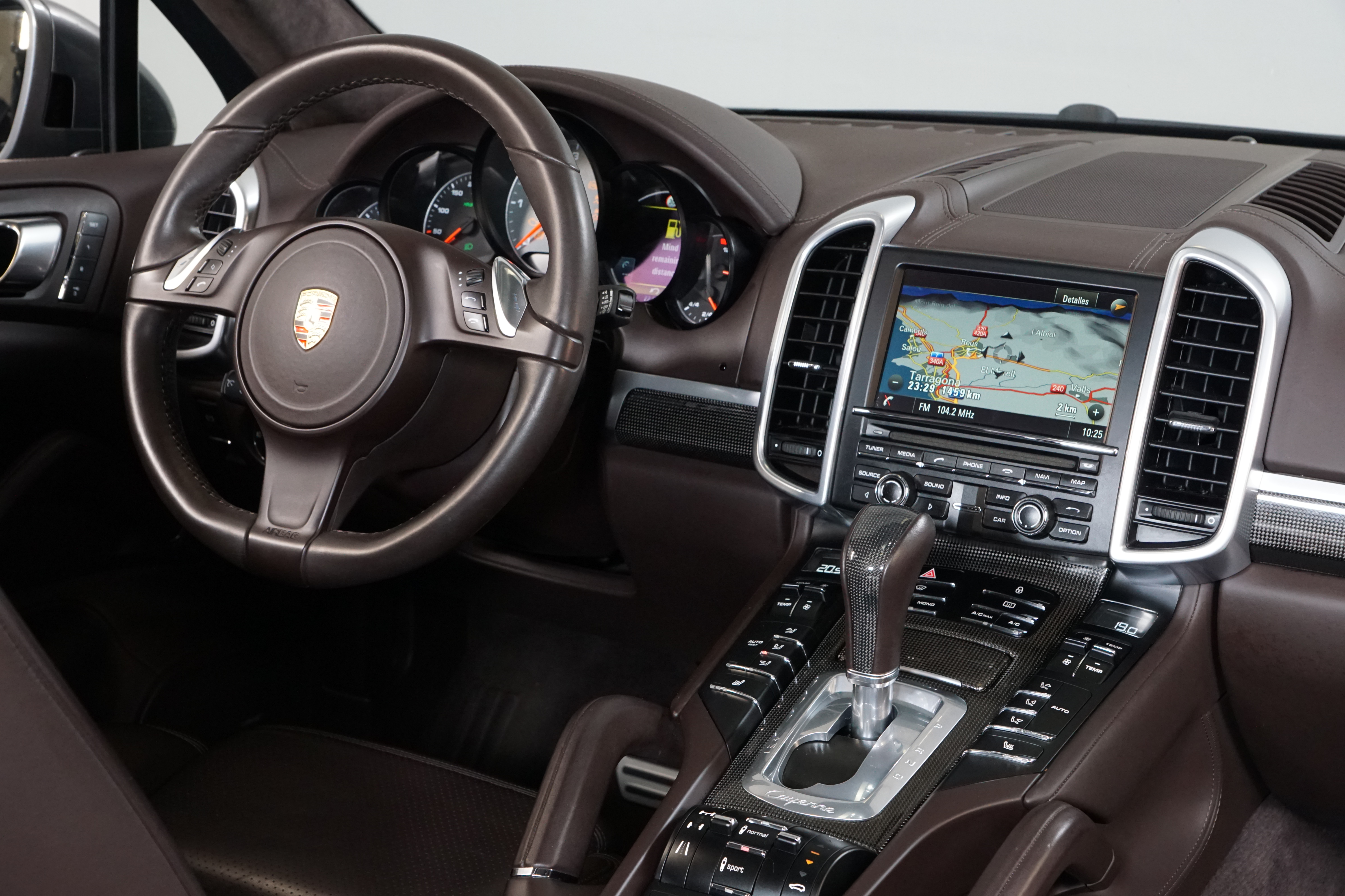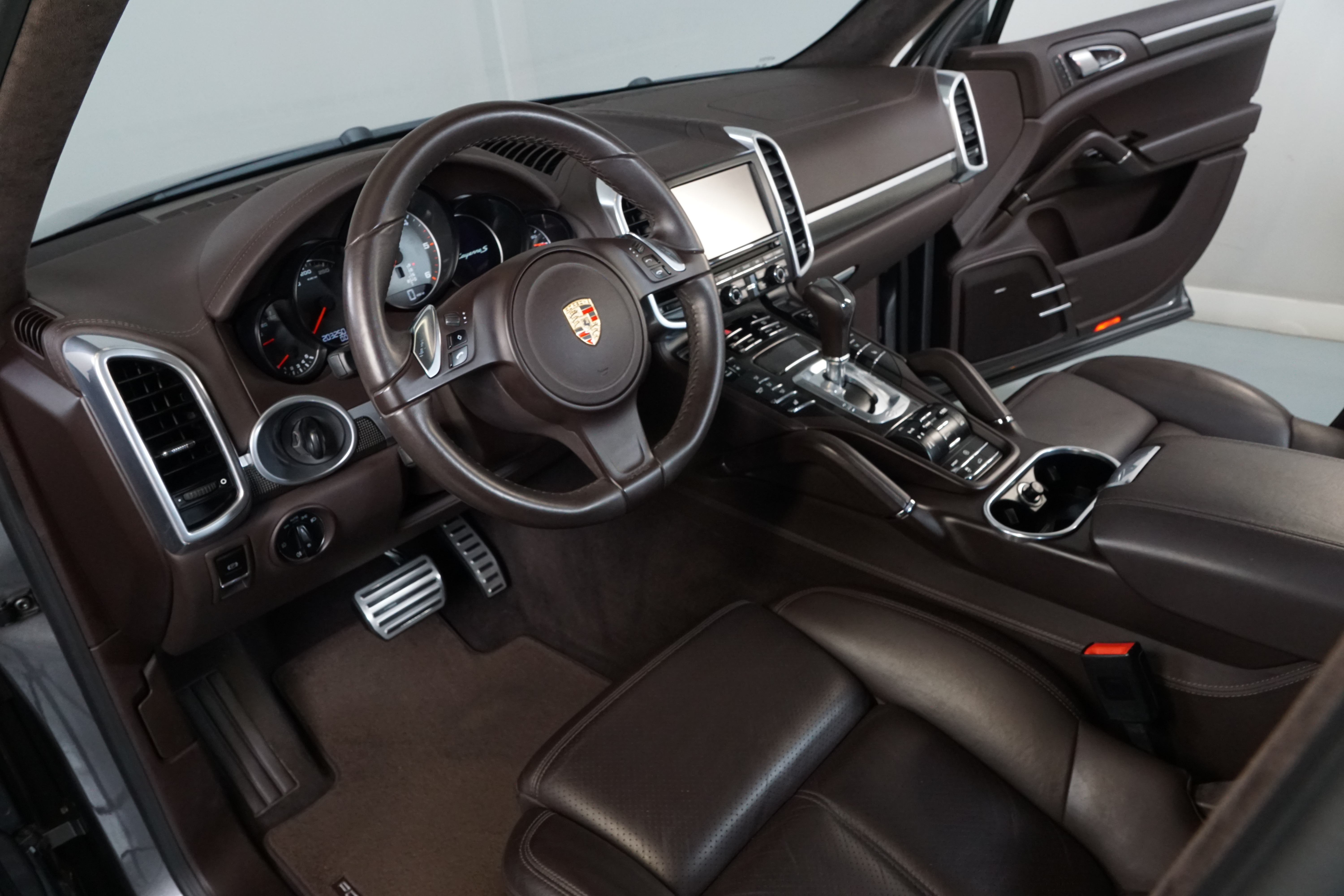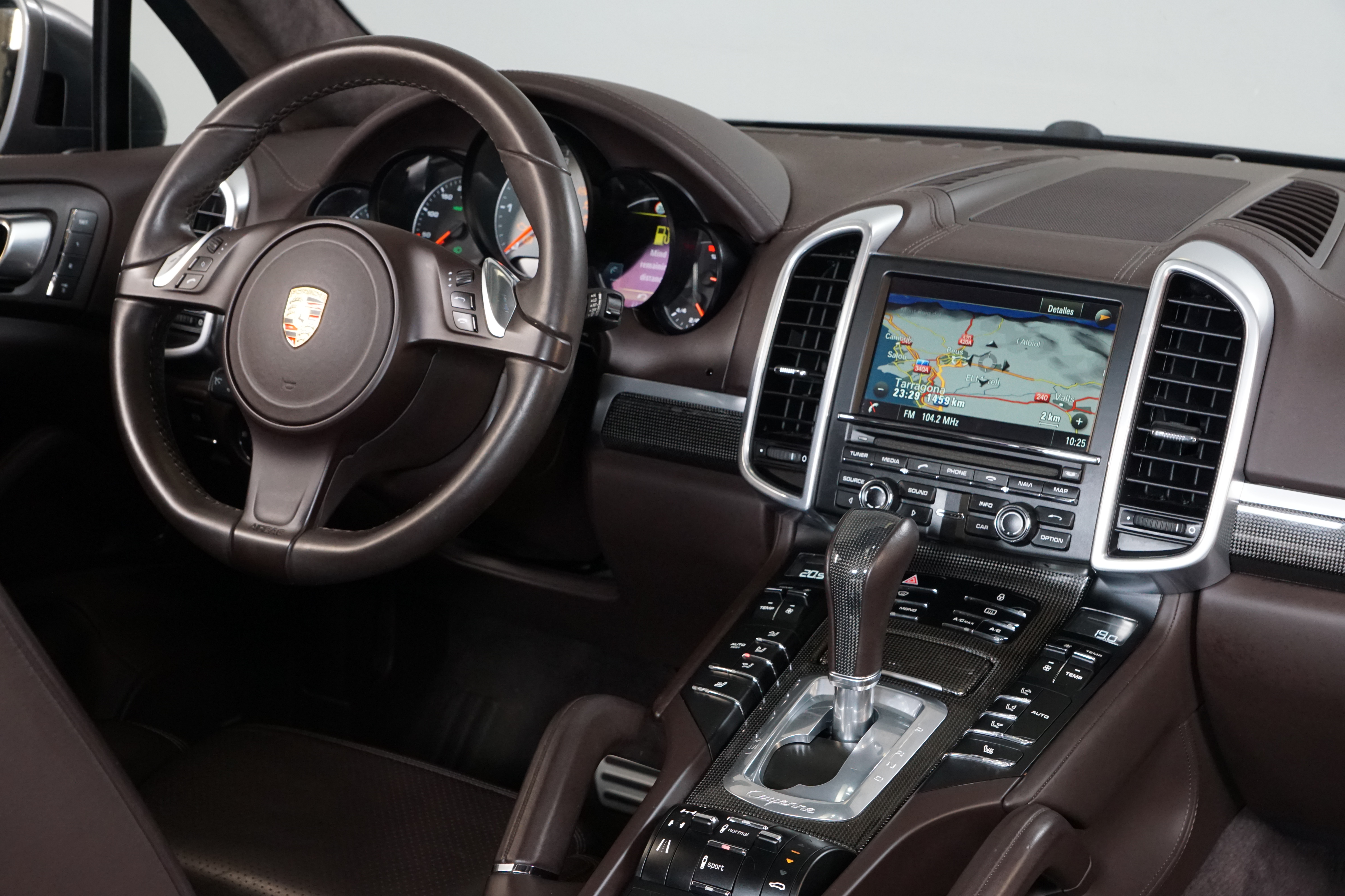 Porsche Cayenne S 4.2 TDi 382 CV V8. Año 28/05/2013. Color Gris Metalizado. Climatizador automático tri-zona, Faros Bi-Xenon incl. Porsche Dynamic Light Sistema (PDLS), Asientos delante regulable eléctricamente, Asistente a la conducción: Asistente de aparcamiento, Dirección asistida Plus (Dependiente de la velocidad), módulo del teléfono para Porsche Communications Management (PCM), Gancho para remolque plegable eléctricamente, Airbag acompañante Desconectable, Airbag conductor/acompañante, Airbag lateral delante ,Sistema de airbag para la cabeza (airbag-cortina), Sistema de Navegación Porsche Communications Management (PCM) con Off-Road - Navegador, Tipo transmisión: Tracción total permanente, Sistema antibloqueo (ABS), Alarma antirrobo, Automático Frenos Diferencial (ABD), Elevalunas eléctric. delante + detrás, Inmovilizador, Ordenador de a bordo, Porsche Stability Management (PSM), Radio CD, Instalación de arranque/parada, Conector-Universal Audio, Ensanchamiento del pasarruedas pintado, Filtro de aire (Filtro de olores), Asientos confort delanteros, Columna de dirección (Volante) regulable, Bujes rueda - Cubiertas Escudo, Porsche de color, Freno de estacionamiento eléctric, Techo Solar Panorámico, interiores totalmente en cuero, Pedales Acero inoxidable, Pinzas del freno "plata" anodizado, Retrovisor exterior esférico derecho/izquierdo, Alfombras Originales Porsche, Depósito combustible: 100 Ltr., Paquete extra luz confor LED, Paquete no fumador, Paquete-exterior, Lavafaros (Equipo lavafaros), Llantas de aleación 10x21 (Cayenne Edición Sport rueda, color carrocería), Retrovisores exteriores plegables eléctricamente y Calefactable, Suspensión neumática electrónico Regulado, Porsche Active Suspension Management (PASM), Suspensión autonivelante, Volante (piel 3 radios) con Multifunción, Pilotos traseros LED, Respaldo del asiento trasero dividido, Encendido automático de luces, Anclajes Isofix para Asiento para niños en Asiento trasero, Caja de cambios automática - Tiptronic (8 velocidades), Cierre centralizado con mando a distancia, Control de crucero (Tempomat), Portón trasero con automático sistema de apertura y cierre, Limpiaparabrisas con Sensor de lluvia, Luces antiniebla, Lunas tintadas, Luz de día LED, Acabado interior: Partes de piel.
