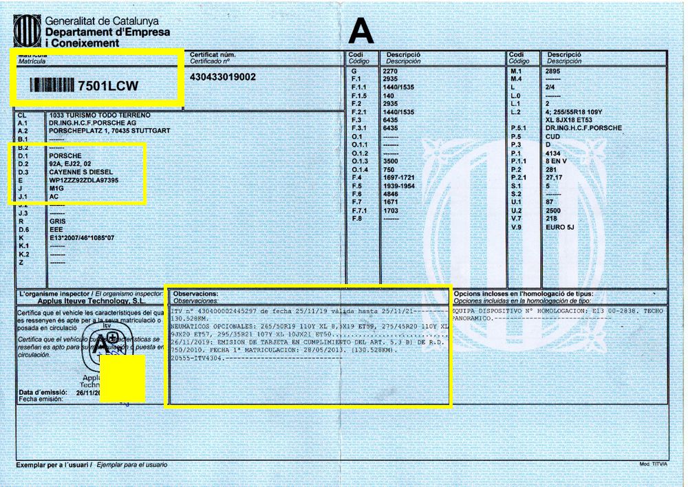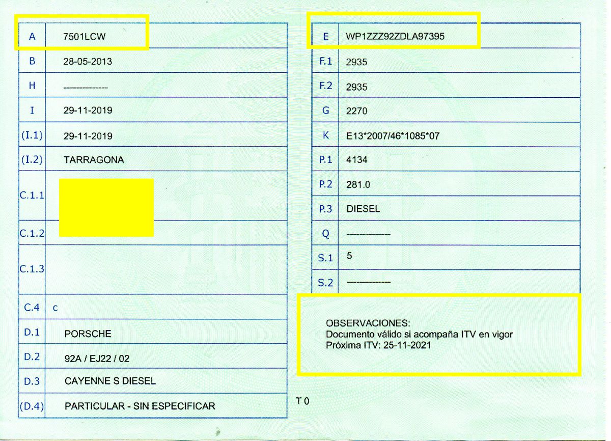 Se Facilita Matricula y Numero de Bastidor para Consultas en la DGT o CARFAX.