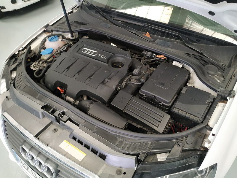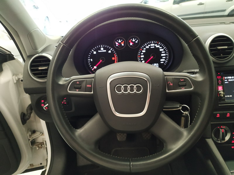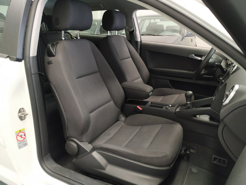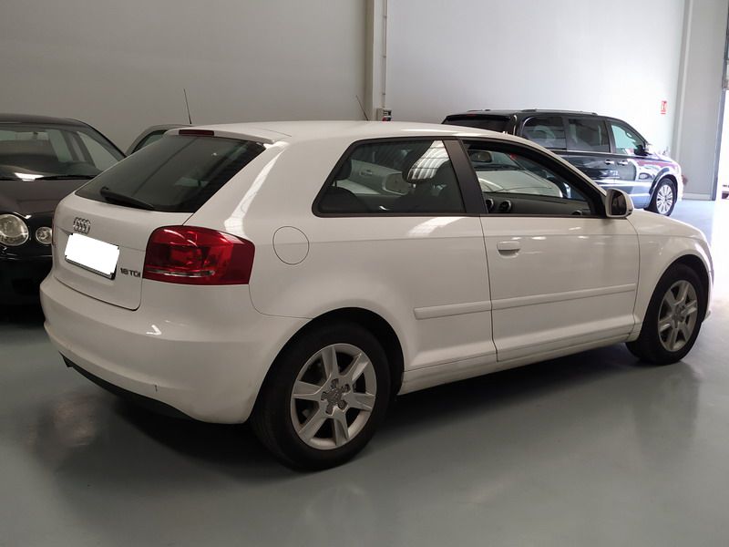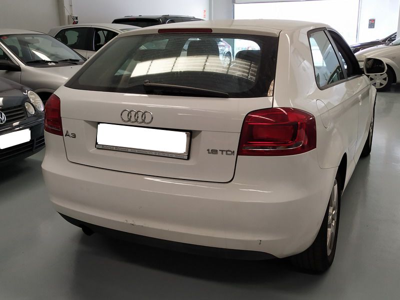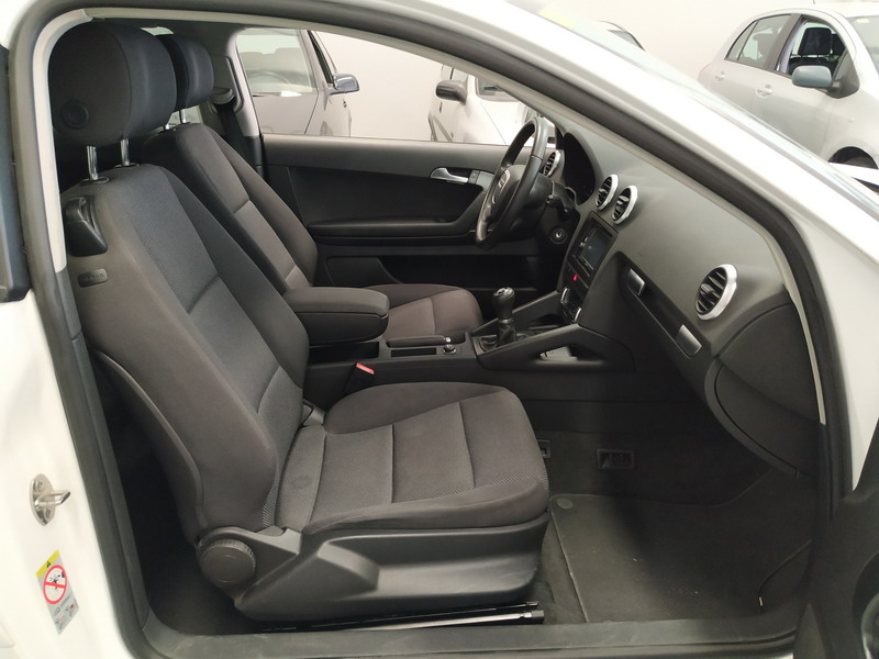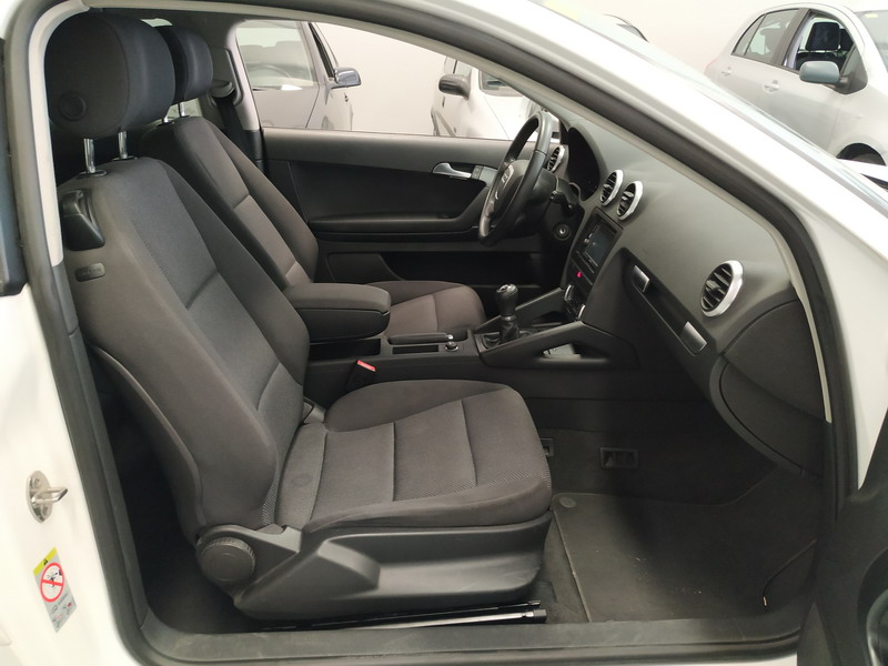 Audi A3 1.6 TDi 105 CV Attraction. Año 03/11/2010. Color Blanco. 3 Puertas. Climatizador Bi-Zona, Sistema antibloqueo (ABS), Programa electrónico de estabilidad (ESP). 8 Airbags, Start/Stop, Llantas 16", Sistema información conductor (FIS), Elevalunas Eléctricos, Cierre Centralizado con Mando, Radio/CD+MP3 Conector-USB Audi Exclusive, Faros Antiniebla, Volante de Cuero Regulable, Retrovisores Eléctricos, Dirección Asistida, Reposabrazos central delantero.
