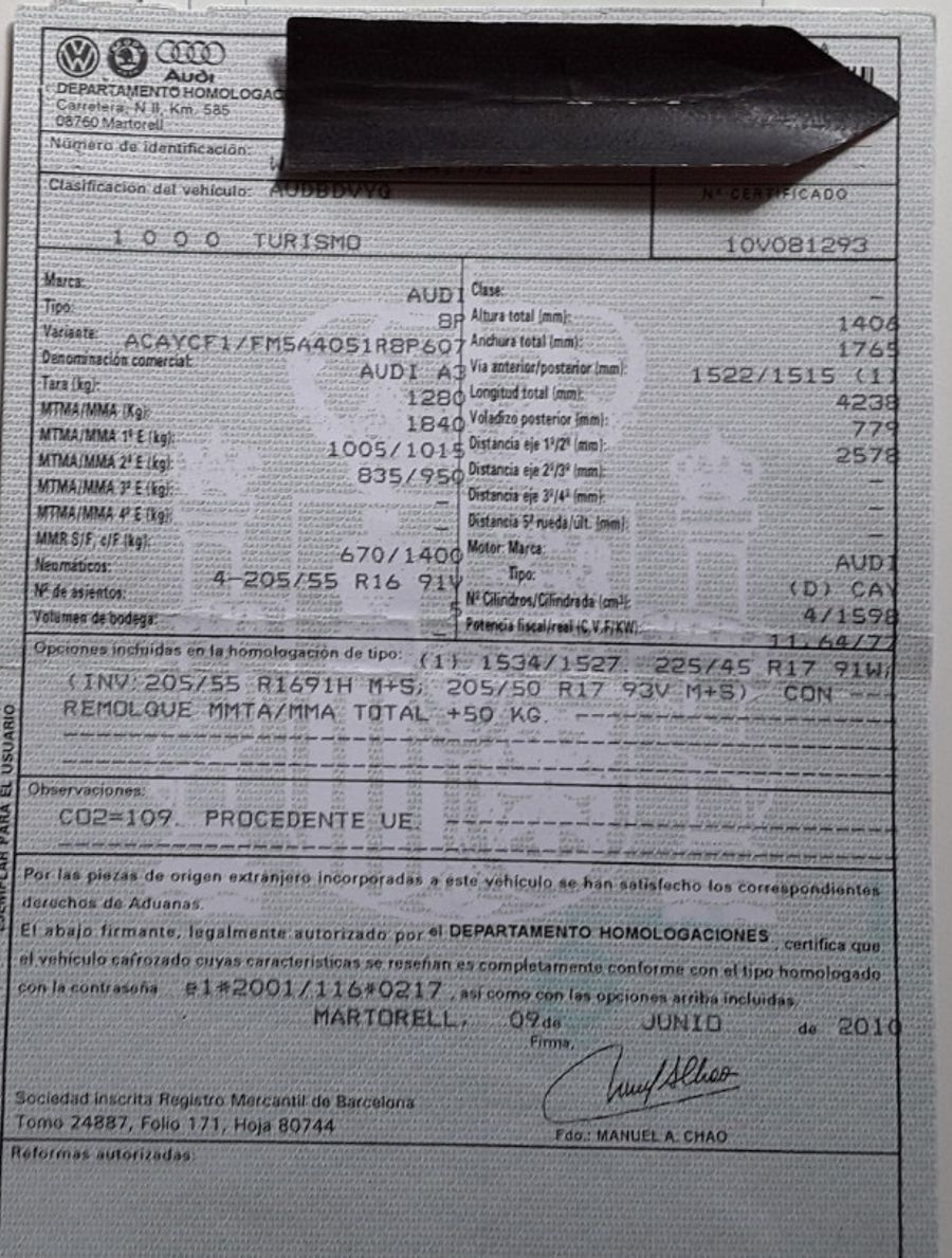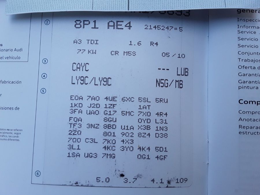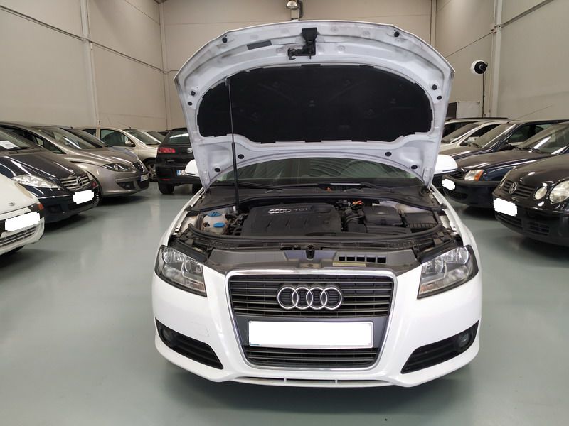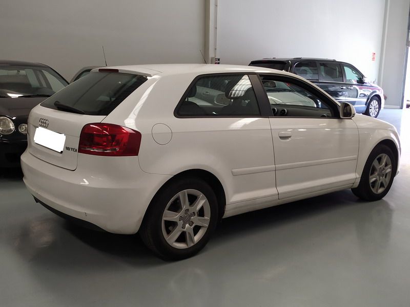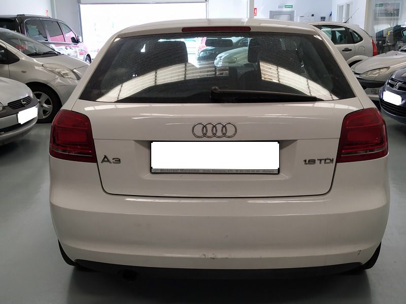 Audi A3 1.6 TDi 105 CV Attraction. Año 03/11/2010. Color Blanco. 3 Puertas. Climatizador Bi-Zona, Sistema antibloqueo (ABS), Programa electrónico de estabilidad (ESP). 8 Airbags, Start/Stop, Llantas 16", Sistema información conductor (FIS), Elevalunas Eléctricos, Cierre Centralizado con Mando, Radio/CD+MP3 Conector-USB Audi Exclusive, Faros Antiniebla, Volante de Cuero Regulable, Retrovisores Eléctricos, Dirección Asistida, Reposabrazos central delantero.