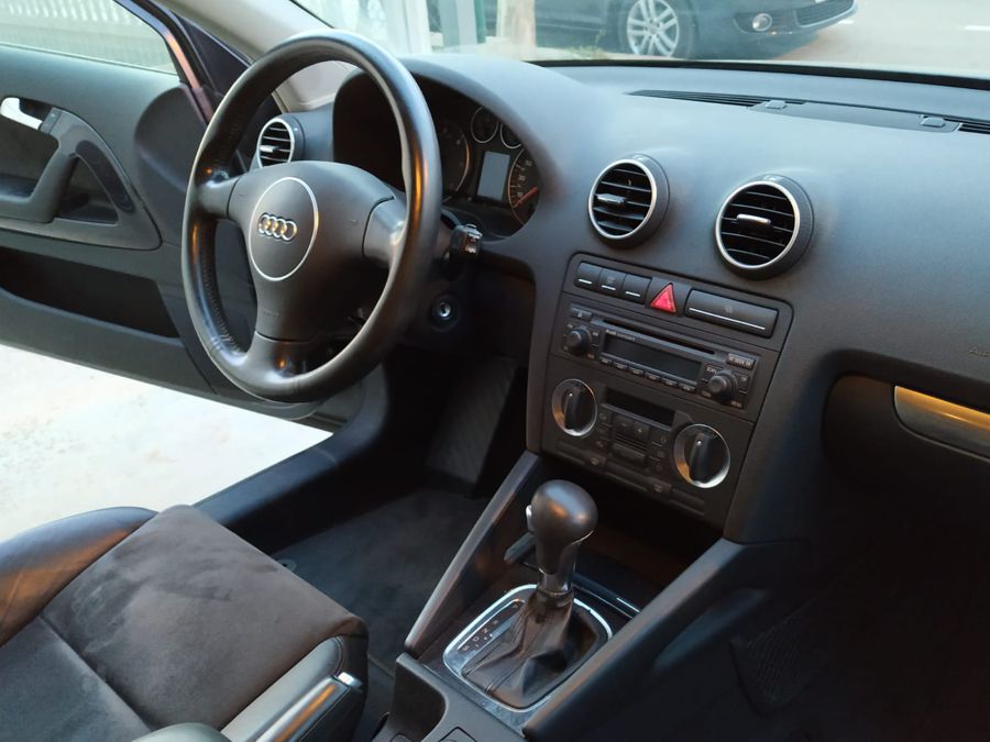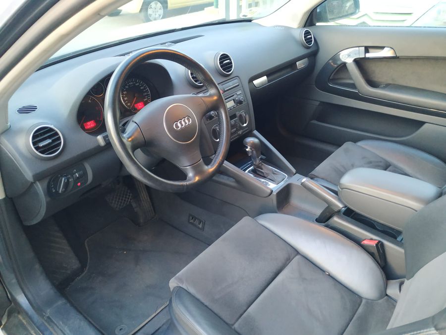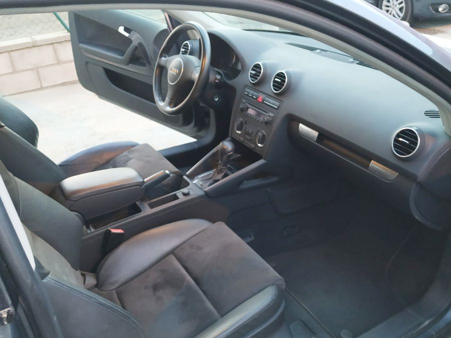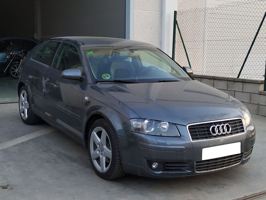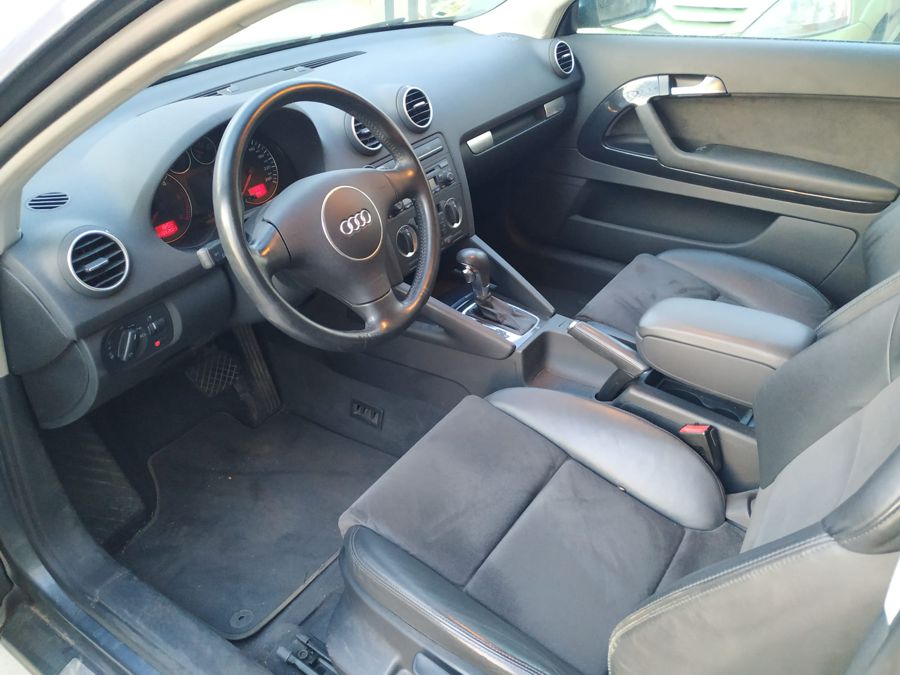 Audi A3 2.0 TDi 140 CV DSG Ambition. 3 Puertas, Color Gris Delfín Metalizado. Año 11/02/2005. Climatizador Bi-Zona, Sistema antibloqueo (ABS), Programa electrónico de estabilidad (ESP), 6 Airbags, Asientos Deportivos de Cuero/Alcantara, Faros de Xenón y Antiniebla, Sistema de audio Concert (Radio/Lector de CD, 8 Altavoces), Llantas 17", Apoyabrazos Central, Volante Sport de Cuero Regulable en Altura, Ordenador de Viaje. Muy Buen Estado.