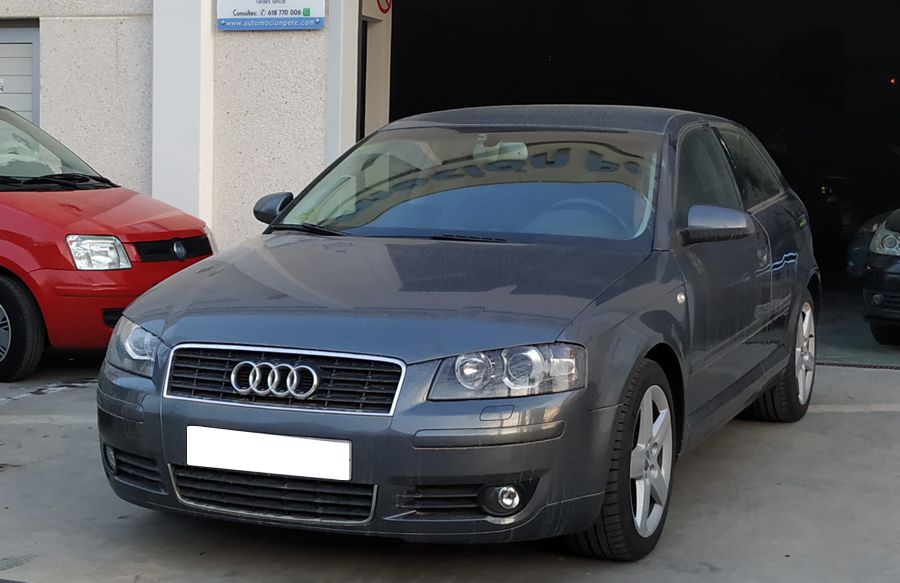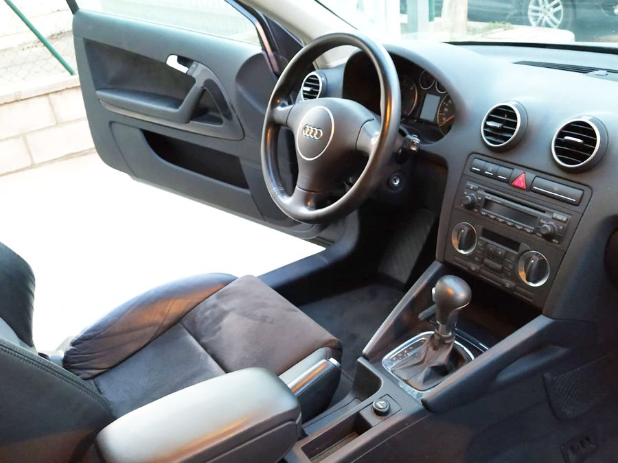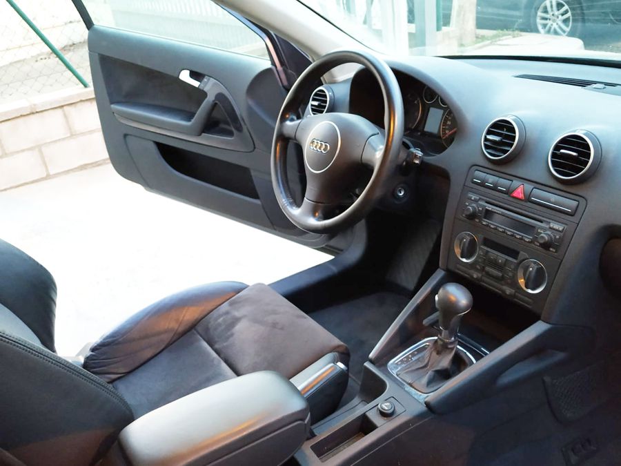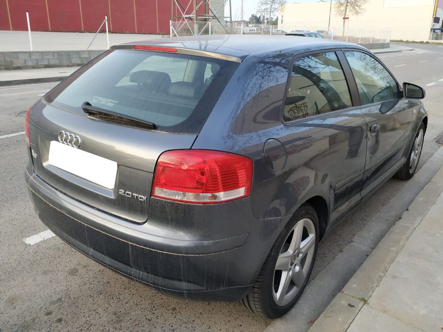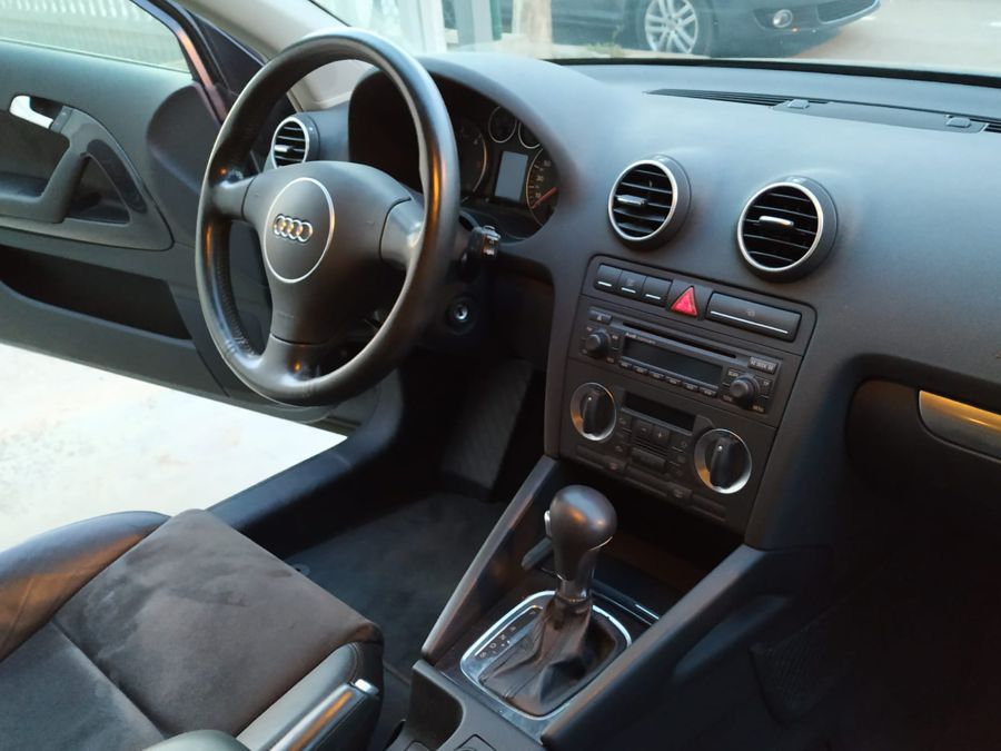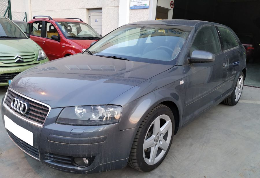 Audi A3 2.0 TDi 140 CV DSG Ambition. 3 Puertas, Color Gris Delfín Metalizado. Año 11/02/2005. Climatizador Bi-Zona, Sistema antibloqueo (ABS), Programa electrónico de estabilidad (ESP), 6 Airbags, Asientos Deportivos de Cuero/Alcantara, Faros de Xenón y Antiniebla, Sistema de audio Concert (Radio/Lector de CD, 8 Altavoces), Llantas 17", Apoyabrazos Central, Volante Sport de Cuero Regulable en Altura, Ordenador de Viaje. Muy Buen Estado.