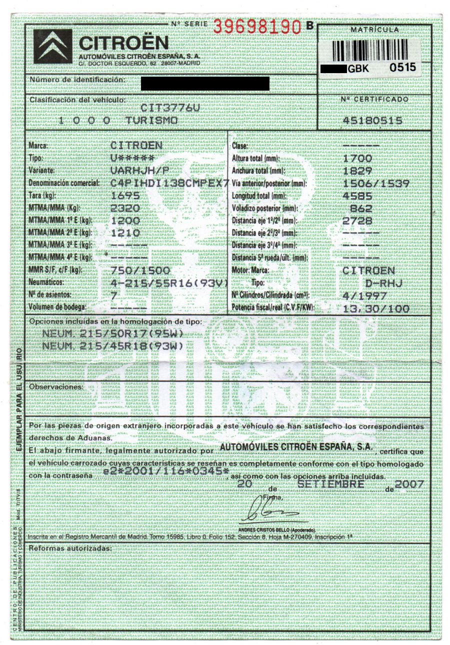 Citroen C4 Grand Picasso 2.0 HDi 138 CV Exclusive, 7 Plazas, Automatico/Secuencial. Año 08/02/2008. Color Gris Plata Metalizado. Climatizador Bi-Zona incluido en las Plazas Traseras, 8 Airbags, ABS, ESP, Techo Solar Panorámico, Llantas 17", Ordenador de Viaje, Faros BI-Xenón, Sensor de Luces y de Lluvia, 4 Elevalunas Eléctricos, Cierre Centralizado con Mando, Retrovisores Eléctricos y Plegables, Control y Limitador de Velocidad, Radio/CD+MP3+Aux, Bluetooth Parrot, Faros Antiniebla, Luneta Trasera Practicable, Sensor de Parking Trasero (PDC), Cristales Tintados y Cortinas Traseras Originales Citroen, Asientos Traseros con ISOFIX, Muy Equipado.
