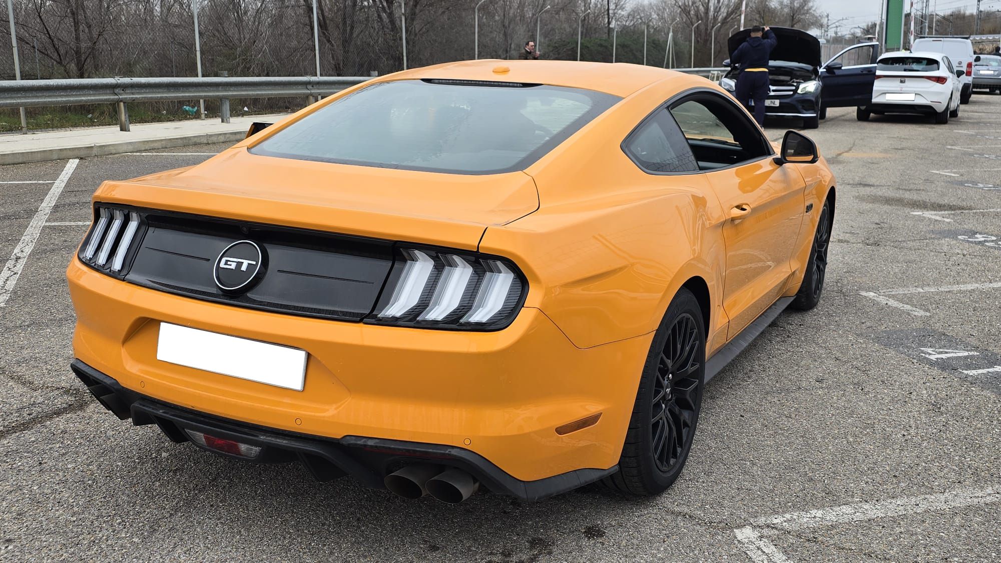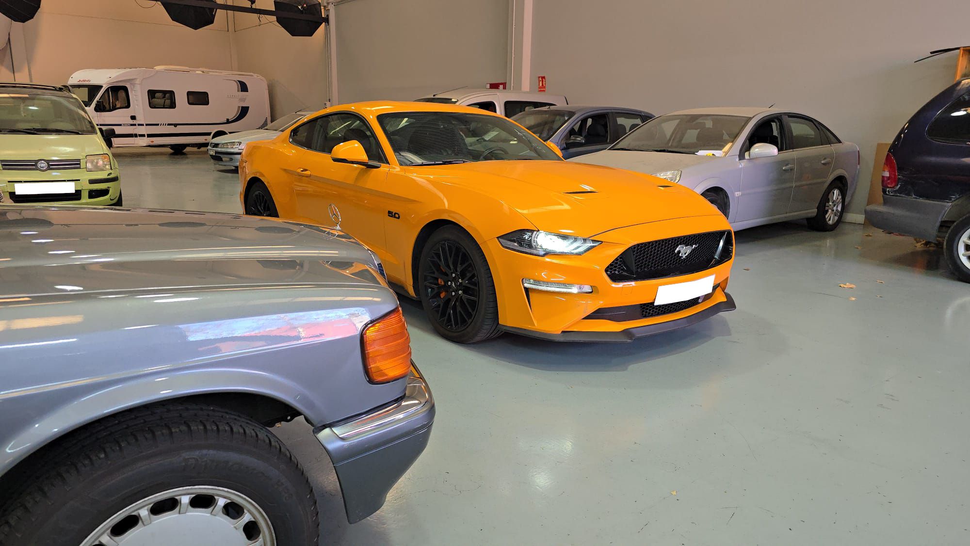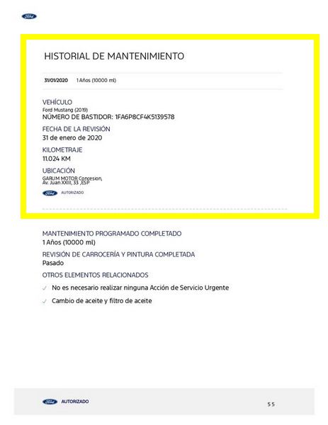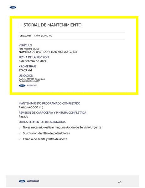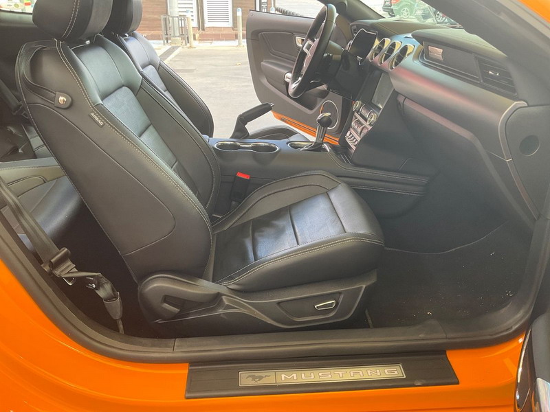Ford Mustang 2.0 Ti-VCT V8 GT 450 CV 10 Velocidades. Año 21/02/2019.Pintura especial Tropical-Orange. Climatizador automático 2-zonas, Asientos delanteros de Cuero climatizados con Calefacción, Cámara de marcha atrás, Sistema de asistencia para aparcamiento trasero, Dirección asistida eléctrica, Sistema de control por voz y Instalación Bluetooth, Preinstalación Teléfono móvil con Bluetooth-/USB-interfaz, Sistema audio-navegador Ford SD (con Ford SYNC) & Premium Sound Sistema, Ford SYNC 3 con Navegador, 8 Airbags, Diferencial de deslizamiento limitado, Diferencial autoblocante, ESP Programa electrónico de estabilidad (AdvanceTrac), Programa electrónico de estabilidad (ESP), Control de crucero adaptable (Control de crucero adaptable / ACC), Ordenador de a bordo, Alarma antirrobo con Vigilancia del habitáculo interior adicional con suministro eléctrico independiente, Sistema de sonido Bang & Olufsen Play, Audiosystem: Radio / CD-Player, Sistema antibloqueo de frenos (ABS), Asistente a la conducción: sistema de seguridad SYNC con automático Aviso de socorro, Tapicería asientos: cuero Premium, Caja de cambios automática - Modelo: 10R80 (10-marchas), Retrovisor exterior regulable eléctricamente y calefactable, Tubo de potencia doble Sistema de escape, Luneta trasera calefactable, Palanca del freno de mano cuero, Sistema de escape con Control de la válvula de mariposa, Volante calefactable, 12 Altavoces, Pintura especial Tropical-Orange, Tensor del cinturón, Faro LED, Mandos audio en volante, Tren de rodaje con Regulación amortiguador (MagneRide), Asistente a la conducción: Asistente de subidas (Hill-Holder), Asistente a la conducción: Sistema pre-colisión, Sistema-KeyFree, Luces antiniebla LED, Función encendido: Power KeyFree, Sistema de asistencia al conductor: asistencia a la frenada de emergencia, Parachoques detrás Diseño Sport con Difusor, Lavafaros (Equipo lavafaros), Volante (Cuero), Sistema control presión neumáticos, Llantas de aleación delante / detrás 9x19 / 9 5x19 (10 radios Y-Design negro brillante), Salpicadero Parte superior piel, Paquete Premium 2, Sistema Line-Lock, Pedales Aluminio, Paquete Performance, My Key (2. llaves del vehículo programable), Luz del suelo en Retrovisor exterior, Kit reparación de neumáticos, Distribuidor eléctrónico de frenada, Conexión AUX-IN, Intermitente en Retrovisor exterior integrado, Limpiaparabrisas con Sensor de lluvia, Cierre centralizado con Mando a distancia.