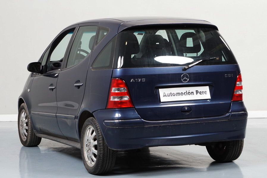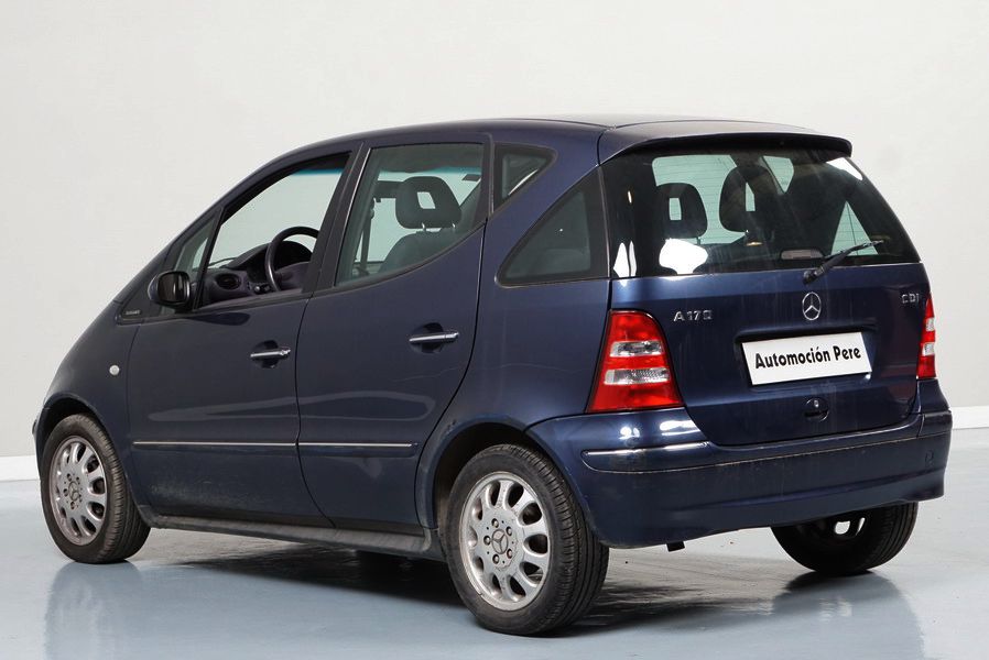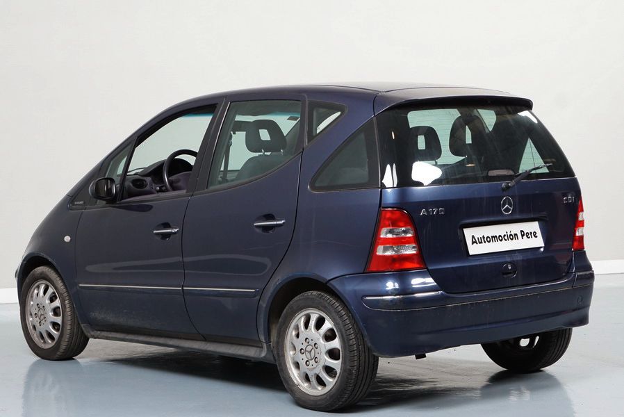 Mercedes Benz A170 CDi 90CV Elegance. Año 15/03/2002. Color Azul Metalizado. 5 Puertas. Climatizador, ABS, ASR, 4 Elevalunas Eléctricos, Cierre Centralizado, Radio/Cd, Dirección Asistida, Llantas, Faros Antiniebla, Apoyabrazos Central, Retrovisores Eléctricos.