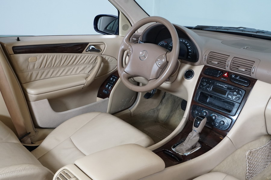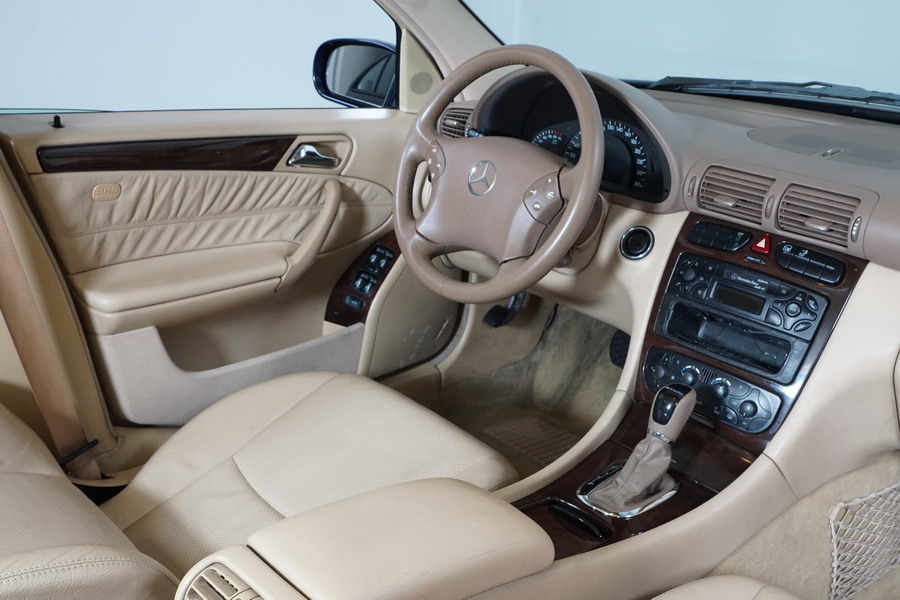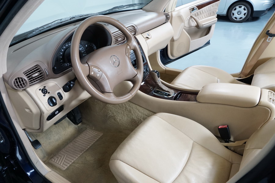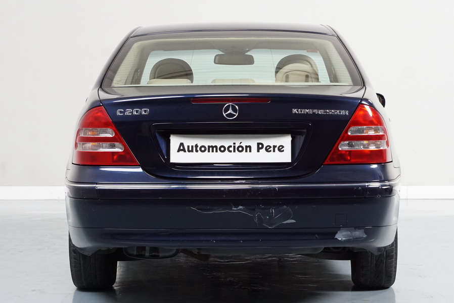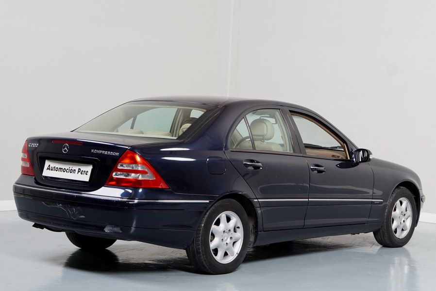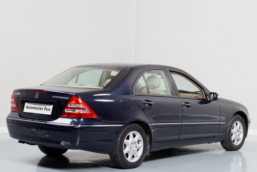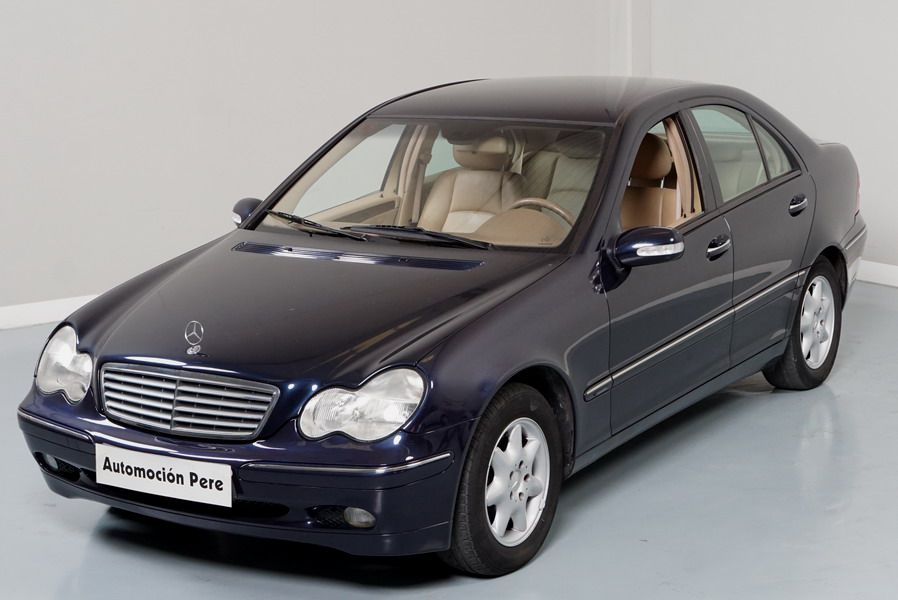 Mercedes Benz C200 Kompressor Elegance 163 CV automático/Secuencial. Año 12/01/2001. Color Azul Marino Metalizado, Climatizador, ABS, ESP, 6 Airbags, Asientos de Cuero Beige, 4 Elevalunas Eléctricos, Cierre Centralizado con Mando, Radio/CD, Dirección Asistida, Apoyabrazos Centrales Delantero y Trasero, Llantas, Faros Antiniebla, Ordenador de Viaje, Volante de Cuero Multifuncional, Muy Buen Estado.