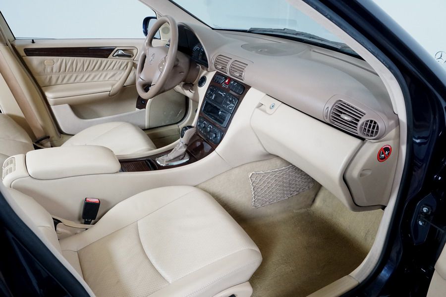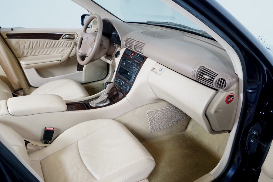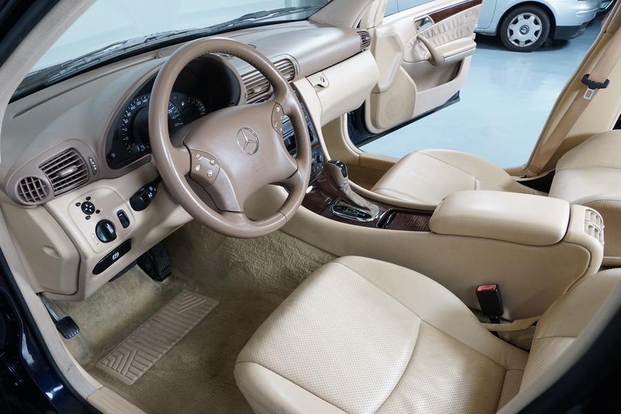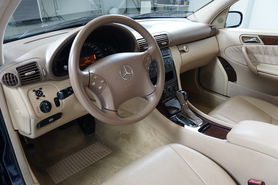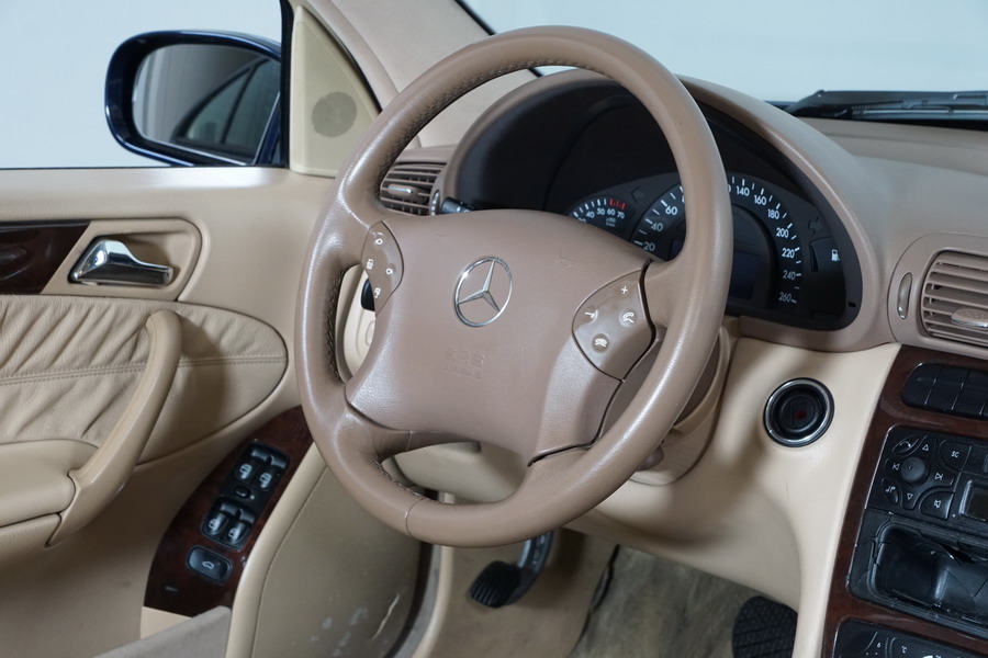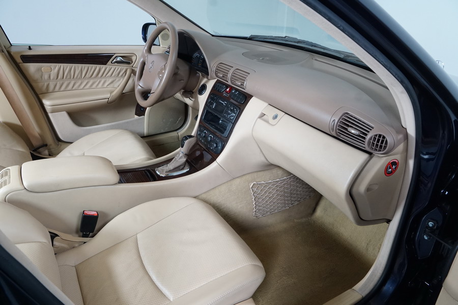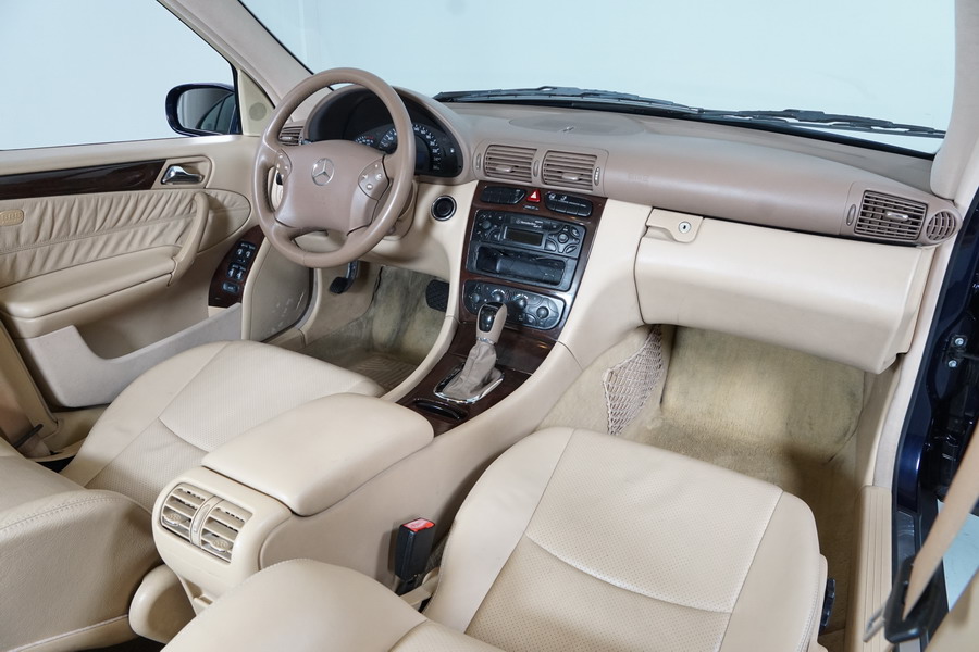 Mercedes Benz C200 Kompressor Elegance 163 CV automático/Secuencial. Año 12/01/2001. Color Azul Marino Metalizado, Climatizador, ABS, ESP, 6 Airbags, Asientos de Cuero Beige, 4 Elevalunas Eléctricos, Cierre Centralizado con Mando, Radio/CD, Dirección Asistida, Apoyabrazos Centrales Delantero y Trasero, Llantas, Faros Antiniebla, Ordenador de Viaje, Volante de Cuero Multifuncional, Muy Buen Estado.