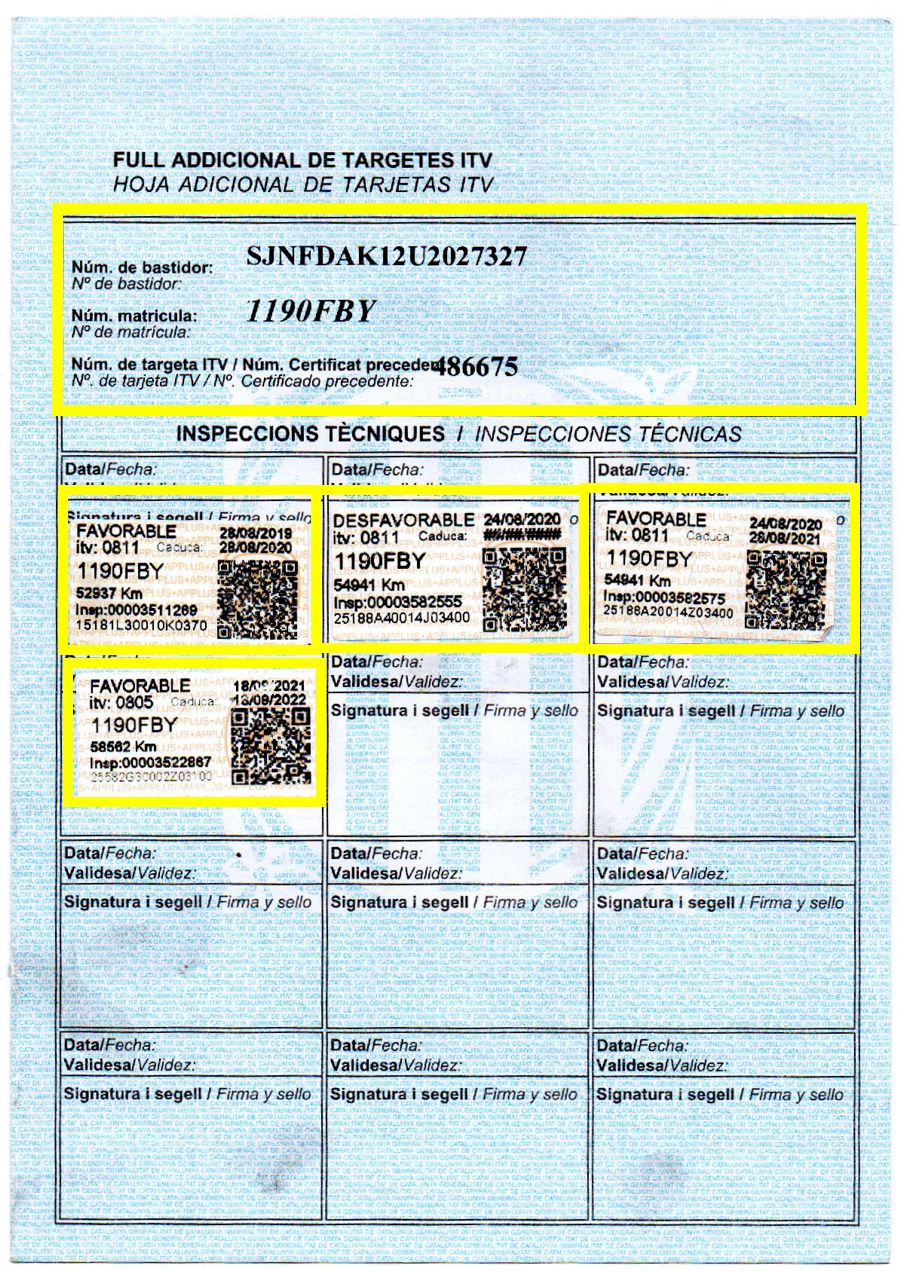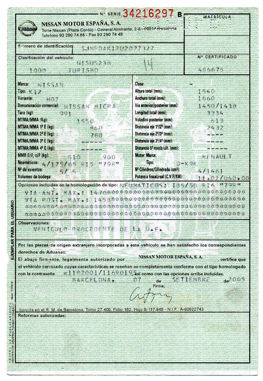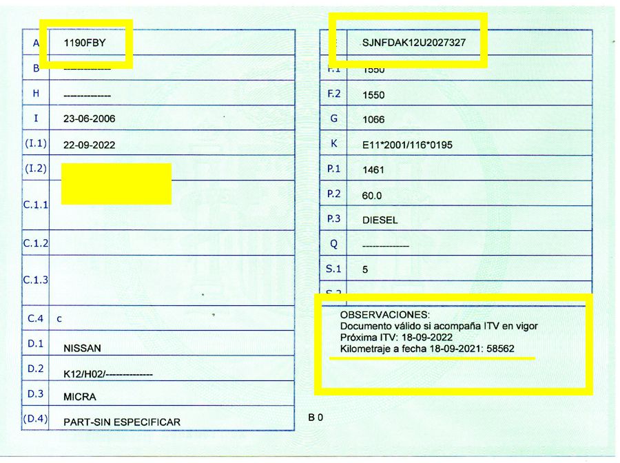 Se Facilita Matricula y Numero de Bastidor para Consultas en la DGT o CARFAX.