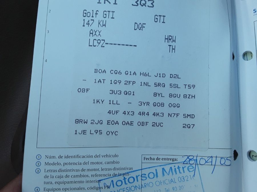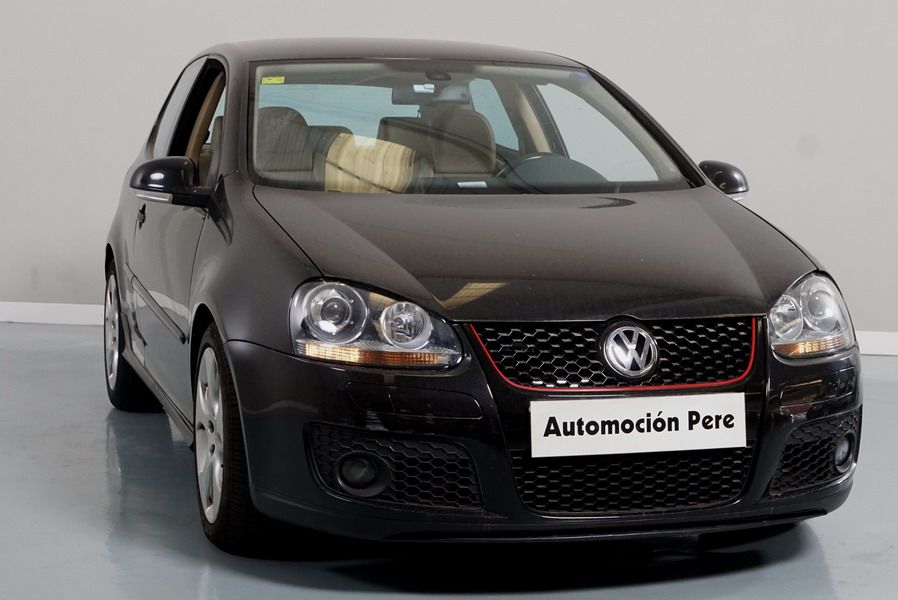 Volkswagen Golf 2.0 TFSi GTi 200 CV Turbo Cambio DSG/6. Color Negro Metalizado. 3 Puertas. Año 26/04/2005. Climatizador Bi-Zona, ABS, ESP, 8 Airbags, Faros Bi-Xenón y Antiniebla, Asientos de Cuero Deportivos Color Beige con Calefacción, Ordenador de Viaje, Radio/CD+MP3, Elevalunas Eléctricos, Cierre Centralizado con Mando, Retrovisores Retractiles, Tren de rodaje deportivo, Volante Sport de Cuero Multifuncional, Sensor de Luces, Control y Limitador de Velocidad (Tempomat). Muy Equipado.