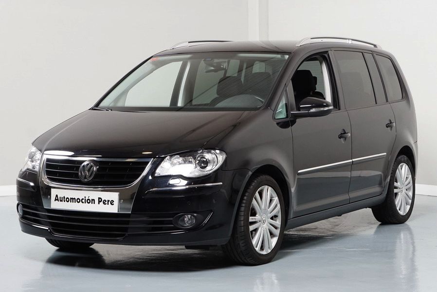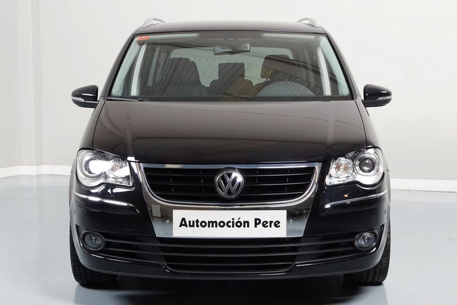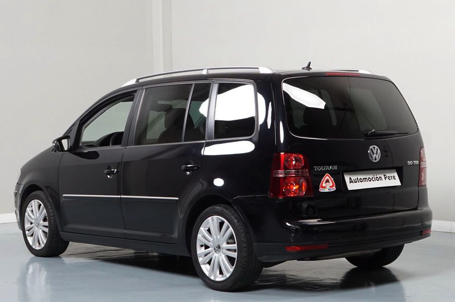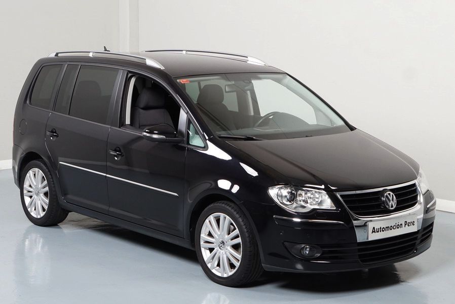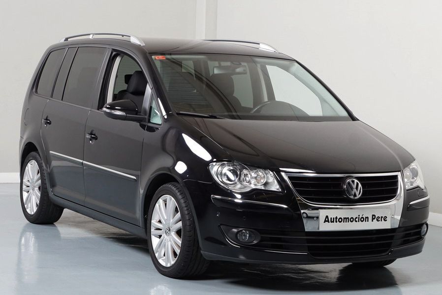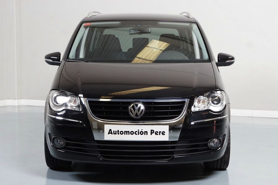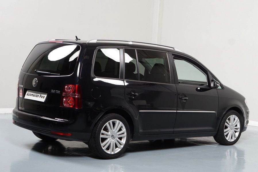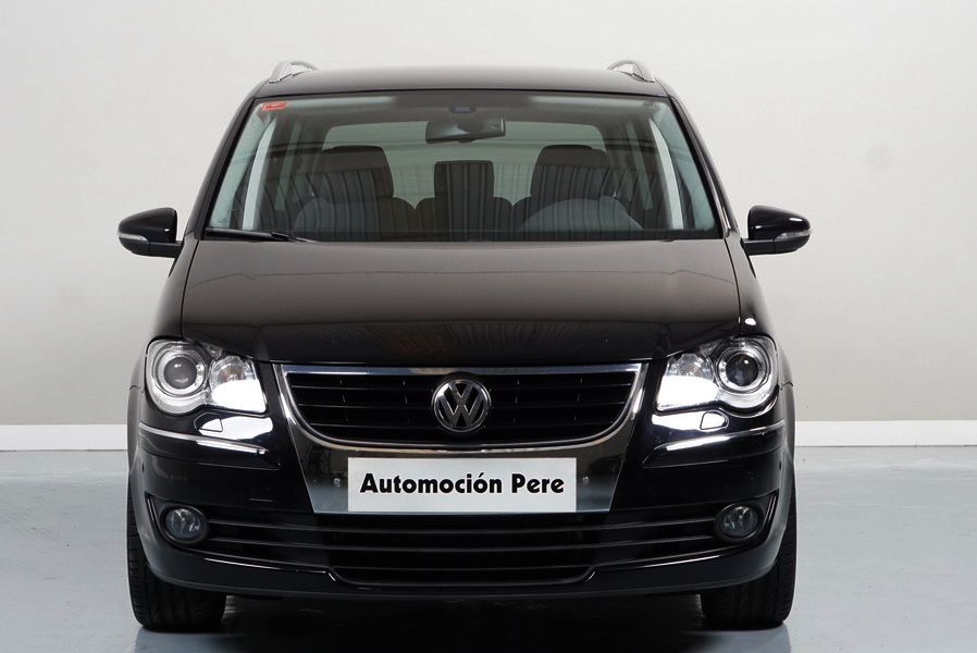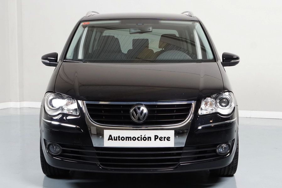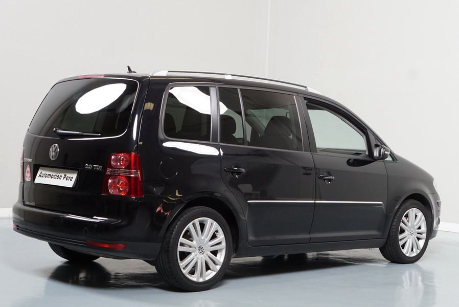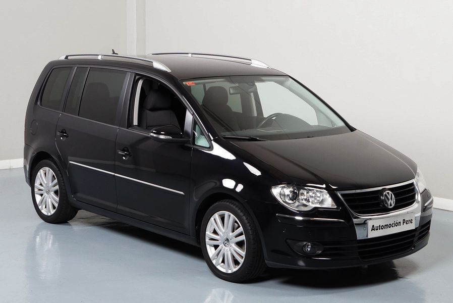Volkswagen Touran 2.0 TDi 140 CV 6 Vel Sport. Año 04/05/2010. Color Negro Metalizado. Aire acondicionado Climatronic 2-zonas, Sistema antibloqueo (ABS), Programa electrónico de estabilidad (ESP), 10 Airbags, Llantas 17", Faros Bi-Xenon con luz de curva dinámica, Sensores de distancia para aparcamiento, Sistema de audio RCD 510 (Radio/Cargador de CD's 6 posiciones, 8 Altavoces), Alarma antirrobo con Protección del habitáculo interior, Sensores de distancia para aparcamiento (Delantero y Trasero), Asientos delanteros regulables en altura, Faros Antiniebla, Barras en el Techo, Volante de Cuero Multifuncional, Control de Velocidad (Tempomat) Ordenador de Viaje, Apoyabrazos Central, Cristales tintados originales Volkswagen. Muy Buen Estado. Pocos Kms. Revisiones Selladas.