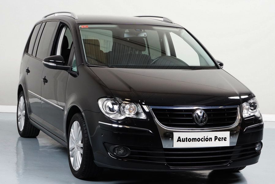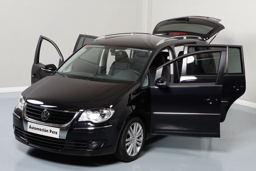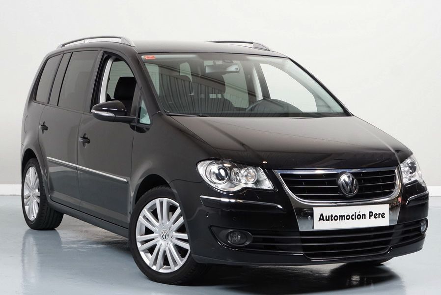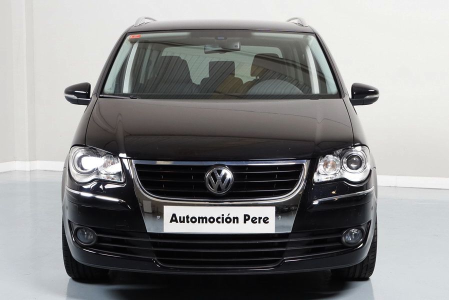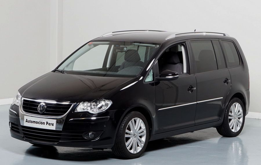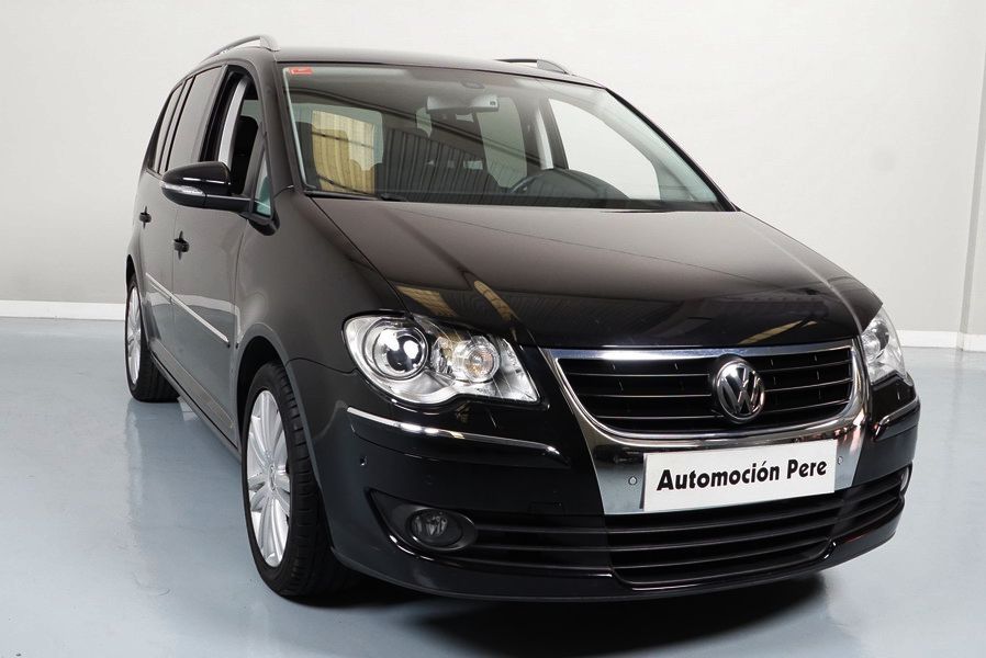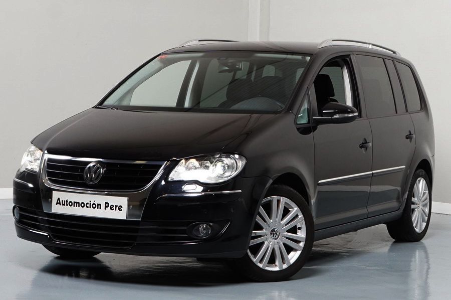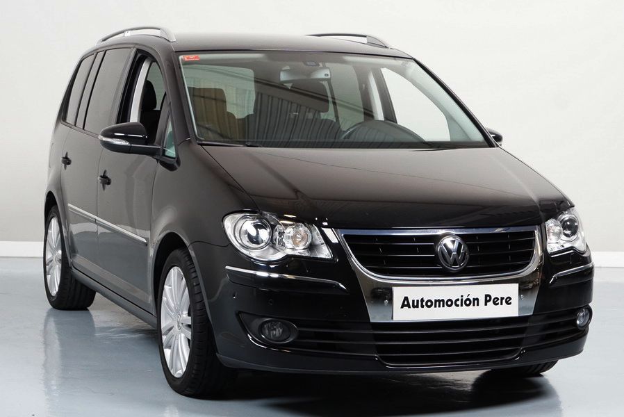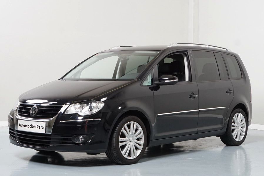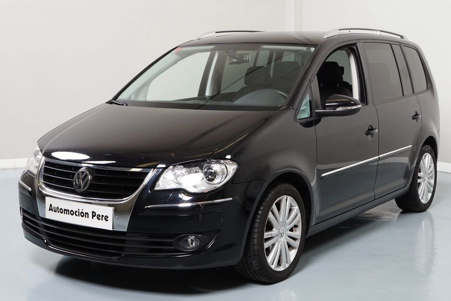 Volkswagen Touran 2.0 TDi 140 CV 6 Vel Sport. Año 04/05/2010. Color Negro Metalizado. Aire acondicionado Climatronic 2-zonas, Sistema antibloqueo (ABS), Programa electrónico de estabilidad (ESP), 10 Airbags, Llantas 17", Faros Bi-Xenon con luz de curva dinámica, Sensores de distancia para aparcamiento, Sistema de audio RCD 510 (Radio/Cargador de CD's 6 posiciones, 8 Altavoces), Alarma antirrobo con Protección del habitáculo interior, Sensores de distancia para aparcamiento (Delantero y Trasero), Asientos delanteros regulables en altura, Faros Antiniebla, Barras en el Techo, Volante de Cuero Multifuncional, Control de Velocidad (Tempomat) Ordenador de Viaje, Apoyabrazos Central, Cristales tintados originales Volkswagen. Muy Buen Estado. Pocos Kms. Revisiones Selladas.