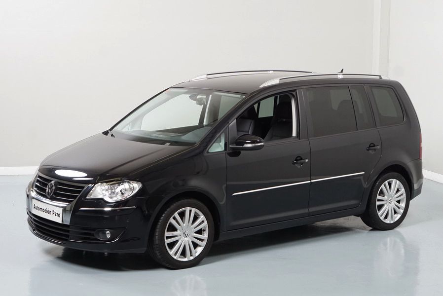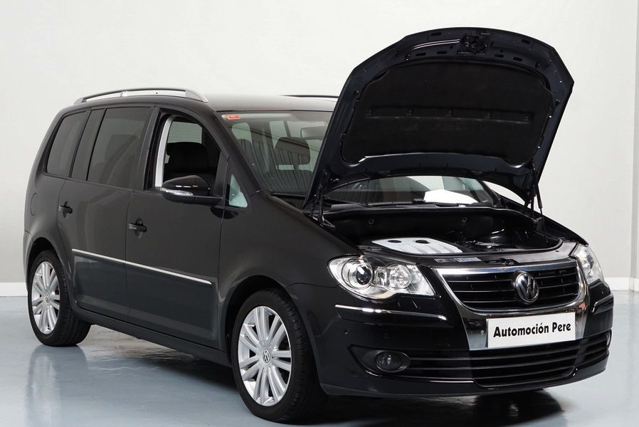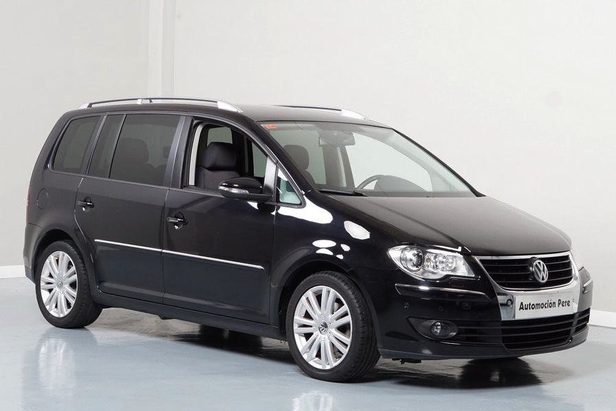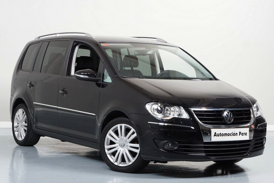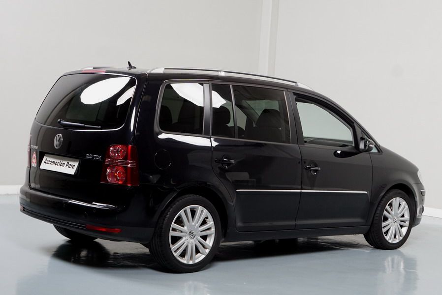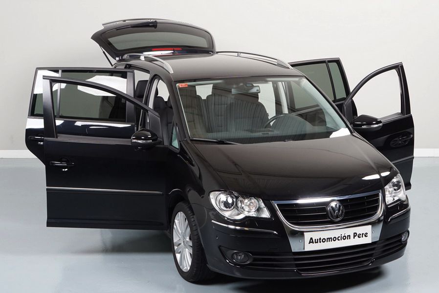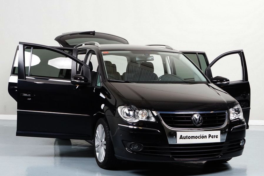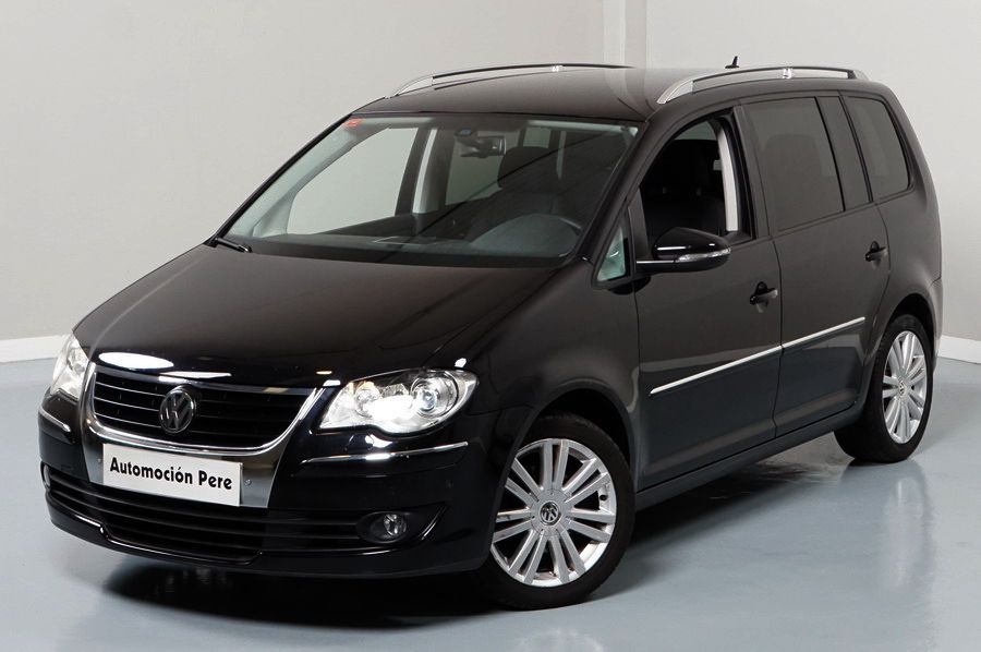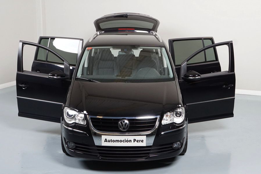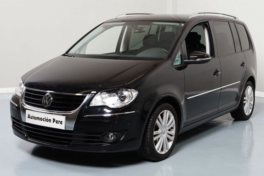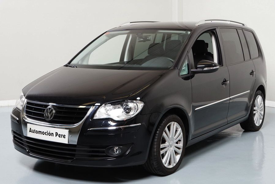Volkswagen Touran 2.0 TDi 140 CV 6 Vel Sport. Año 04/05/2010. Color Negro Metalizado. Aire acondicionado Climatronic 2-zonas, Sistema antibloqueo (ABS), Programa electrónico de estabilidad (ESP), 10 Airbags, Llantas 17", Faros Bi-Xenon con luz de curva dinámica, Sensores de distancia para aparcamiento, Sistema de audio RCD 510 (Radio/Cargador de CD's 6 posiciones, 8 Altavoces), Alarma antirrobo con Protección del habitáculo interior, Sensores de distancia para aparcamiento (Delantero y Trasero), Asientos delanteros regulables en altura, Faros Antiniebla, Barras en el Techo, Volante de Cuero Multifuncional, Control de Velocidad (Tempomat) Ordenador de Viaje, Apoyabrazos Central, Cristales tintados originales Volkswagen. Muy Buen Estado. Pocos Kms. Revisiones Selladas.