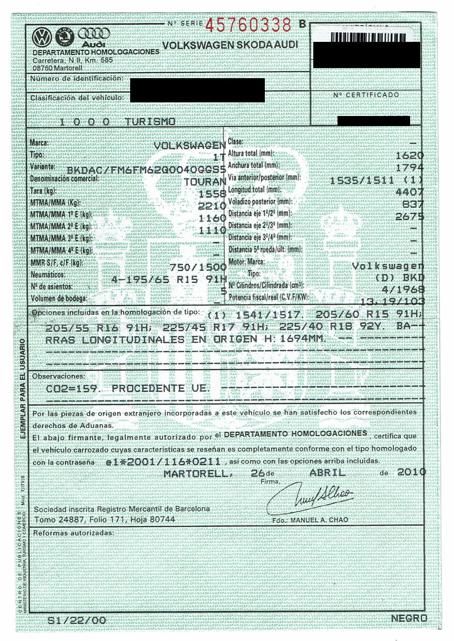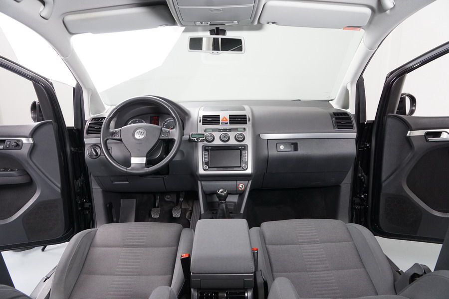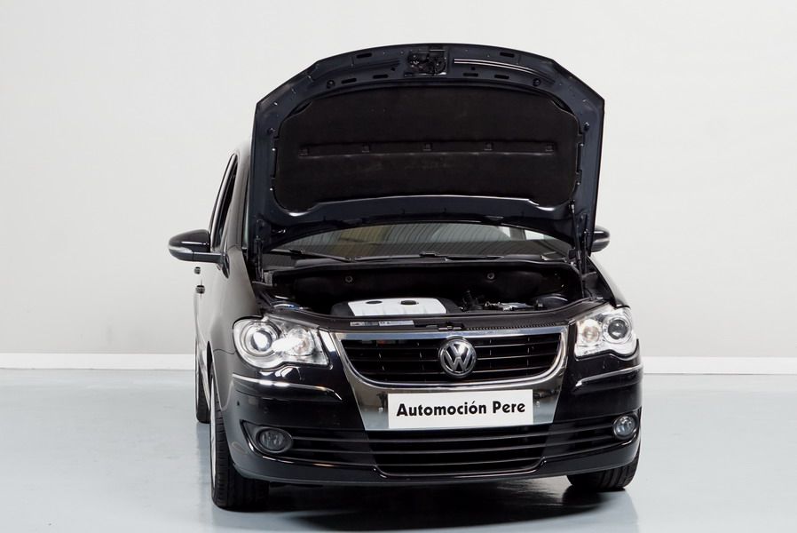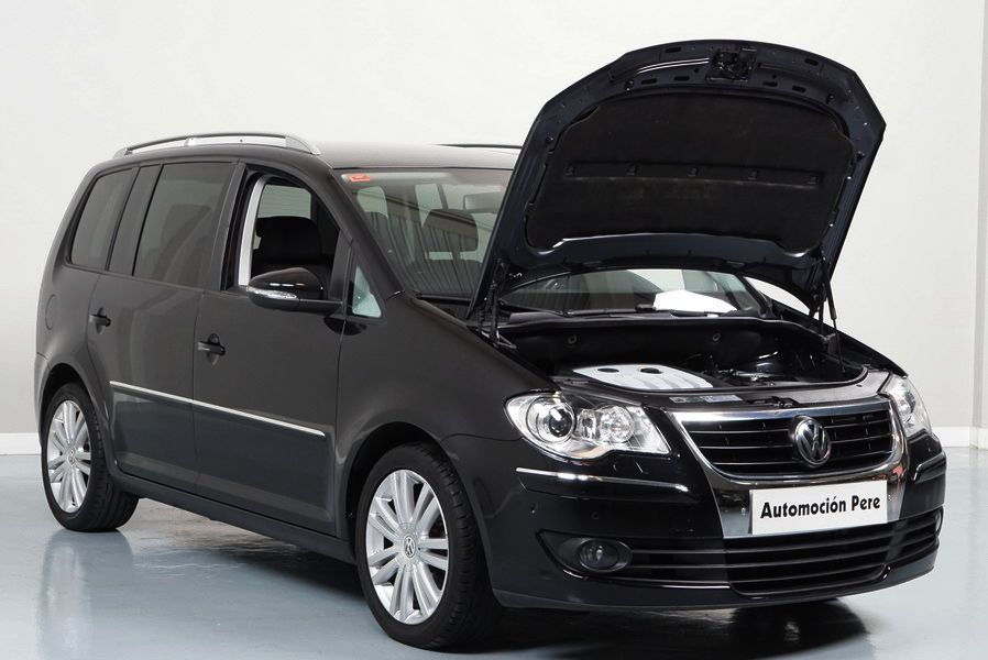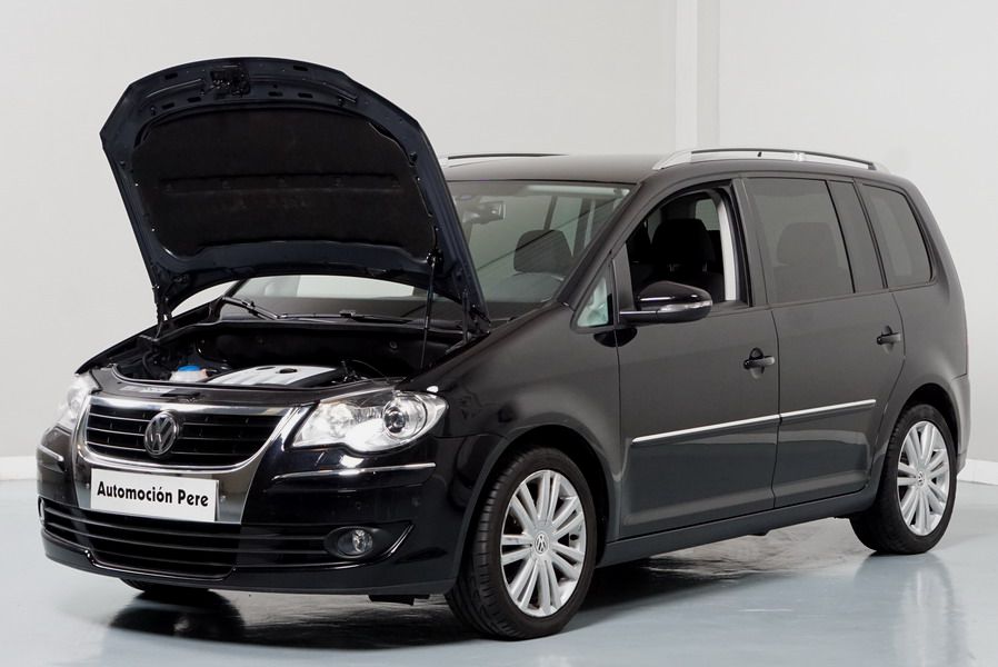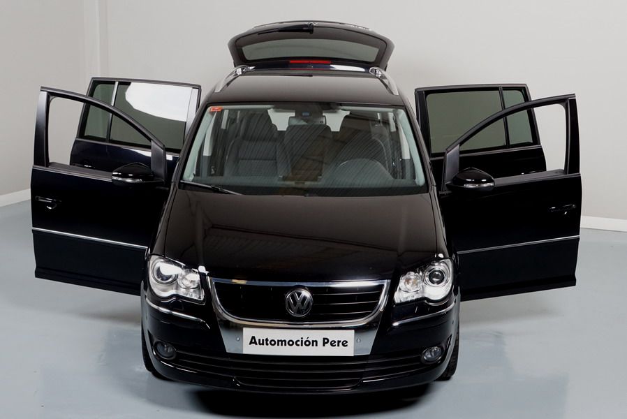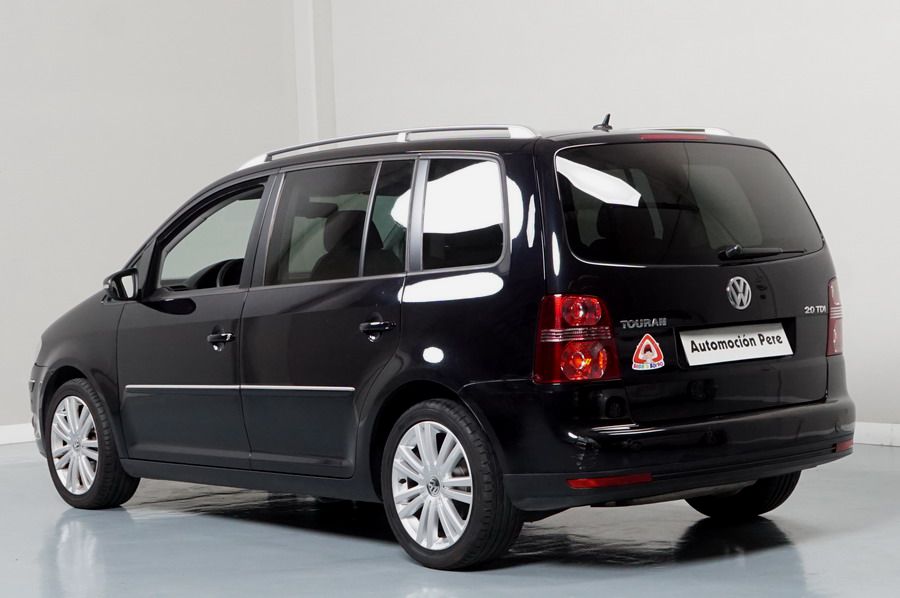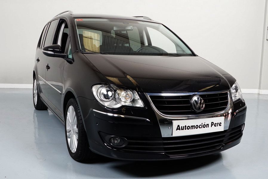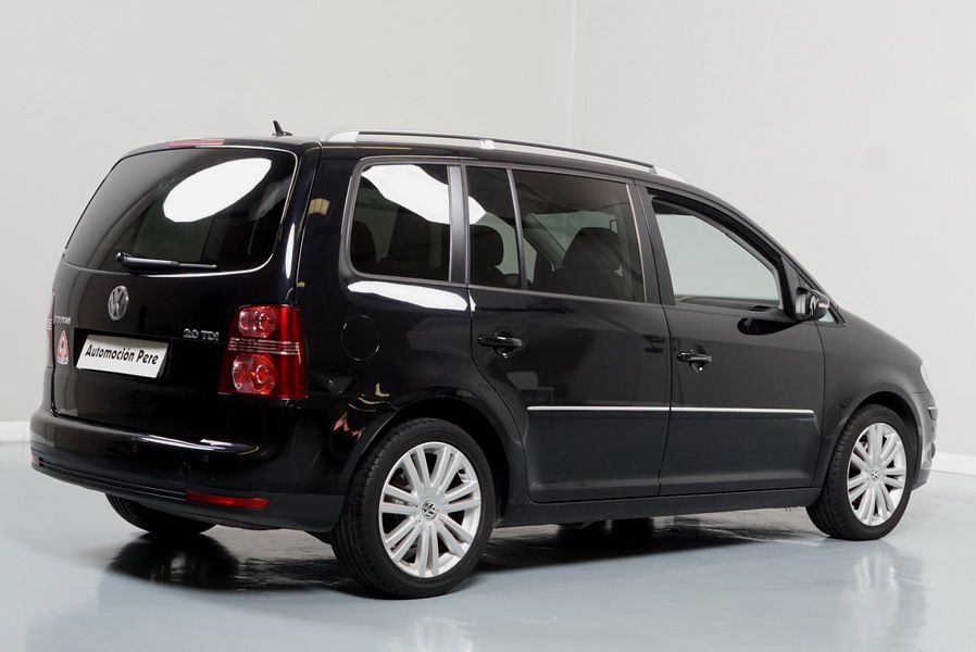 Volkswagen Touran 2.0 TDi 140 CV 6 Vel Sport. Año 04/05/2010. Color Negro Metalizado. Aire acondicionado Climatronic 2-zonas, Sistema antibloqueo (ABS), Programa electrónico de estabilidad (ESP), 10 Airbags, Llantas 17", Faros Bi-Xenon con luz de curva dinámica, Sensores de distancia para aparcamiento, Sistema de audio RCD 510 (Radio/Cargador de CD's 6 posiciones, 8 Altavoces), Alarma antirrobo con Protección del habitáculo interior, Sensores de distancia para aparcamiento (Delantero y Trasero), Asientos delanteros regulables en altura, Faros Antiniebla, Barras en el Techo, Volante de Cuero Multifuncional, Control de Velocidad (Tempomat) Ordenador de Viaje, Apoyabrazos Central, Cristales tintados originales Volkswagen. Muy Buen Estado. Pocos Kms. Revisiones Selladas.