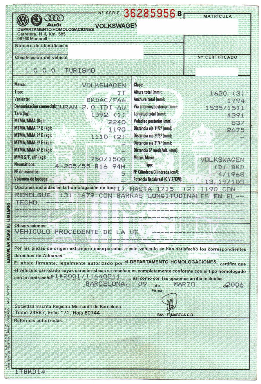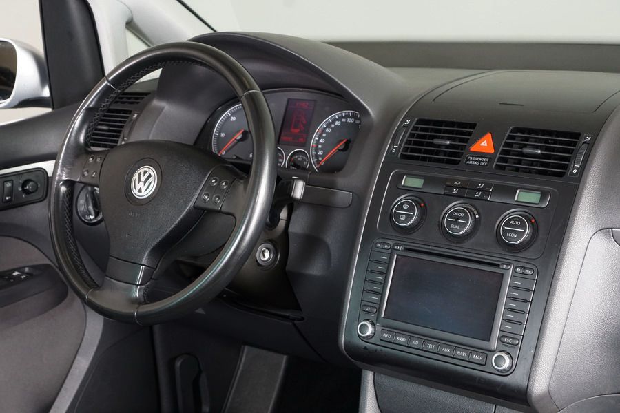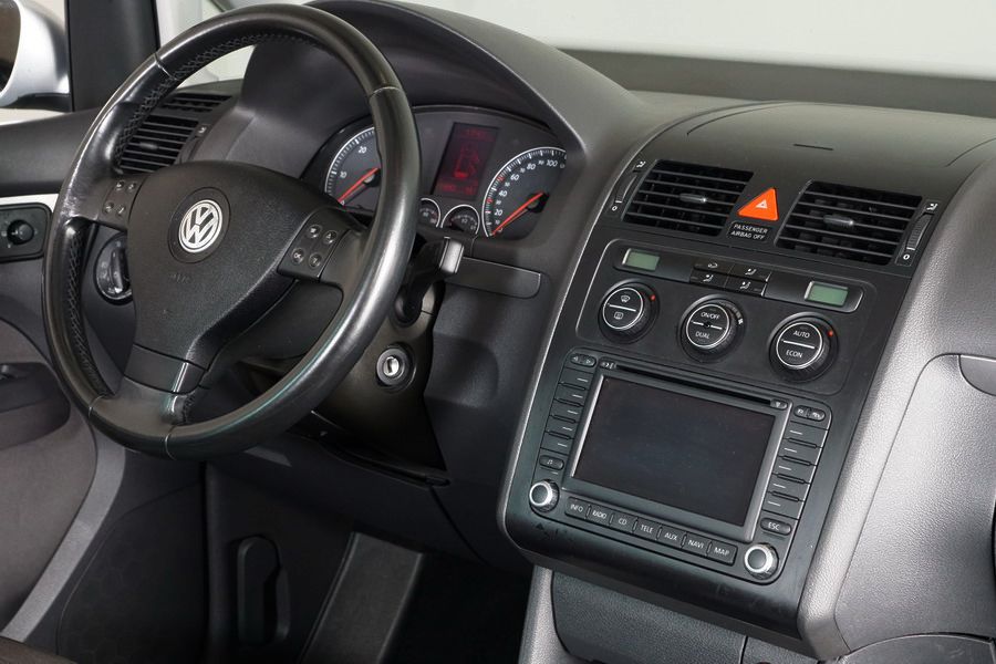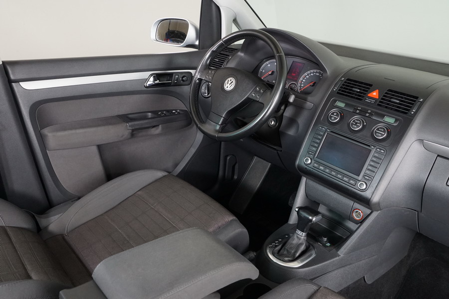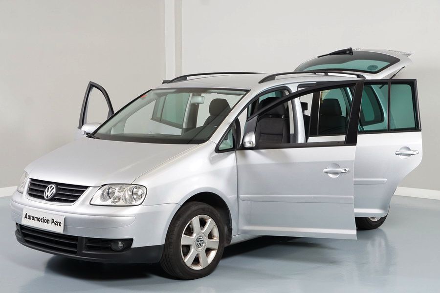 Volkswagen Touran 2.0 TDi 140 CV DSG/6 con Levas en el Volante. Highline 5 Plazas, Color Gris Plata Metalizado,Año 30/03/2006. Climatizador Bi-Zona, ABS, ESP, 10 Airbags, 4 Elevalunas Eléctricos, Cierre Centralizado con Mando, Radio/CD con Cargador, Bluetooth Parrot, Sistema de Navegación GPS (NO Actualizado) Faros Antiniebla, Ordenador de Viaje, Sensor Trasero de Parking, Volante de Cuero Multifuncional Regulable en Altura y Profundidad, Control y Limitador de Velocidad "Tempomat", Cristales Tintados Originales Volkswagen, Retrovisores Eléctricos y Retractiles, Apoyabrazos Central Delantero, Asientos Traseros con Isofix.